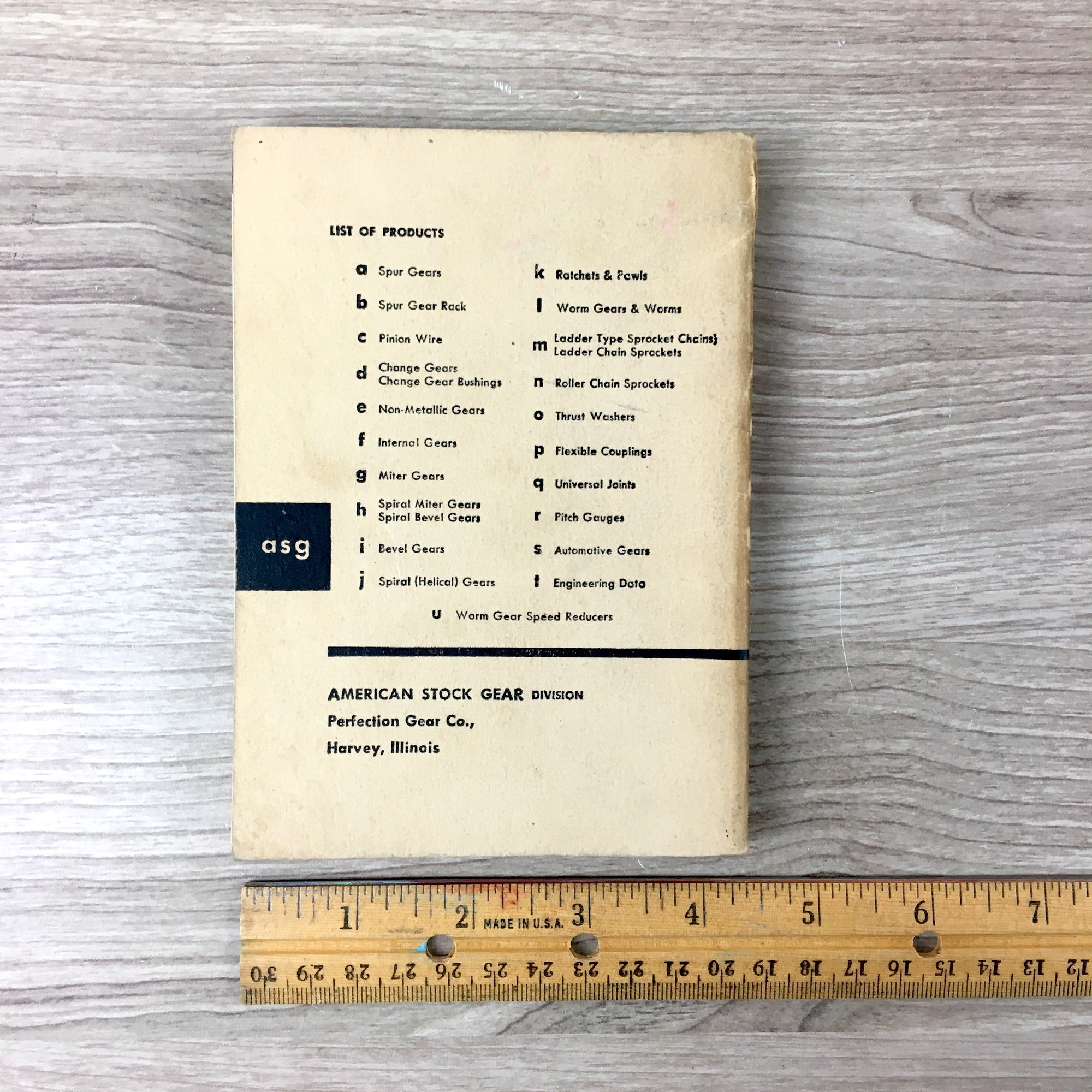 American Stock Gear Division Catalog No. 360, from the Perfection Gear Company of Harvey, Illinois. Includes stock and special gears, roller chain sprockets, flexible couplings, universal joints and speed reducers.