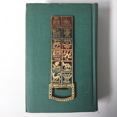 Vintage cast brass or bronze metal bottle opener with raised images of the 12 sons of Jacob. Judaica souvenir is also marked Jerusalem. Raised images with paint or enamel blue and red background details. Heavy lacquered finish.