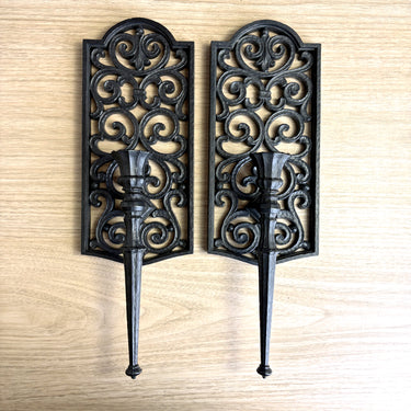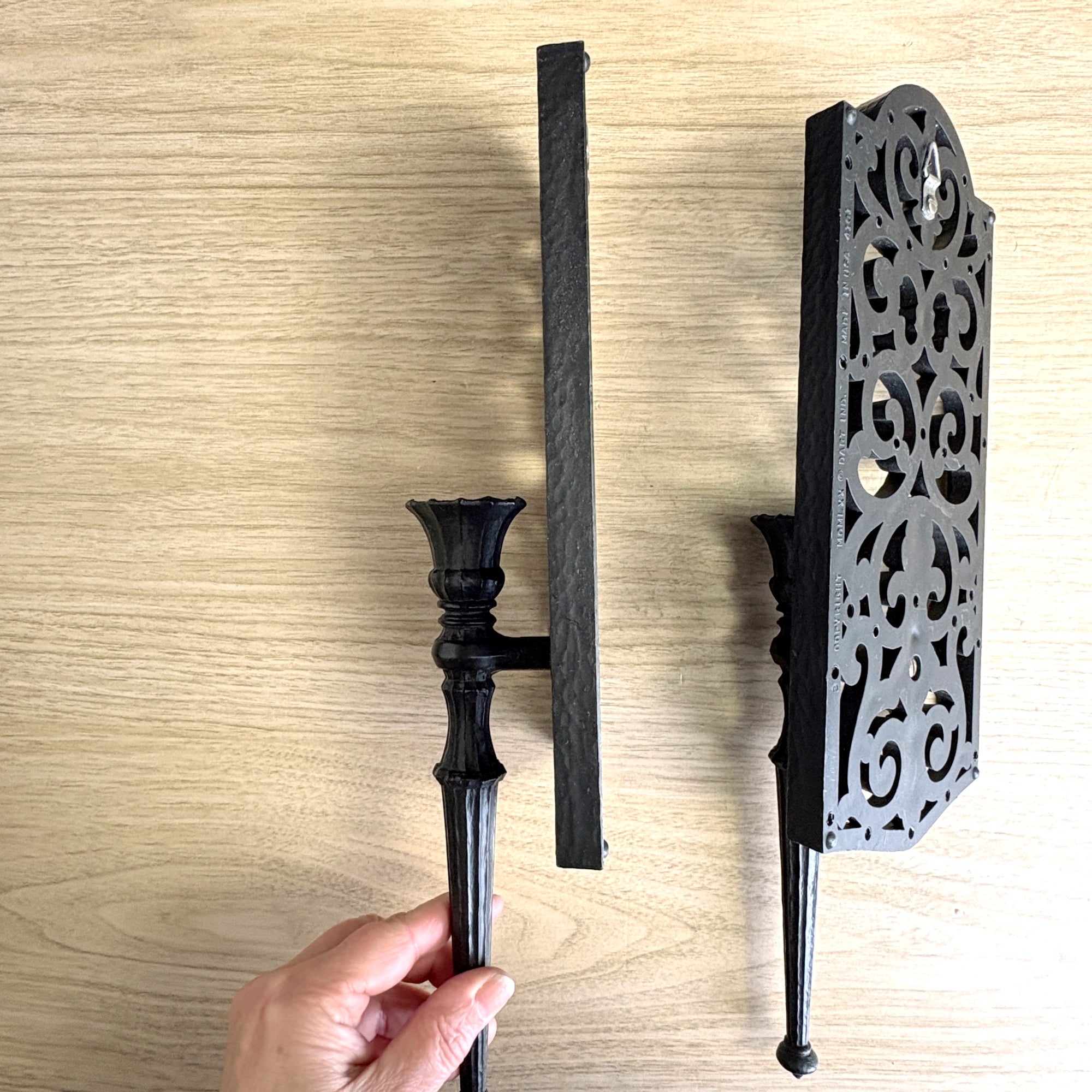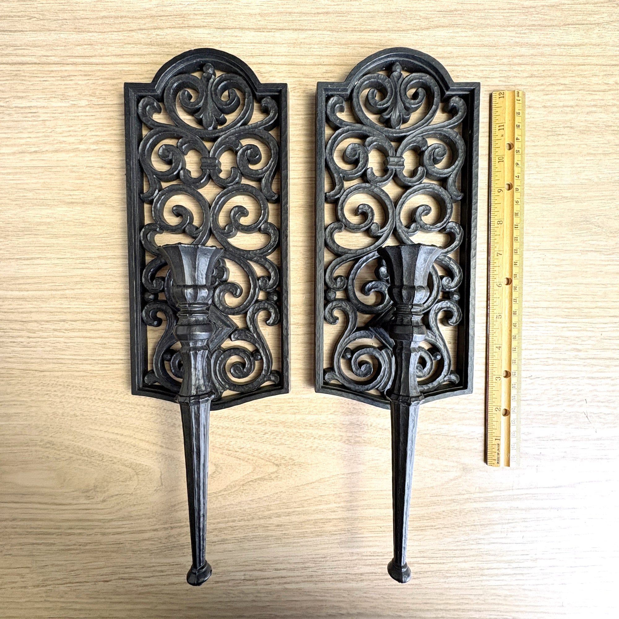 Wrought iron look resin wall sconces - a pair - Dart Ind. #4101 - 1970 vintage