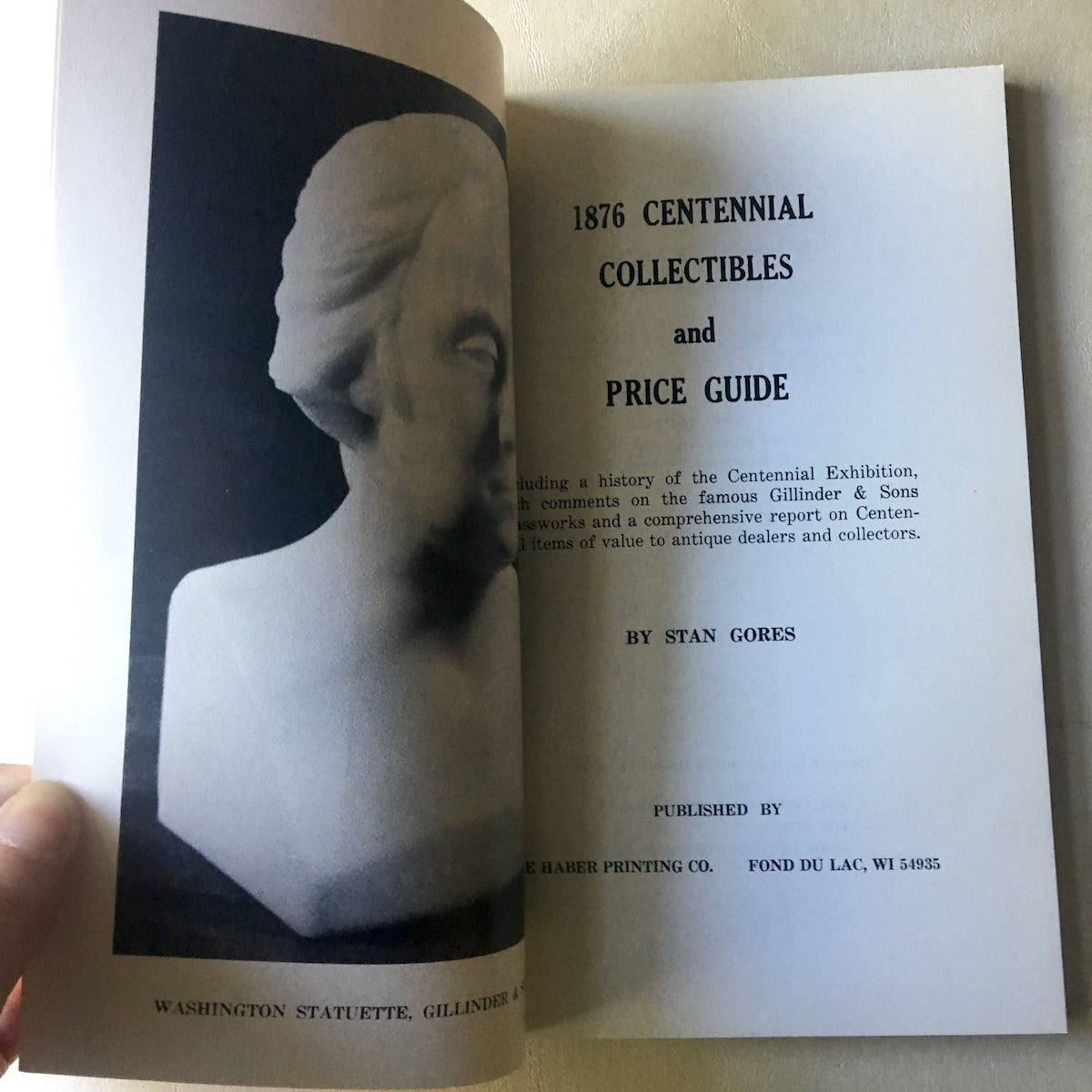 "1876 Centennial Collectibles and Price Guide" by Stan Gores. First edition, second printing, 1975. Softcover. Haber Printing Co., Fond du Lac, WI