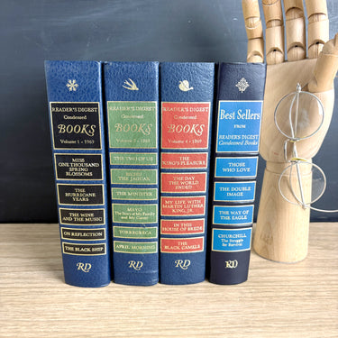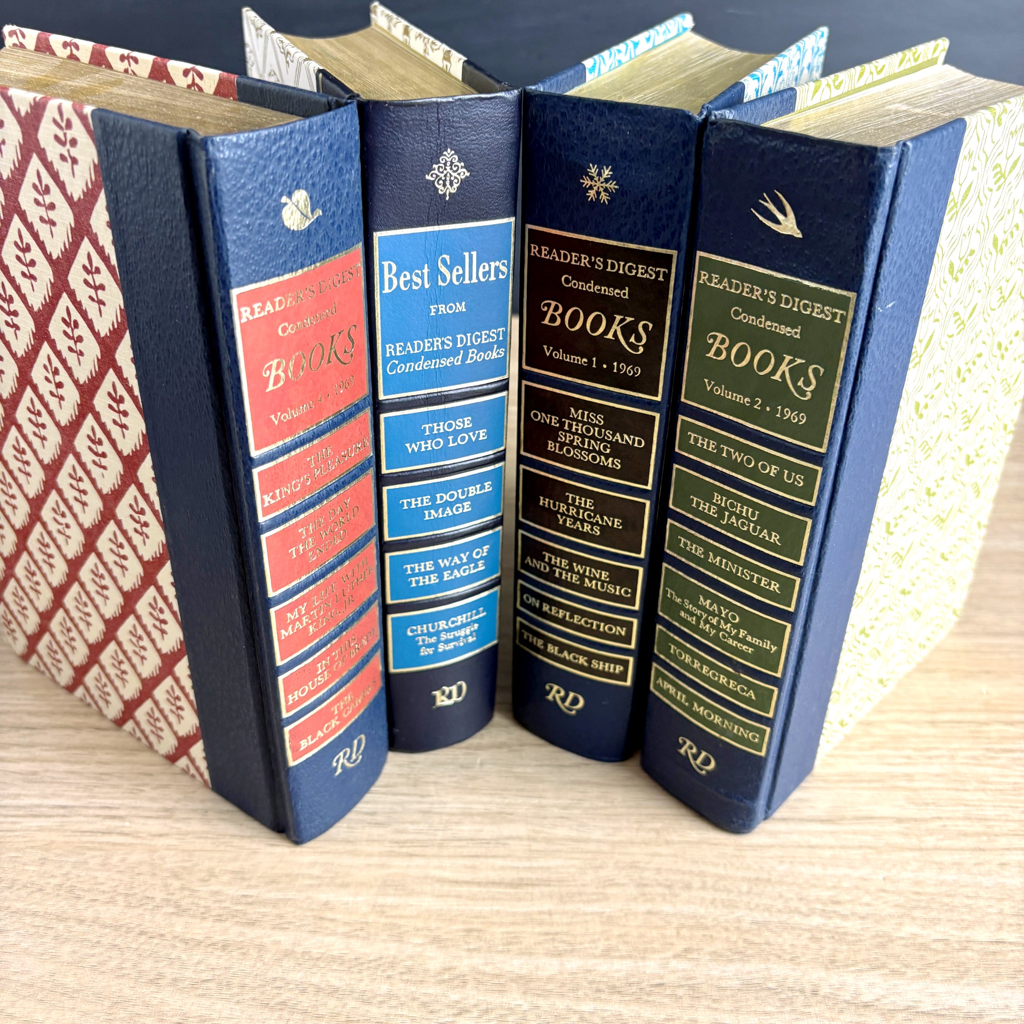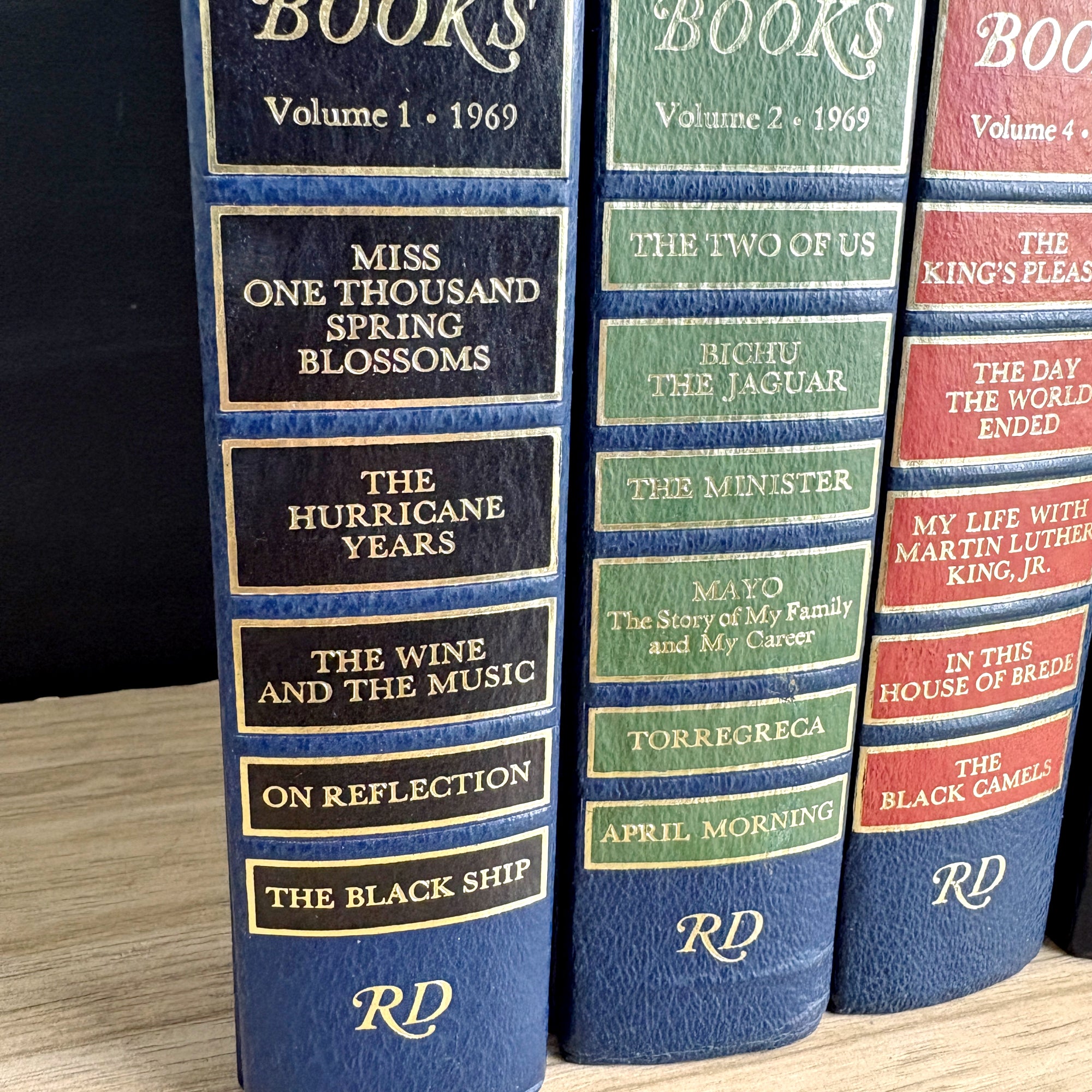 A coordinated set of three volumes of 1969 Reader’s Digest Condensed Books plus the 1967 Best Sellers edition, ideal for vintage library décor, bookshelf styling, coffee table displays or Reader’s Digest collectors.