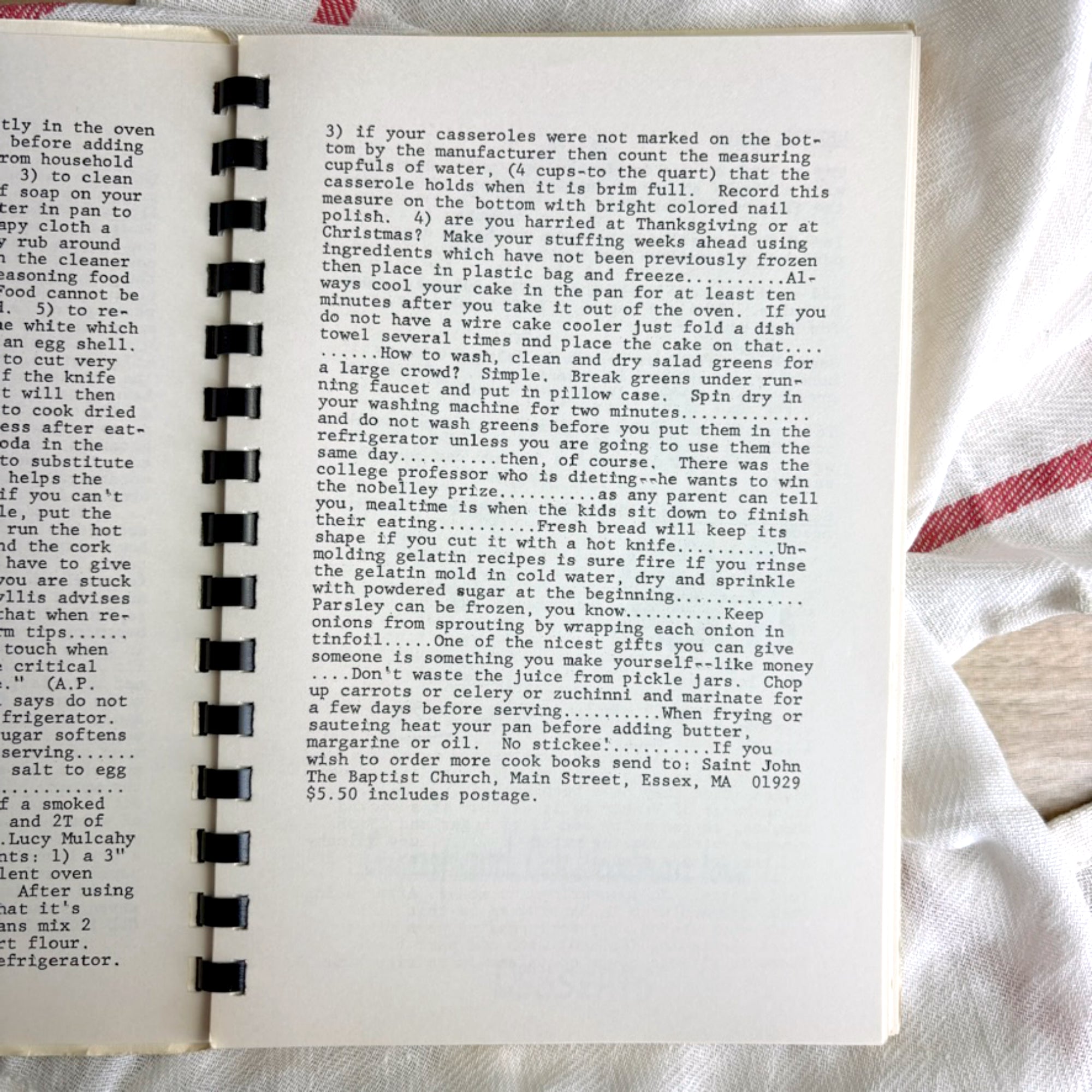 Vintage Essex MA community cookbook – Essex Families Favorite Recipes - St. John the Baptist Church