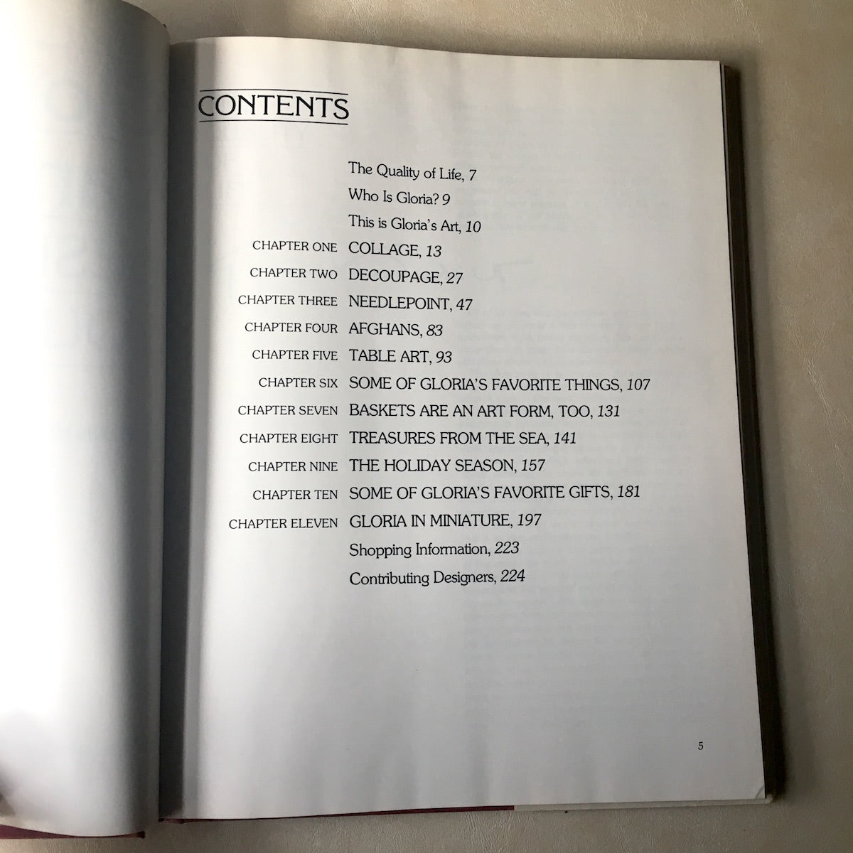 From the jacket copy: "Brimming with original craft and needlework projects, complete with easy-to-follow directions and diagrams, every page of this beautiful cornucopia of decorative ideas sparkles with her special flair and exuberant sense of color and design and conveys her belief that 'the best self is the creative part of all of us.'"