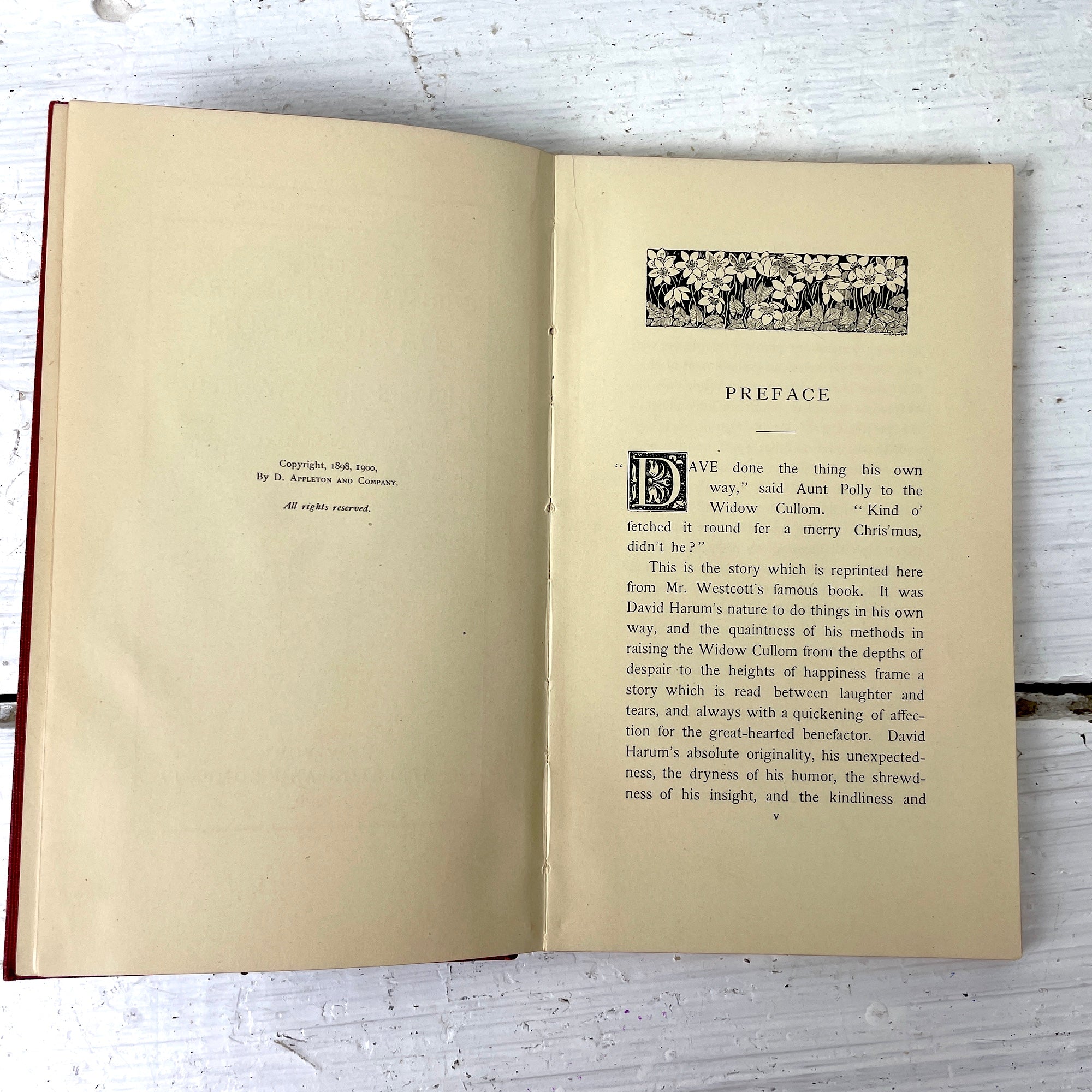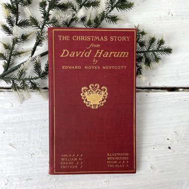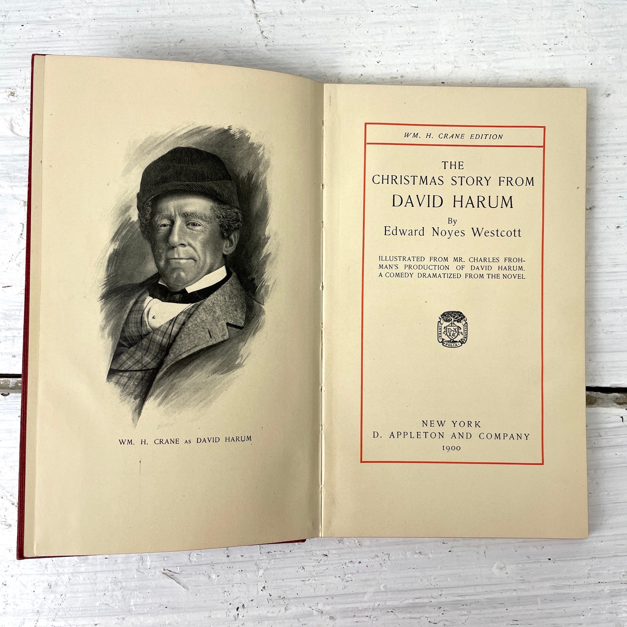 "The Christmas Story from David Harum" by Edward Noyes Westcott. Illustrated from Mr. Charles Frohman's production of David Harum, a comedy dramatized from the novel. 1900, D. Appleton and Company. Hardcover. Black and white illustrations. Gilding on the edge of the pages.