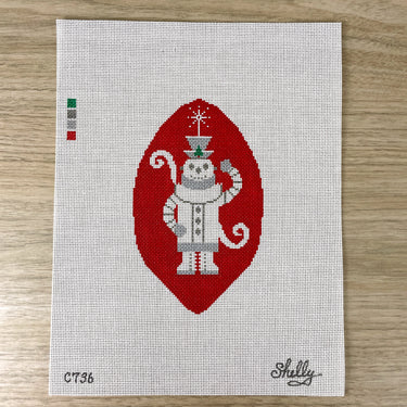 Take me to your tree...quirky Snowman Robot handpainted needlepoint canvas by Shelly Tribbey Designs, #C736. Retail $90.
