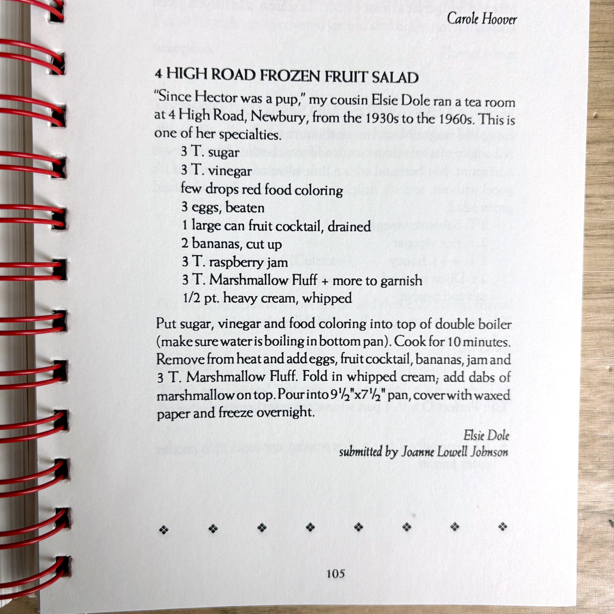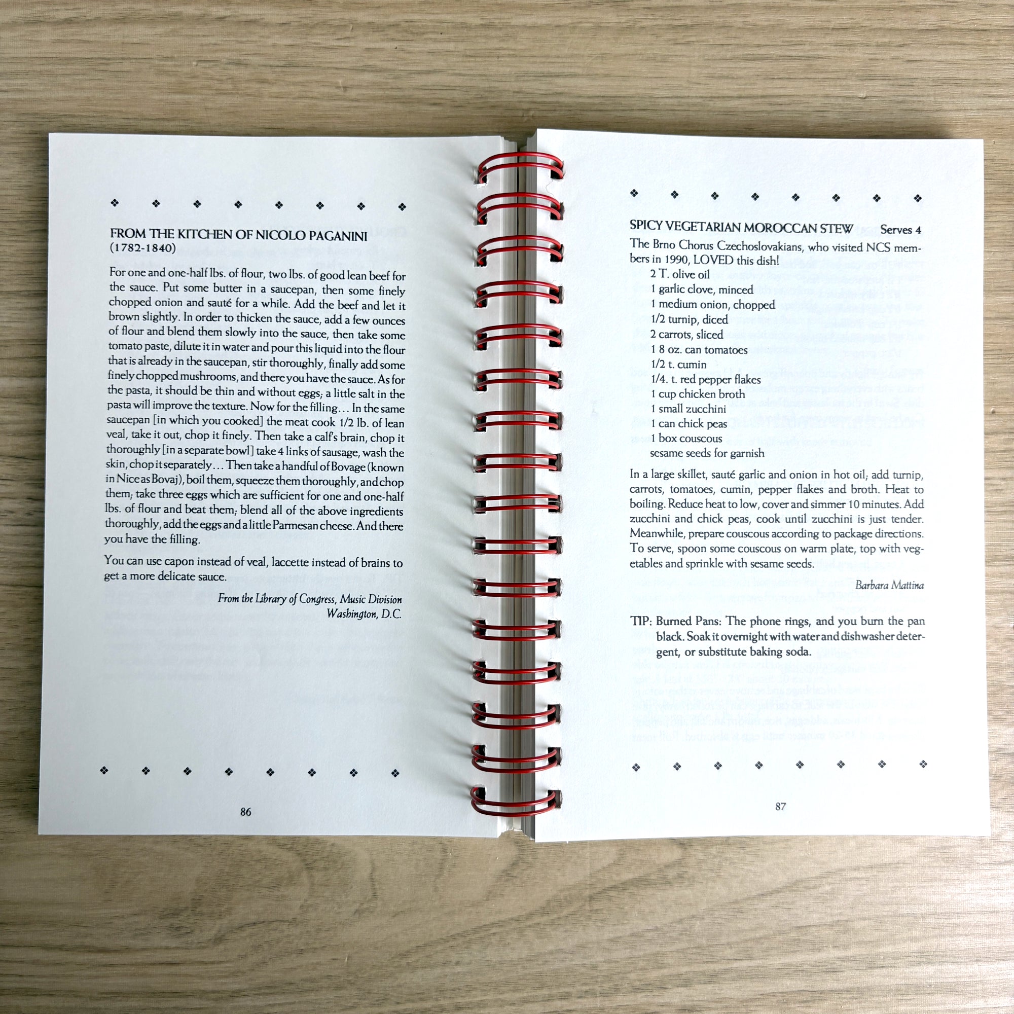 Filled with favorite recipes, anecdotes, and helpful kitchen tips. The metal comb binding allows it to lay flat while you cook, a nice convenience.
