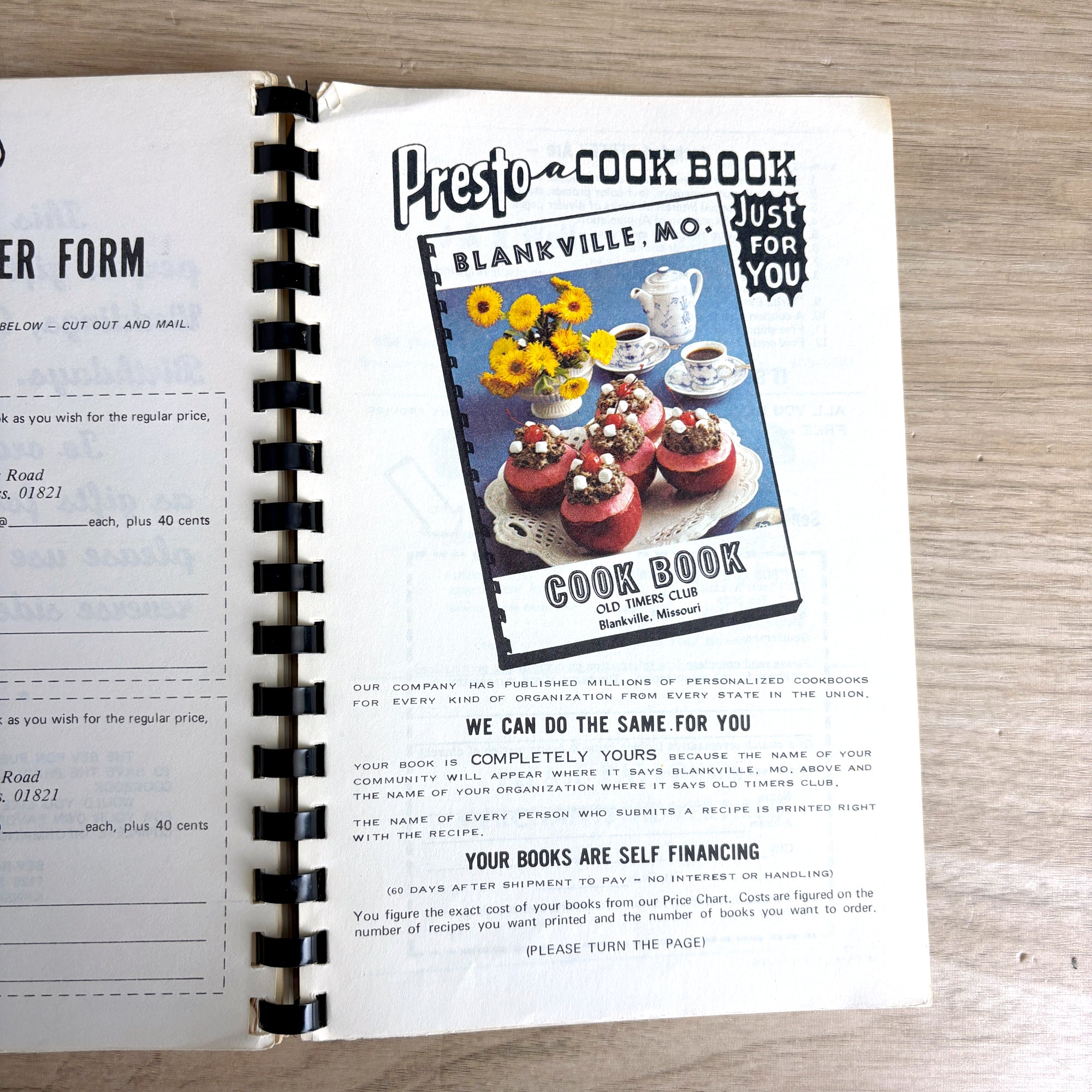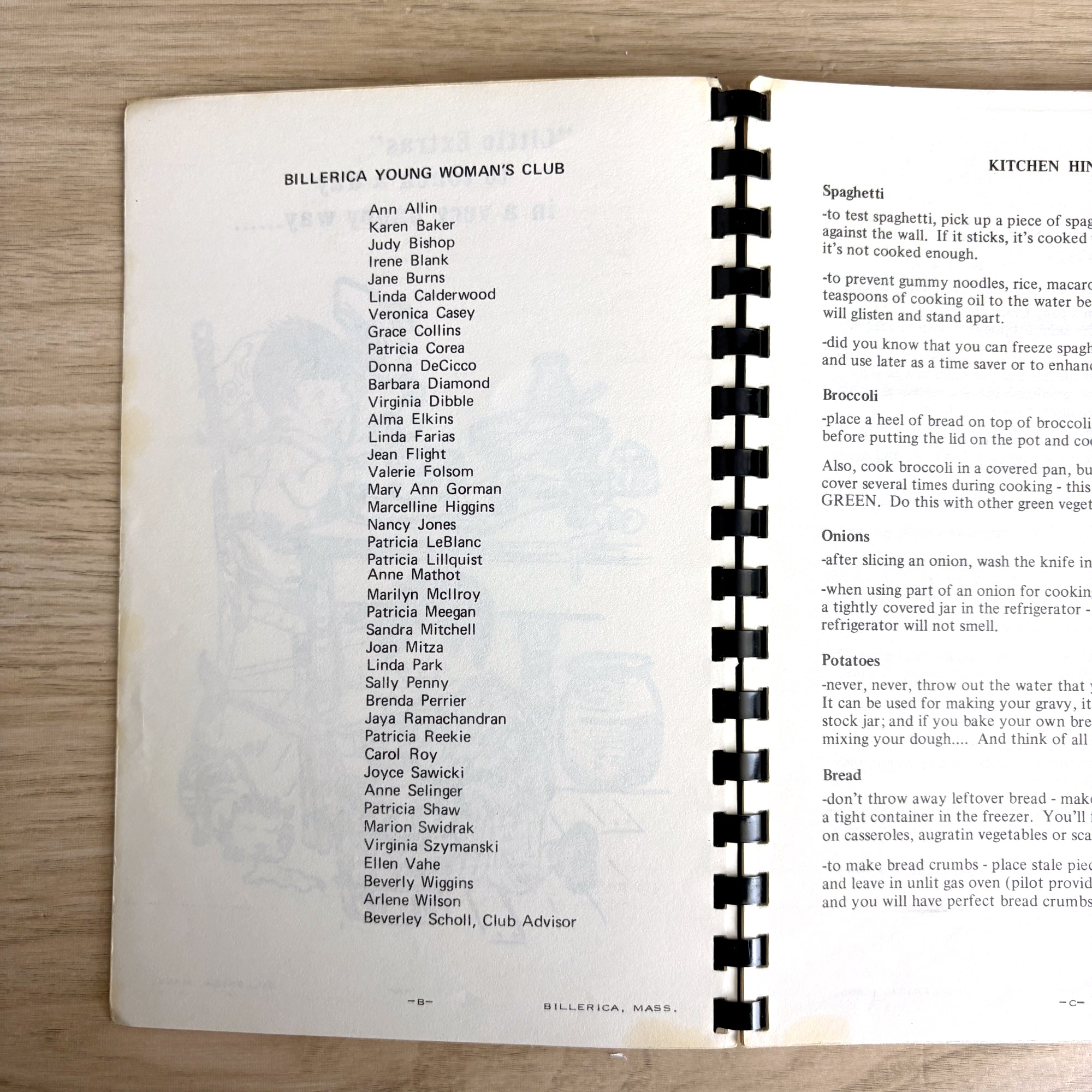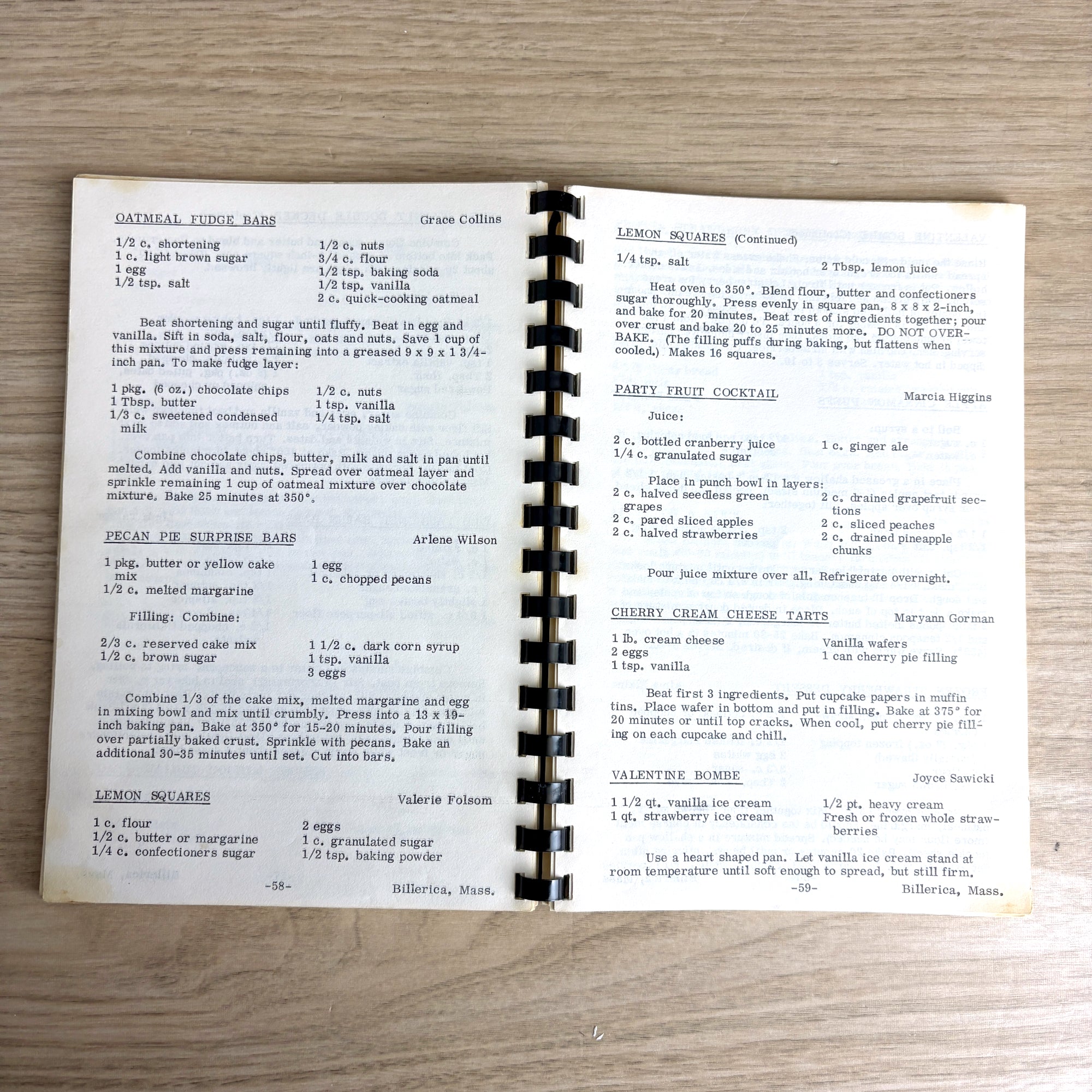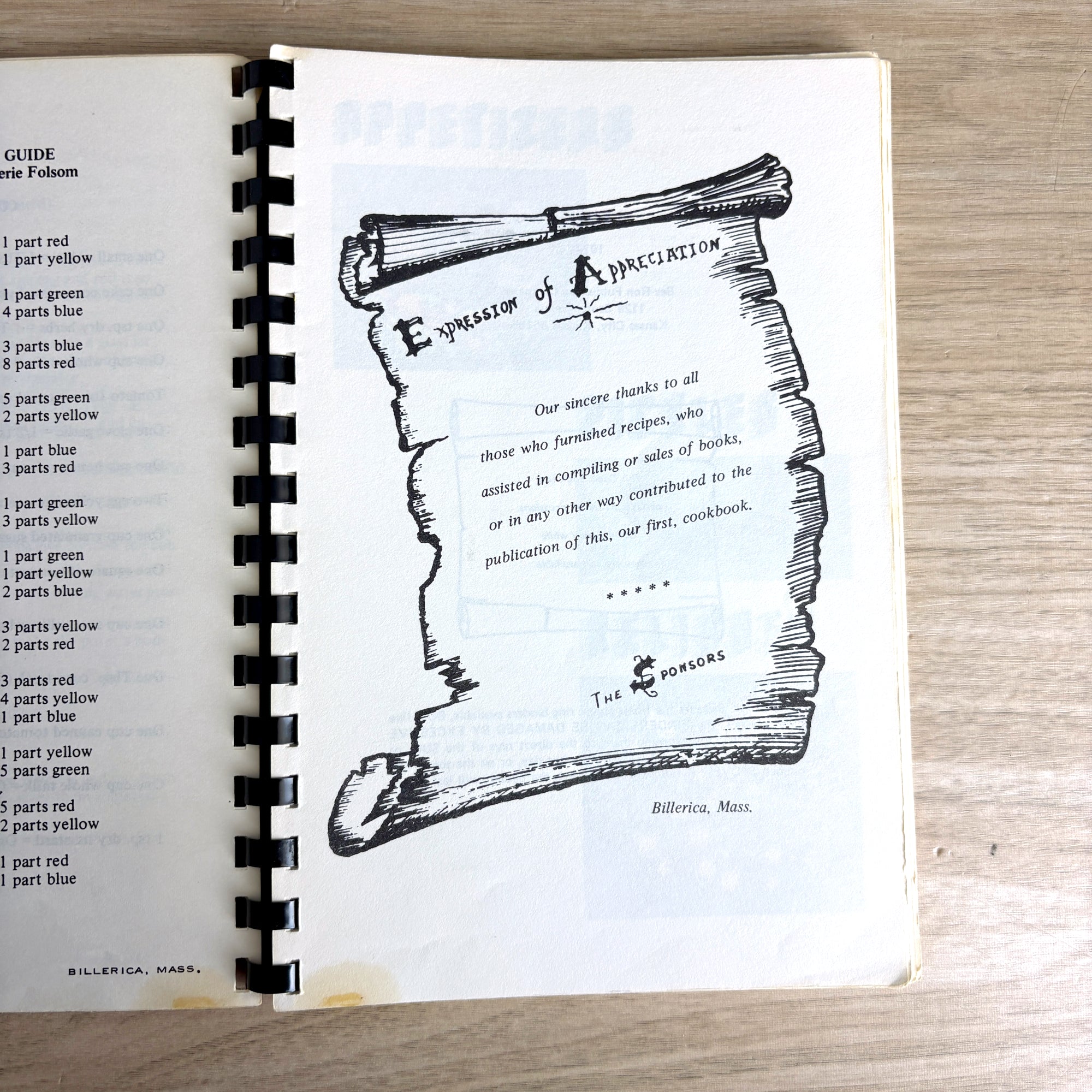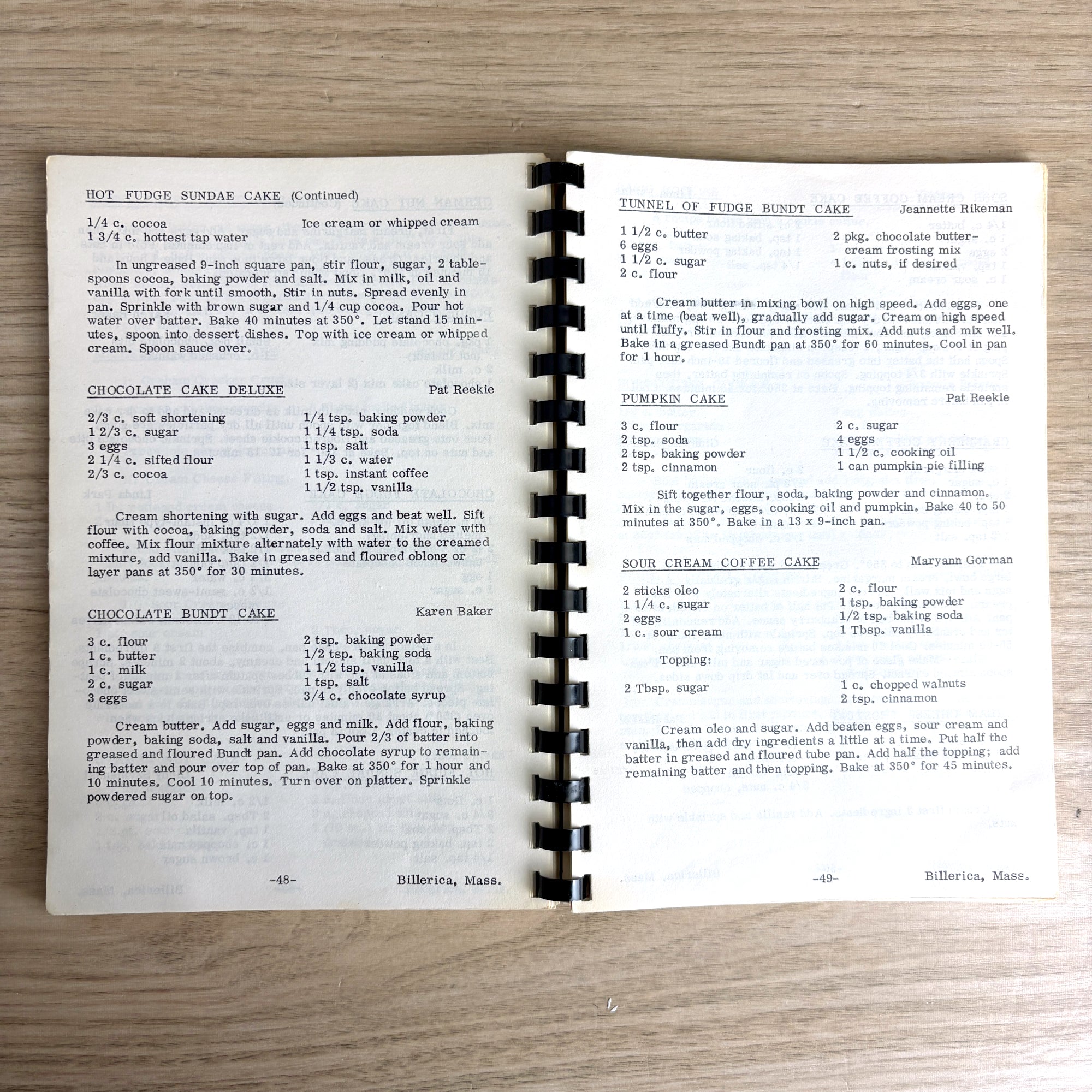 This vintage community cookbook, titled “Private Stock,” was compiled by the Billerica, Massachusetts Young Woman’s Club and published in 1974 by Bev-Ron Publishing Co., Kansas City, KS.