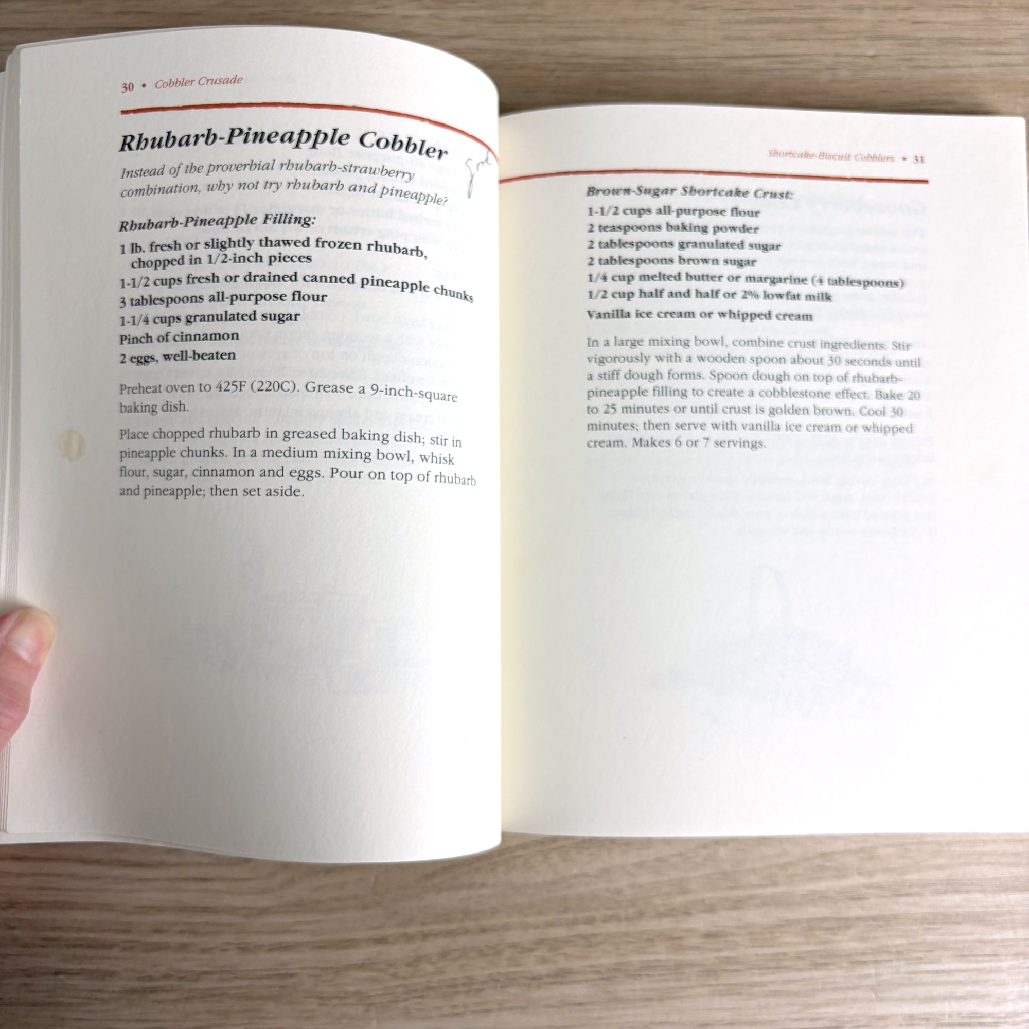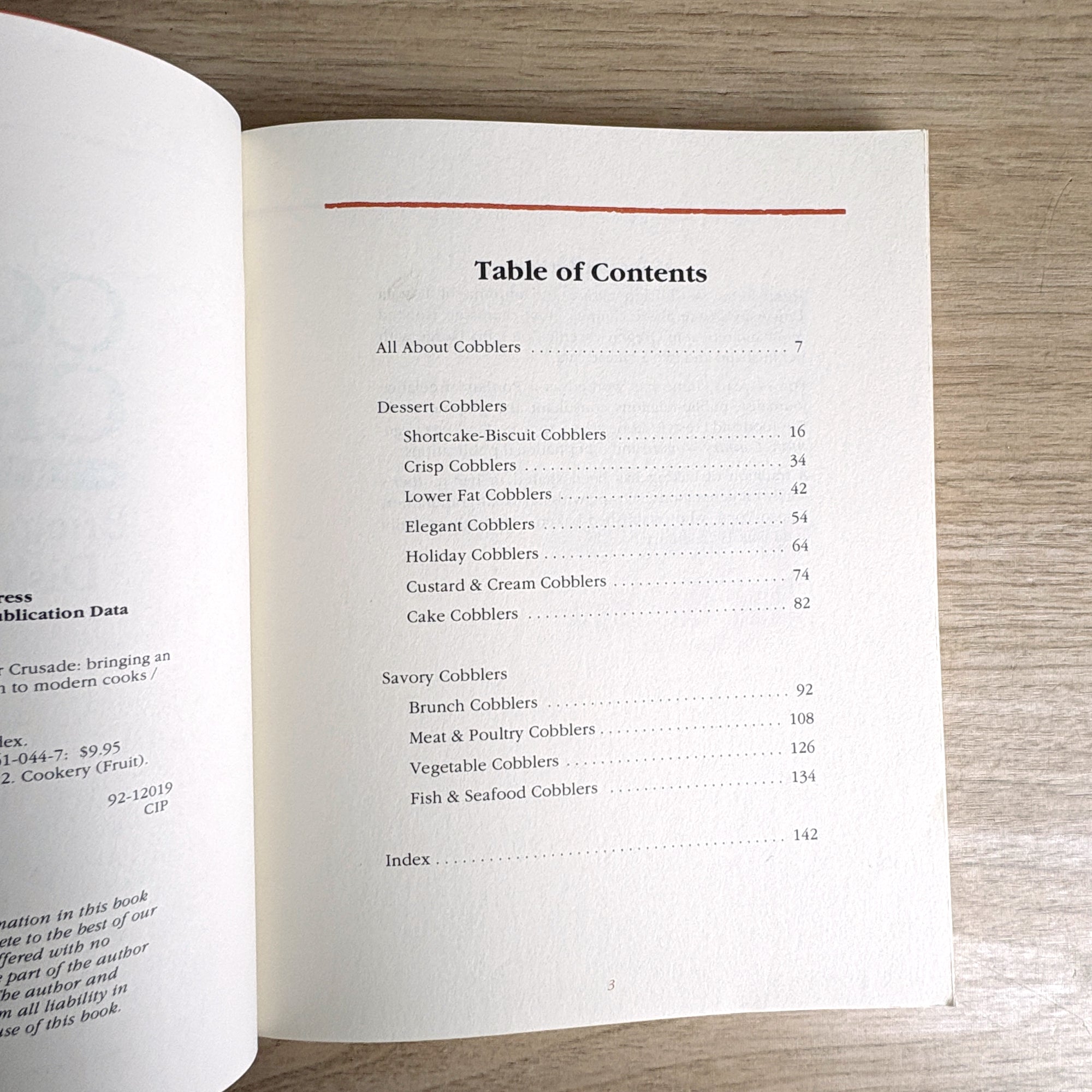The Cobbler Crusade - Main Courses and Desserts - Bringing an Old-Fashioned Dish to Modern Cooks. Written by Irene Ritter and published in 1992 by Fisher Books, this softcover cookbook brings traditional cobblers into the modern kitchen with a delicious mix of main course and dessert recipes.
