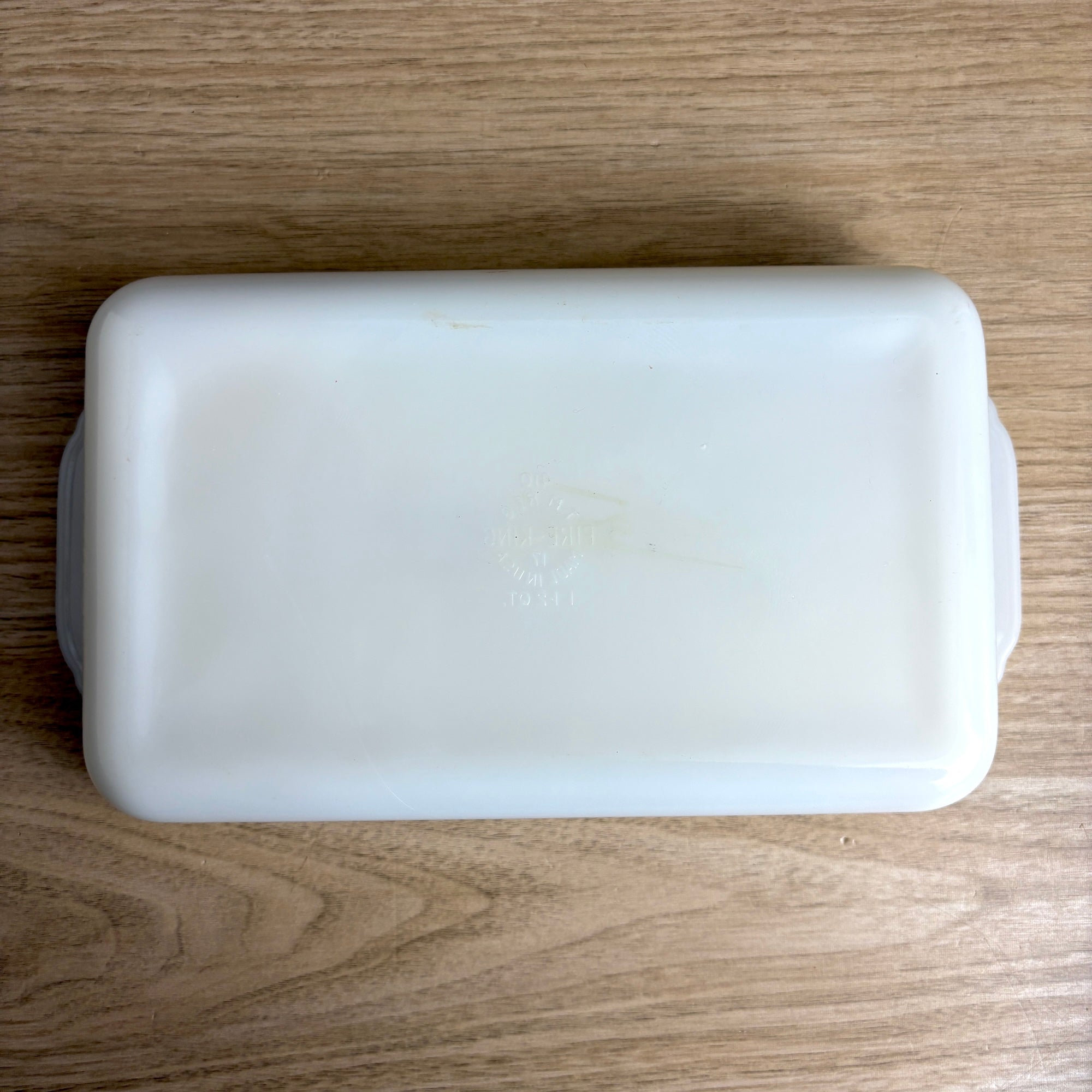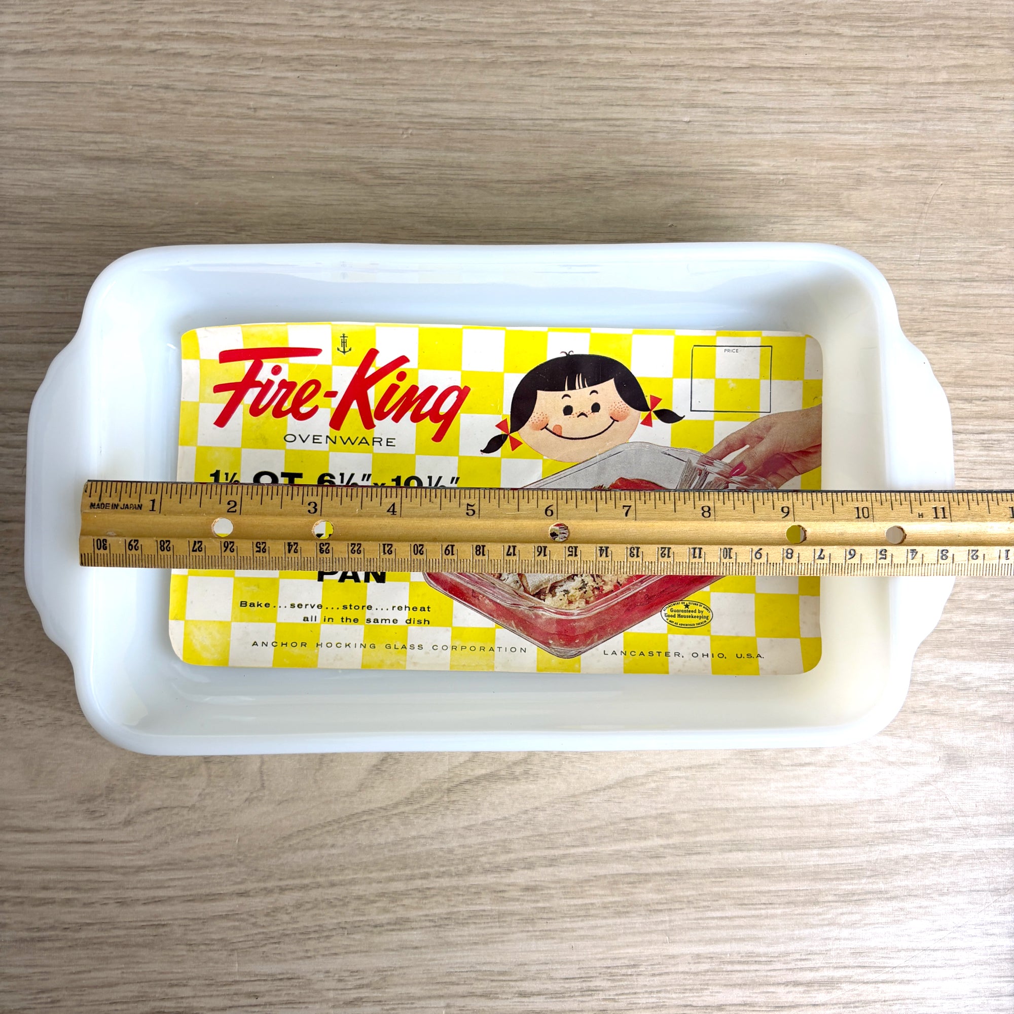 Vintage new old stock Fire King milk glass baking dish - 1.5 qt rectangular #410 with original label