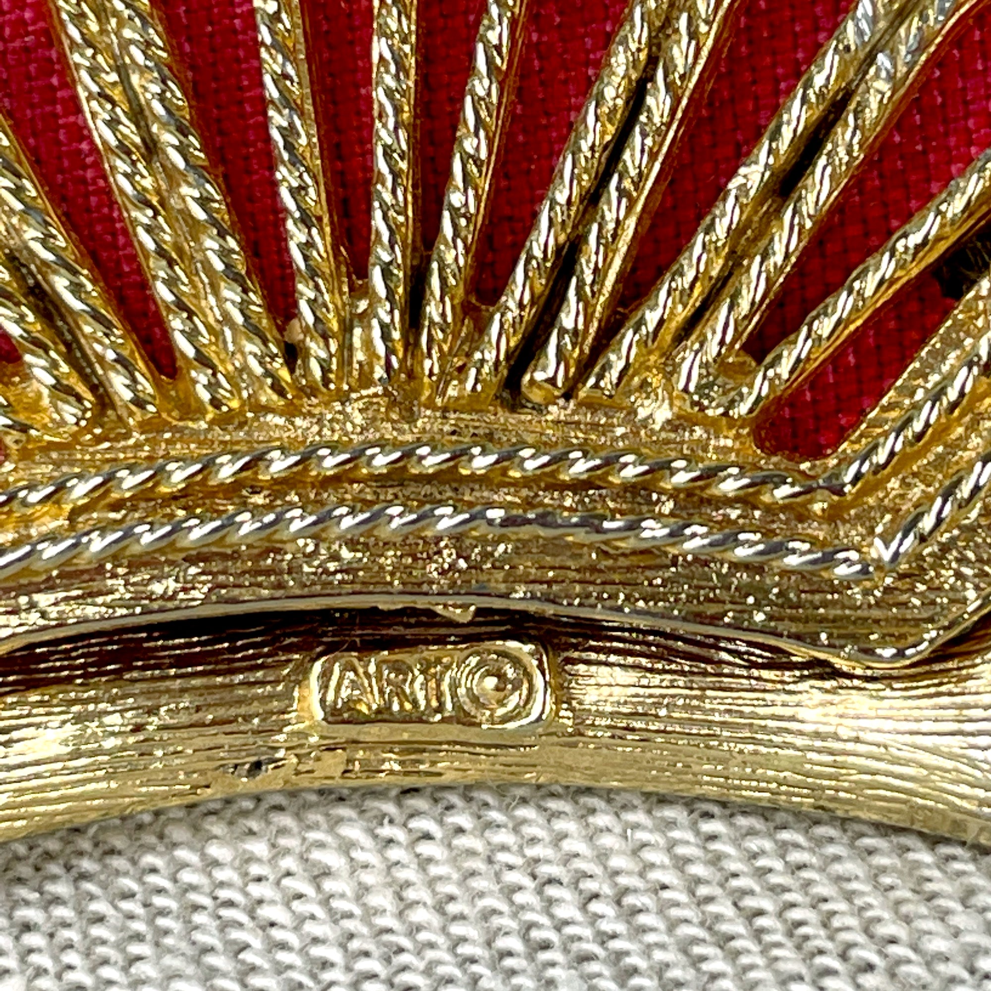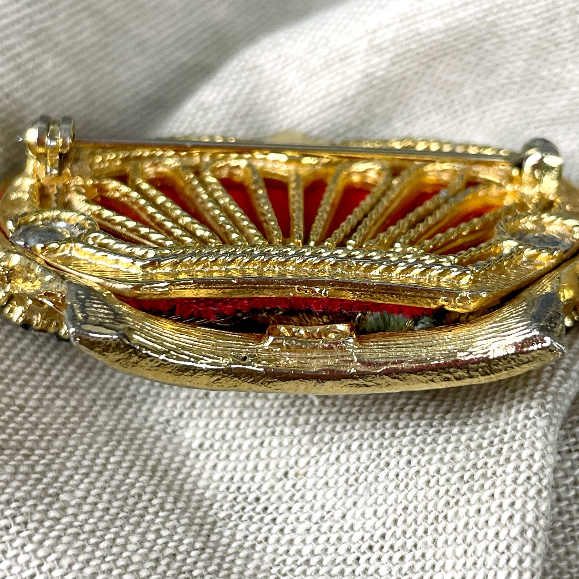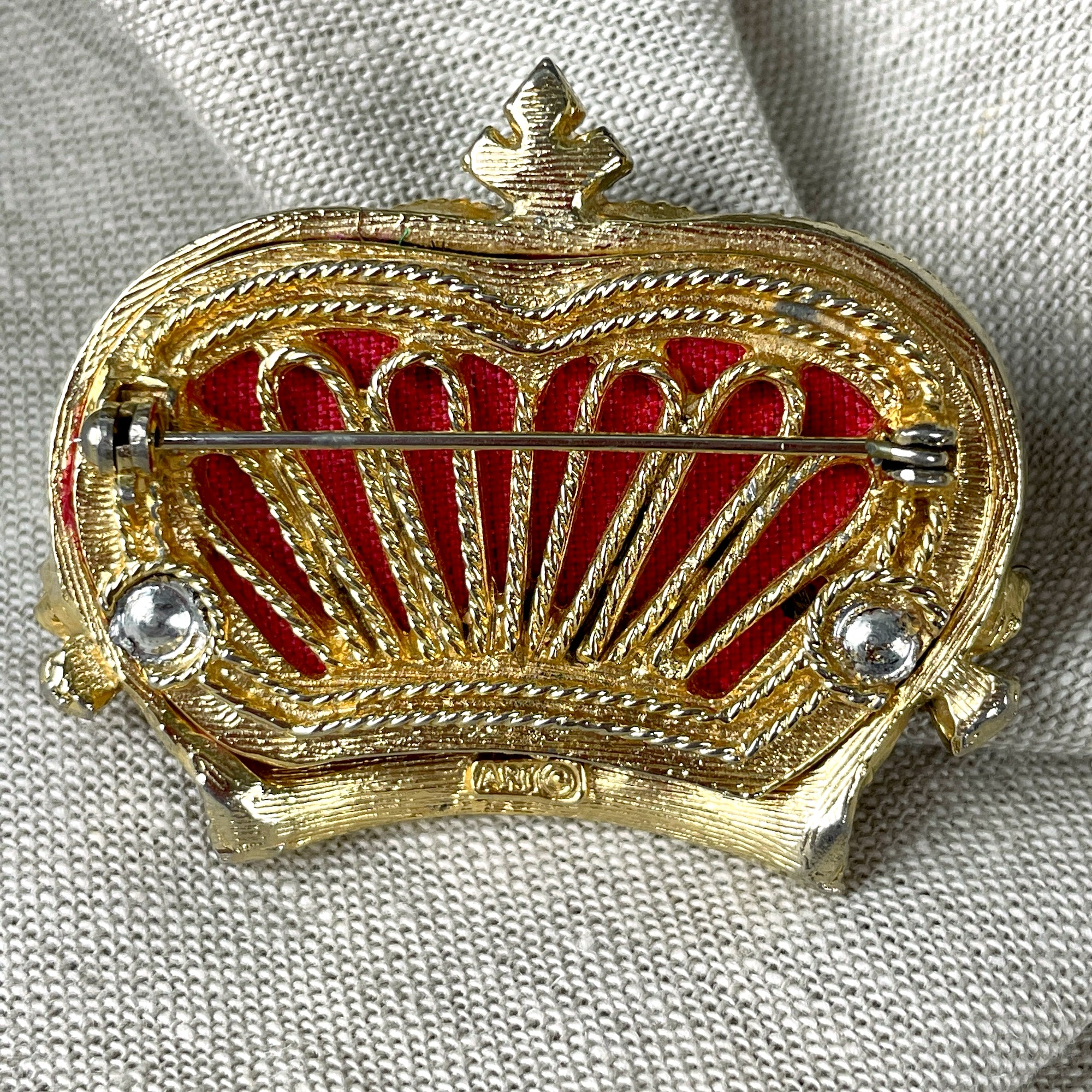 ART gold and brocade crown brooch - vintage fine costume jewelry