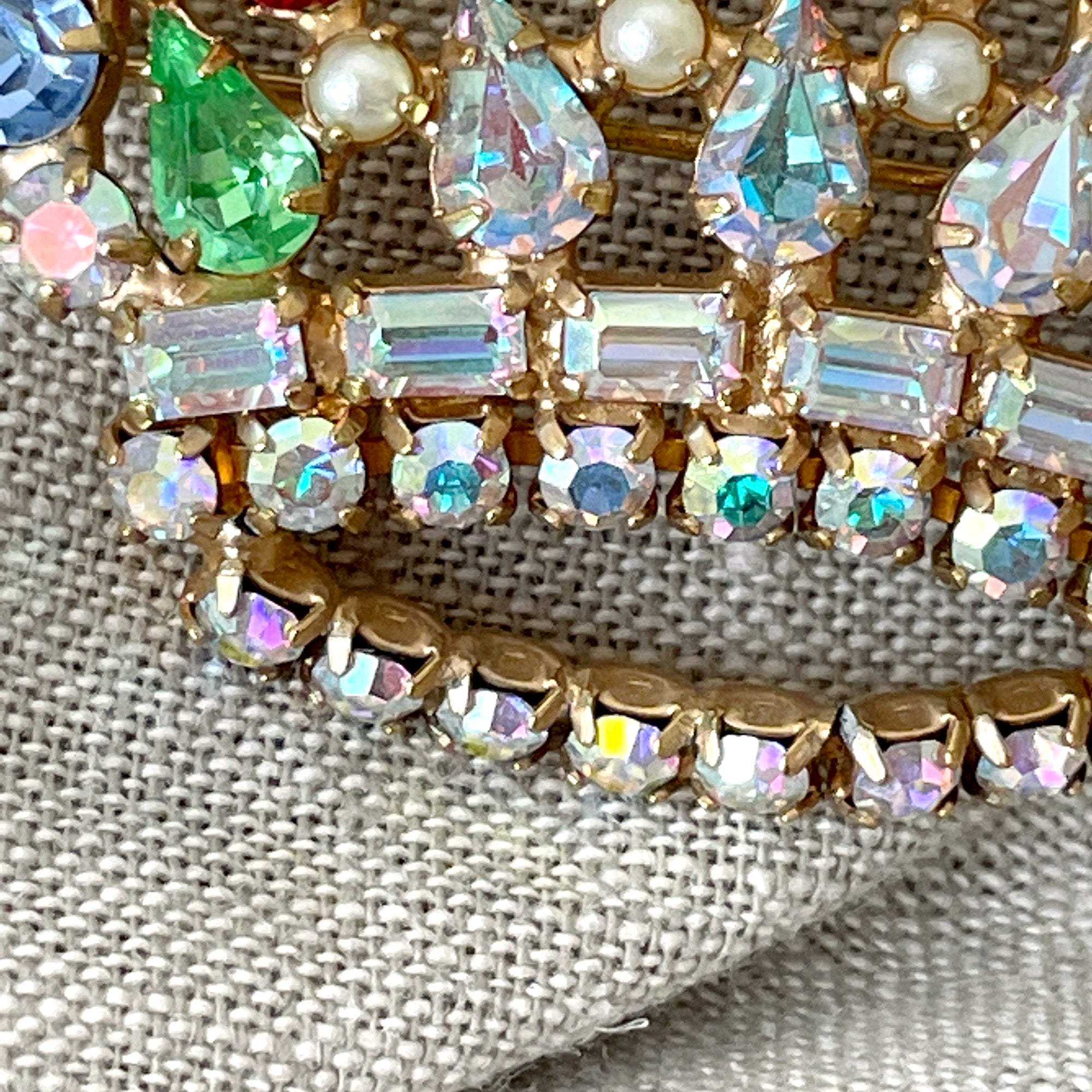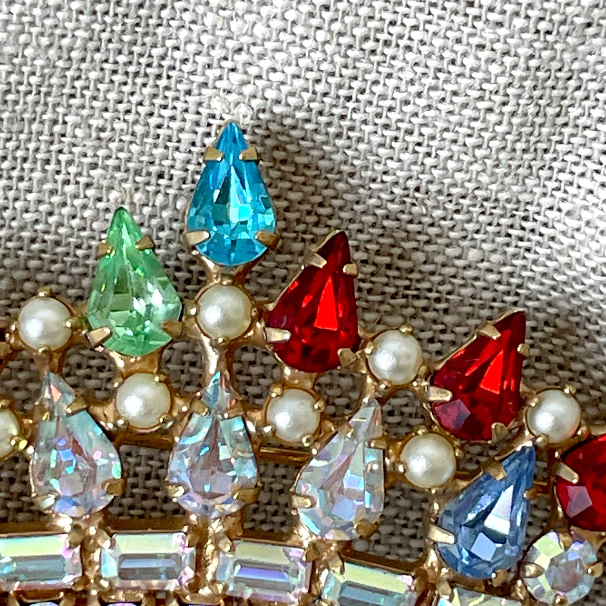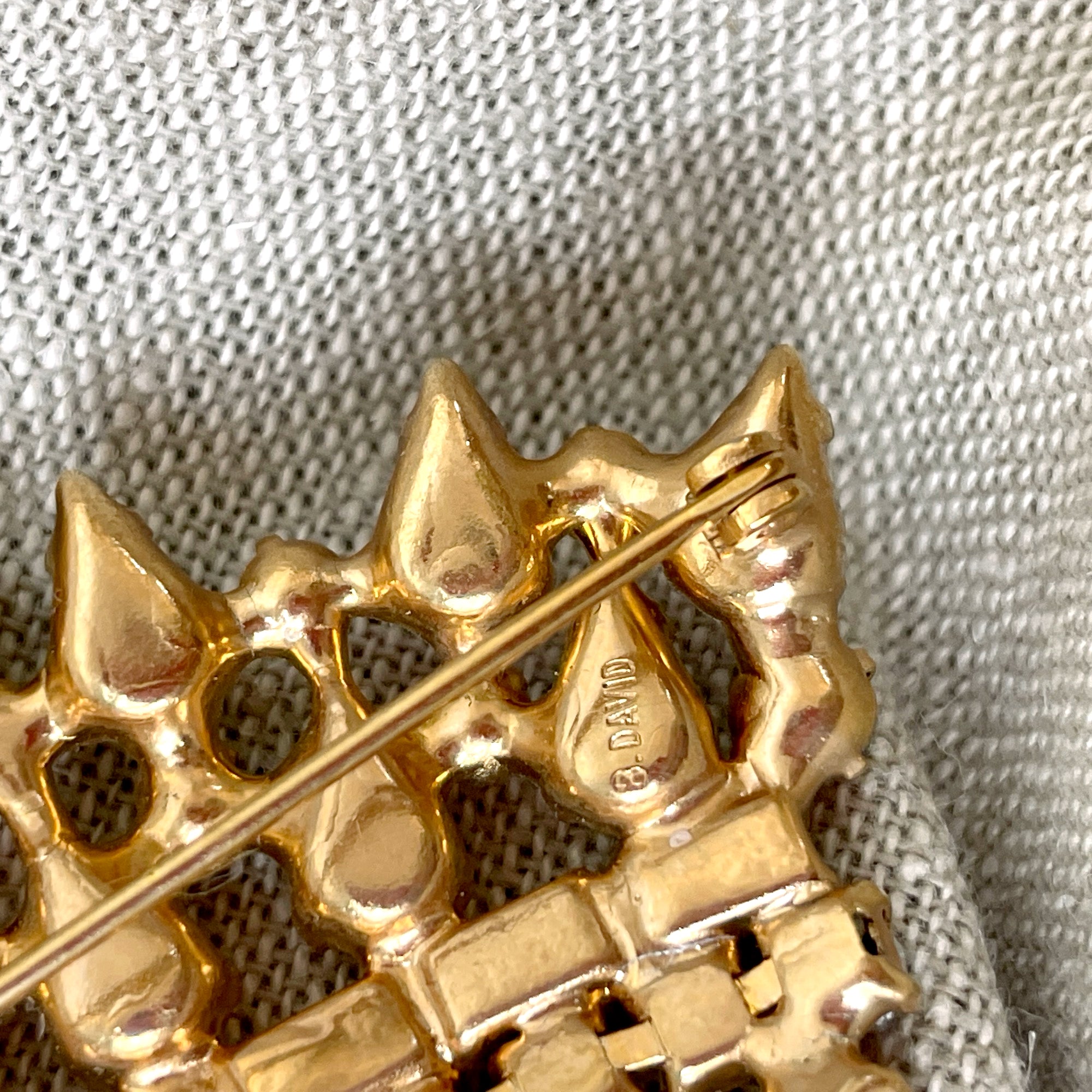 B. David crown rhinestone brooch - vintage 1950s costume jewelry