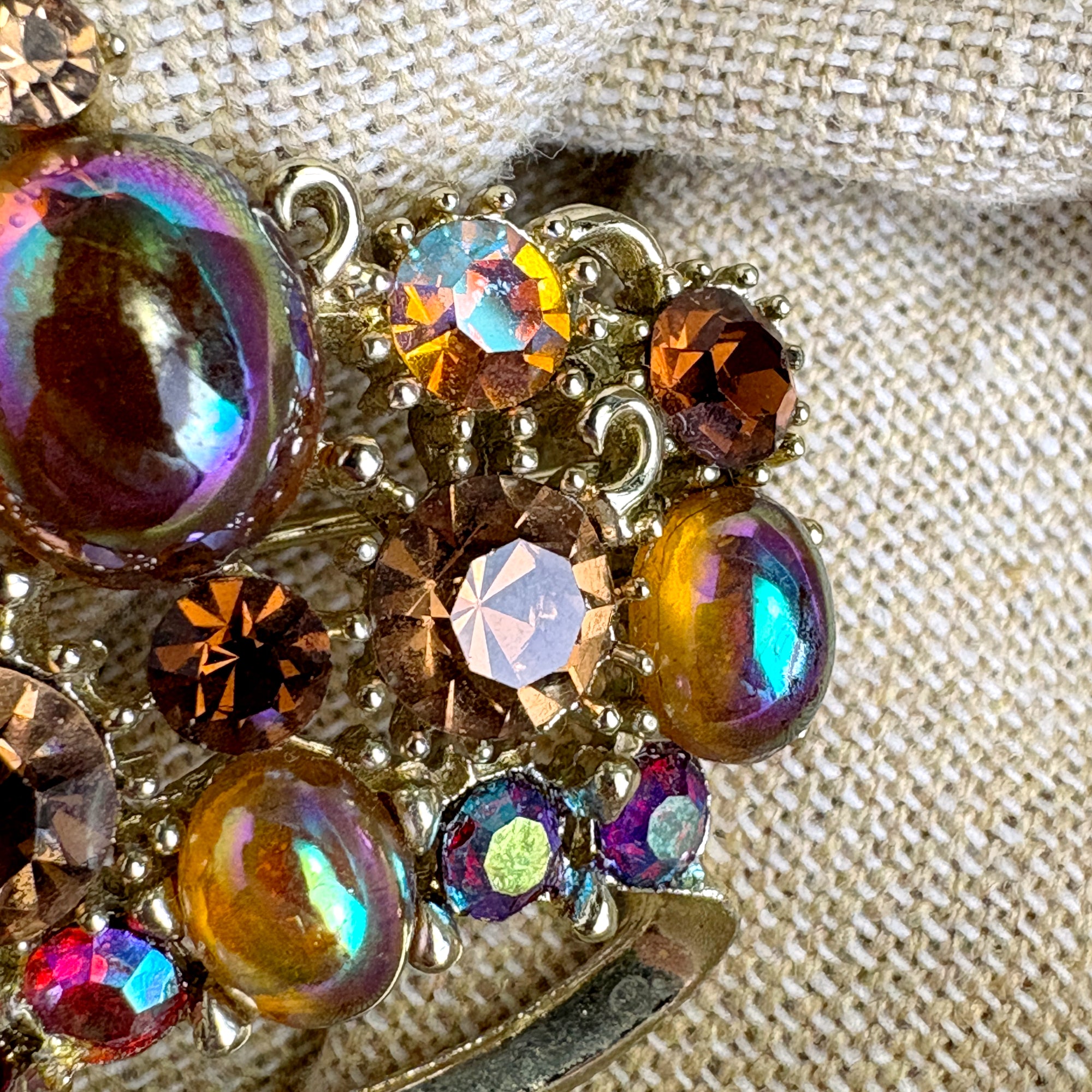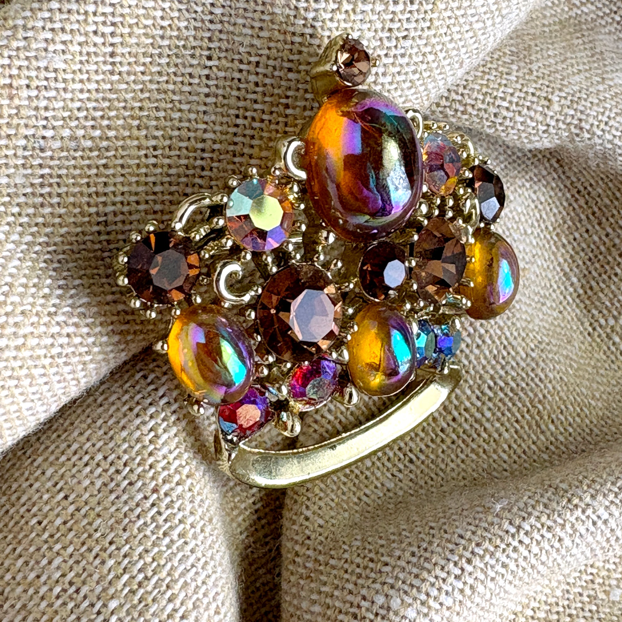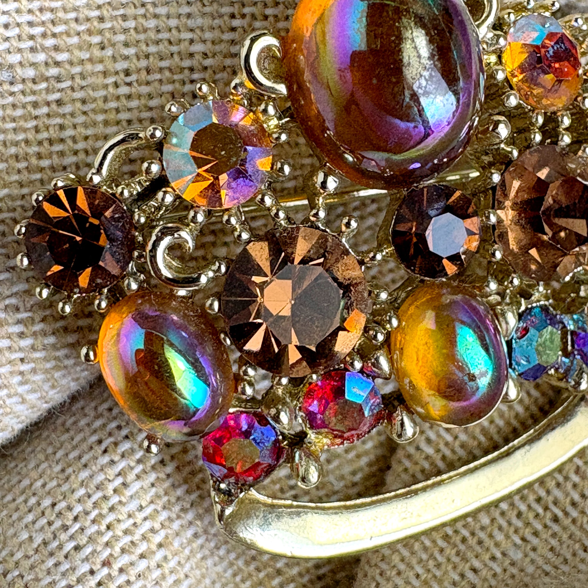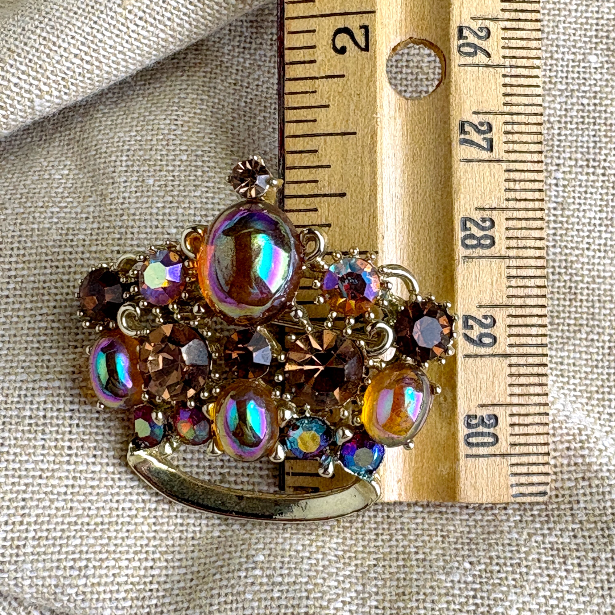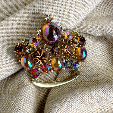Lisner crown brooch with iridescent peach rhinestones - 1960s vintage