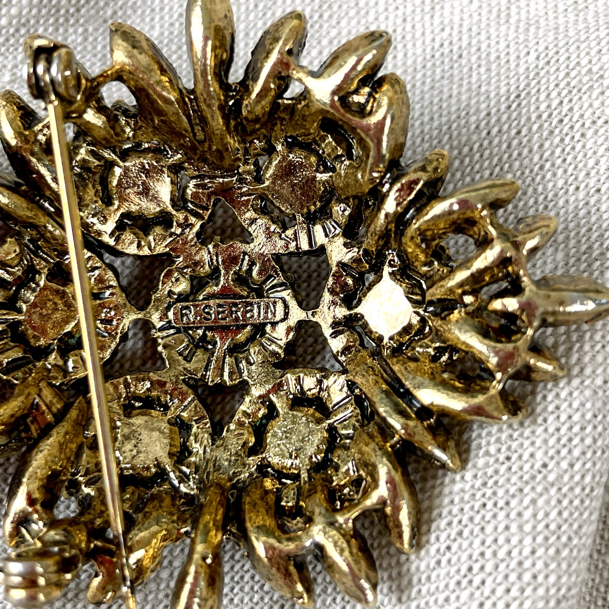 Oversized multicolor R. Serbin shield & crown brooch - vintage costume jewelry