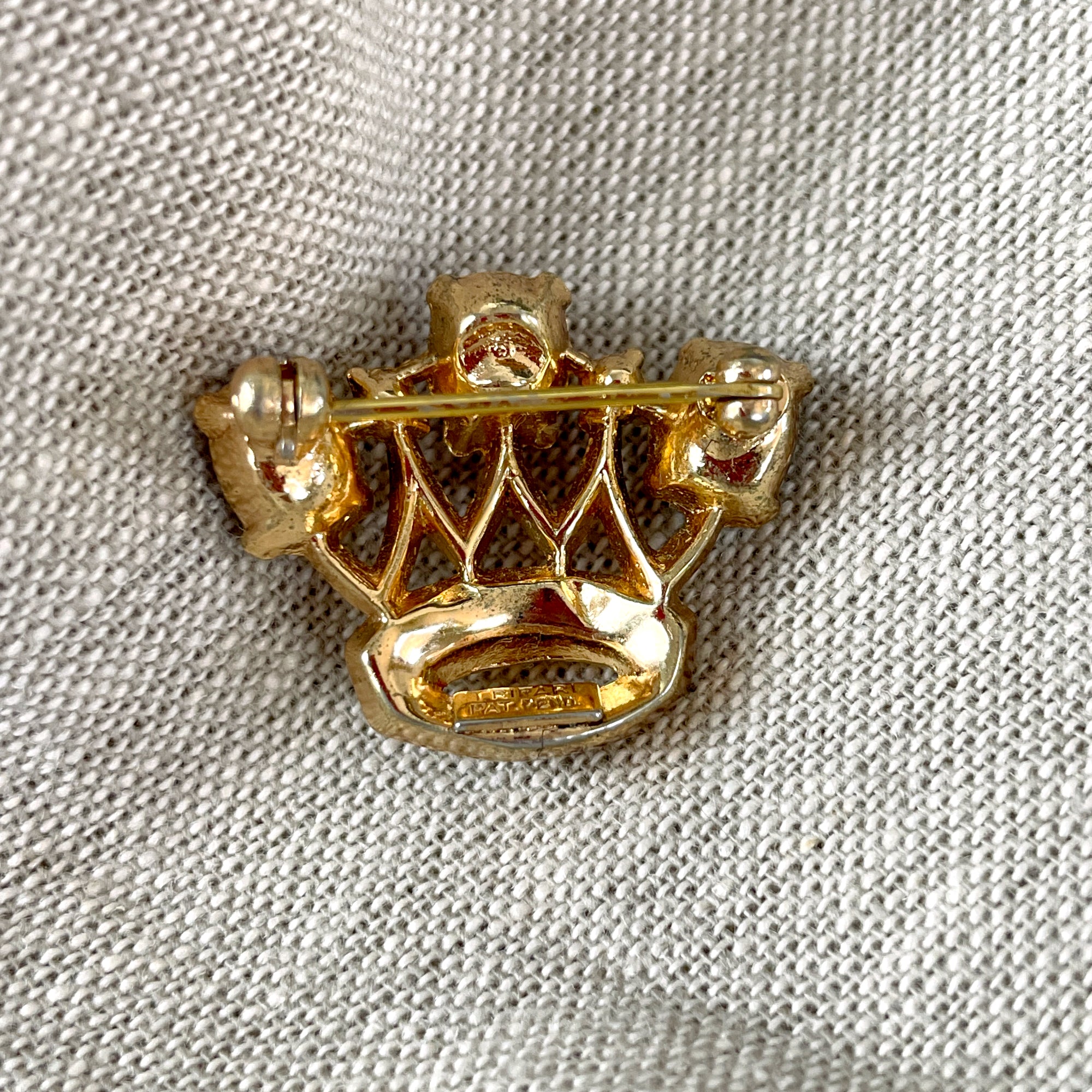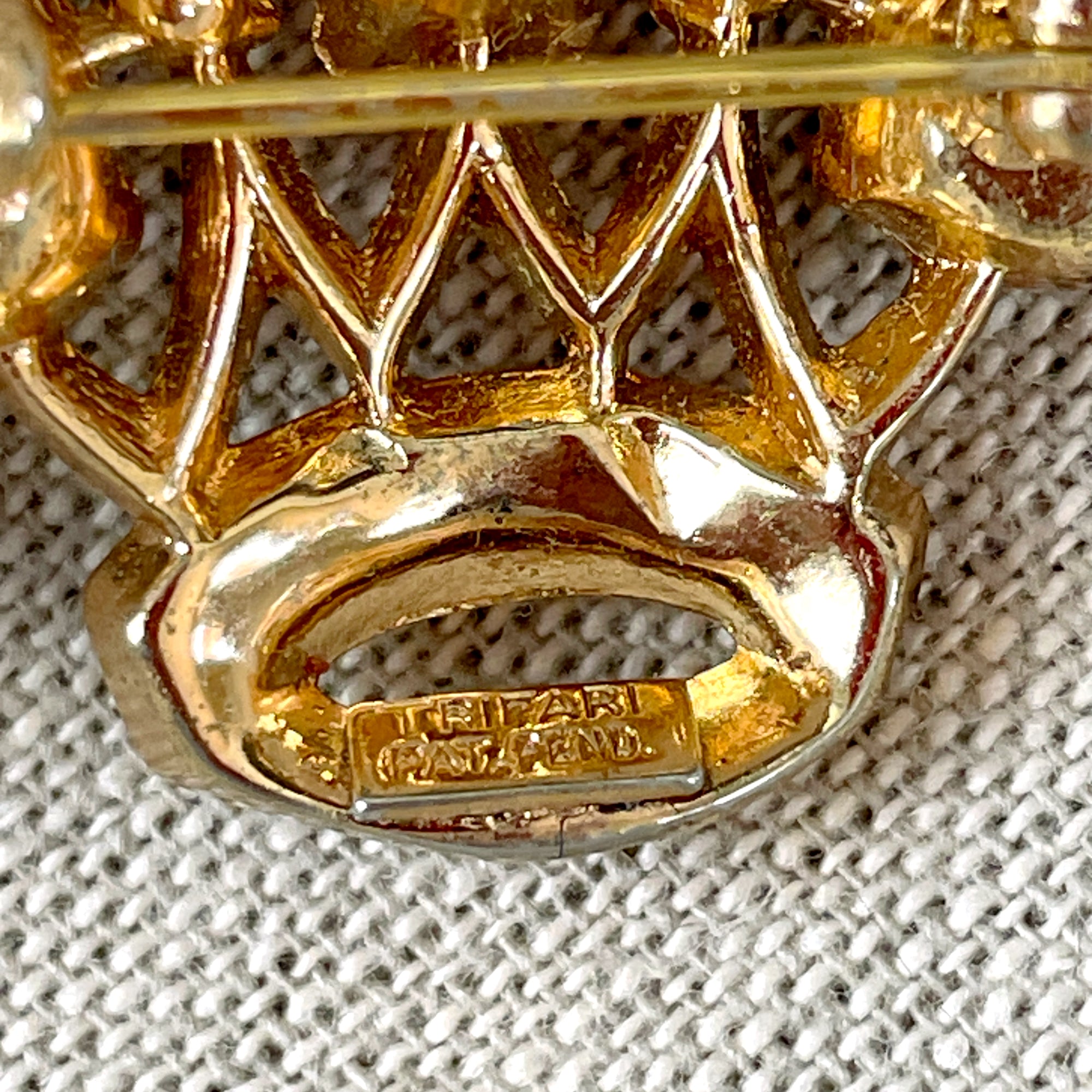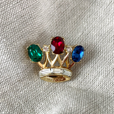 Trifari small goldtone and crystals crown brooch - 1930s vintage