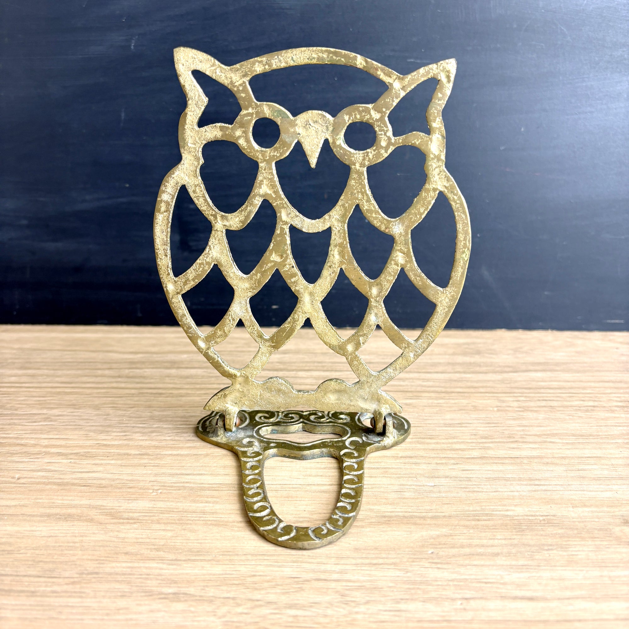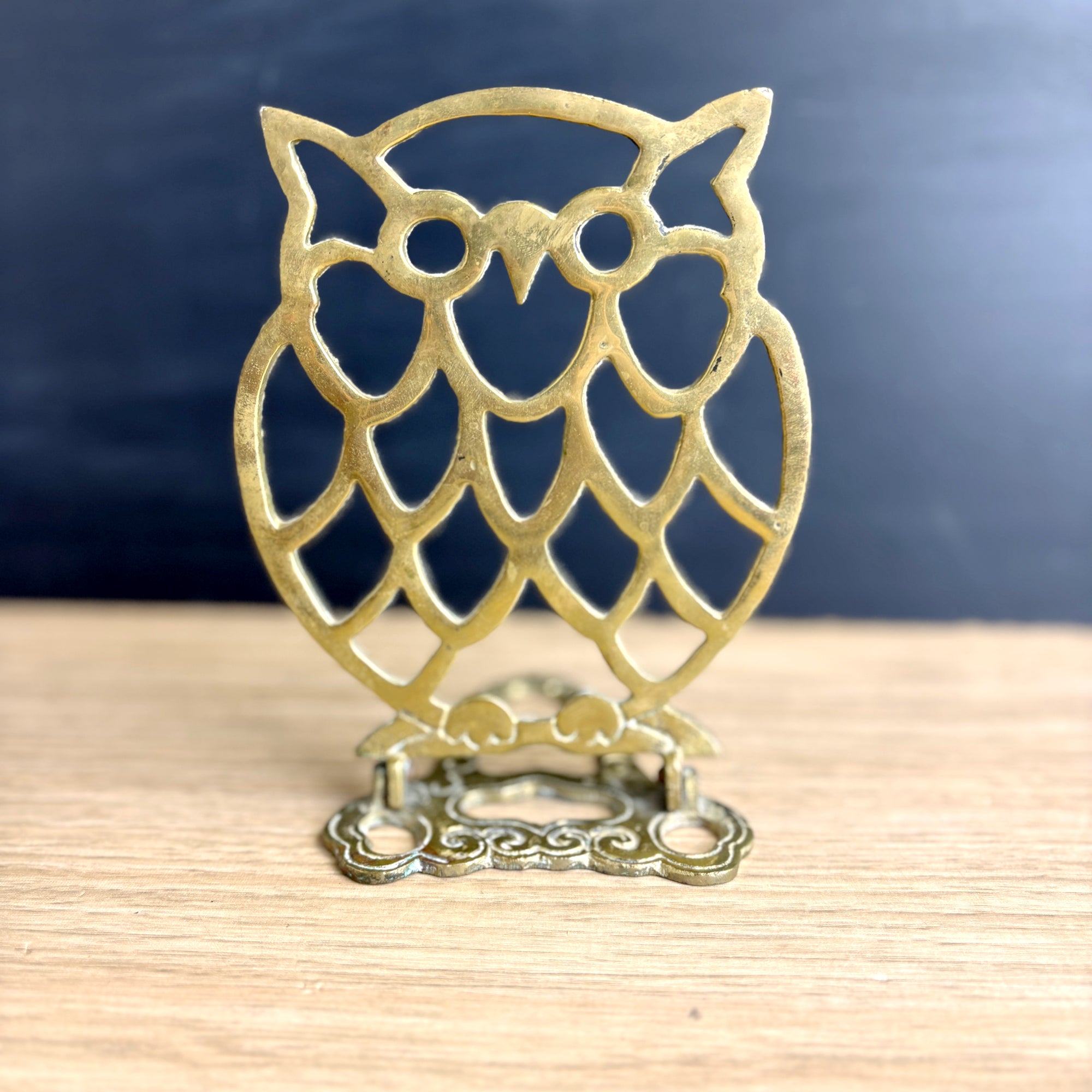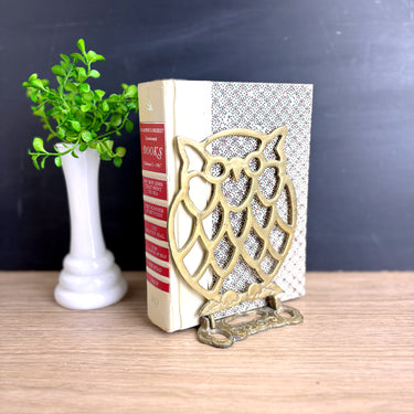Owl brass folding bookend - 1970s vintage Lenwhile Ardalt