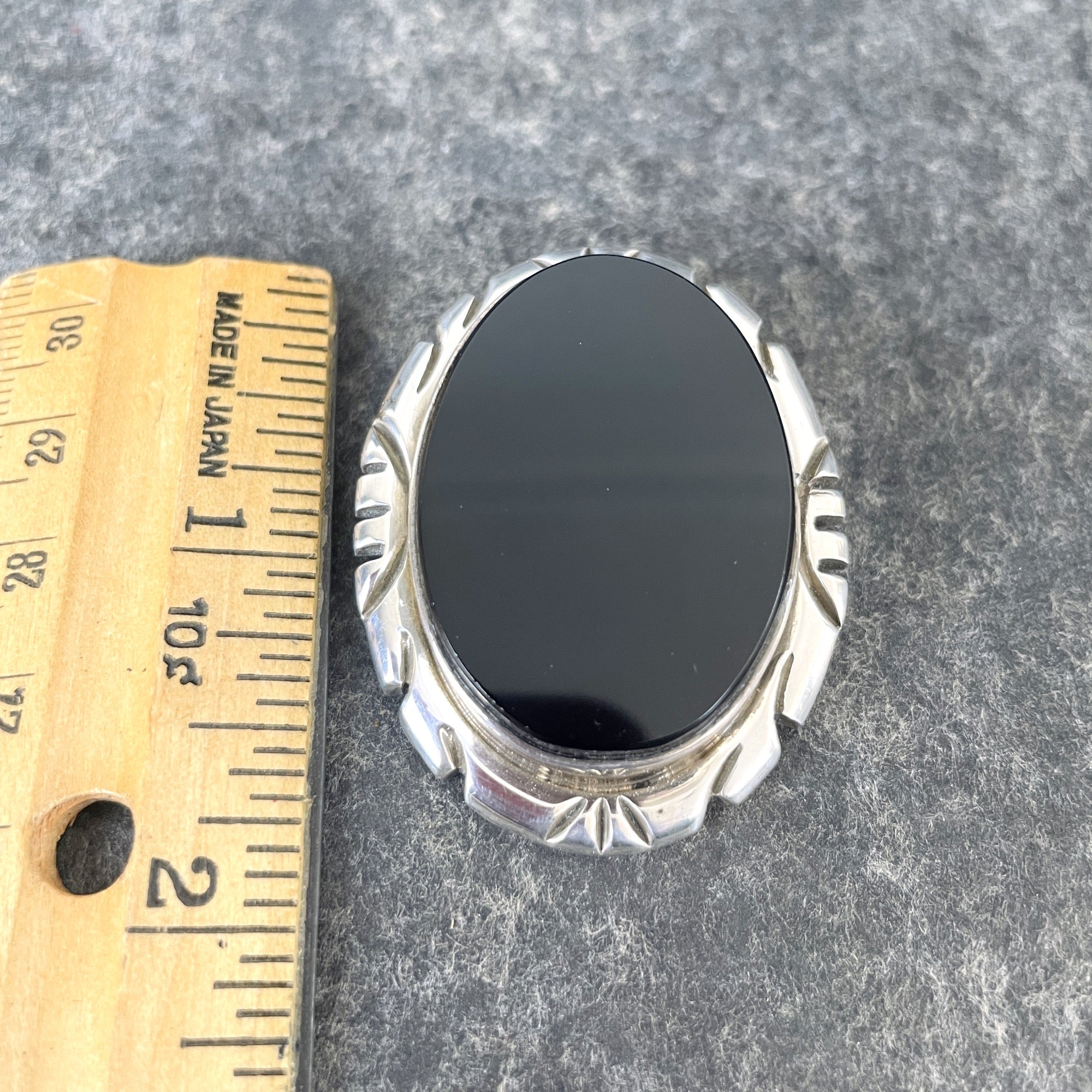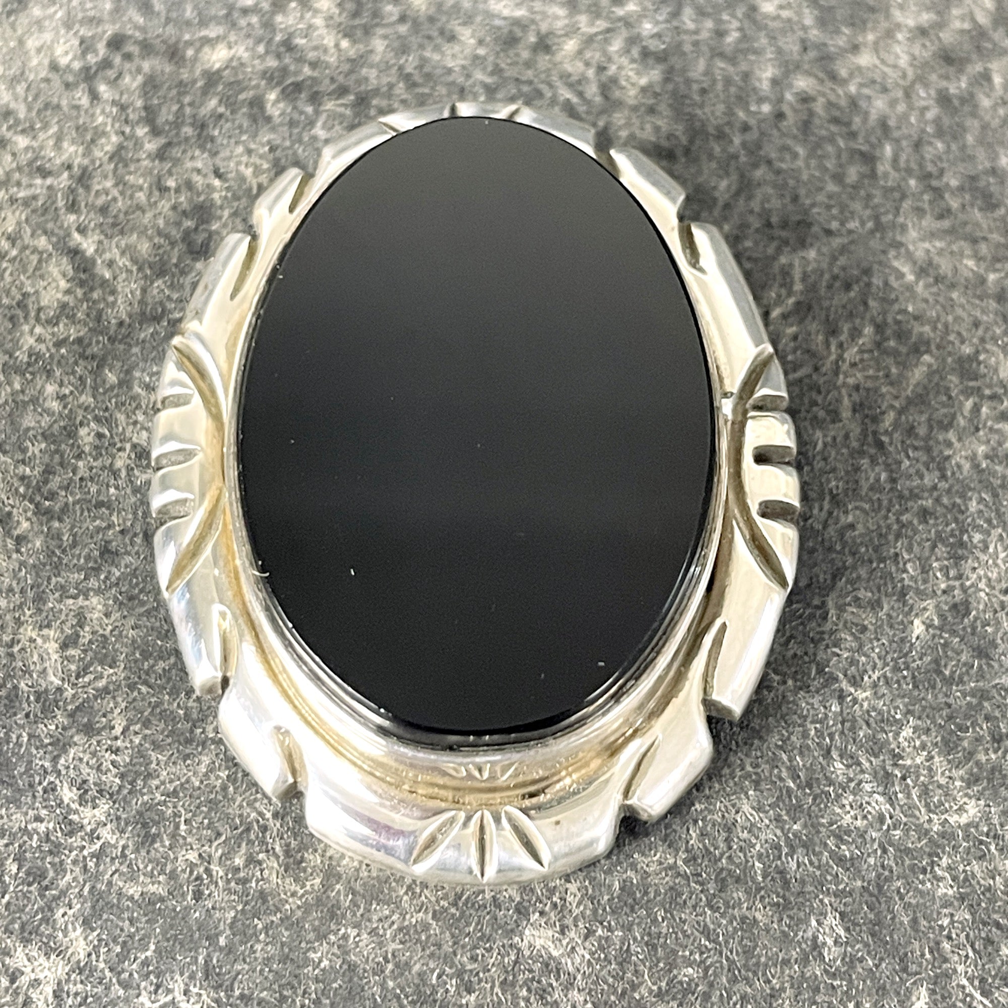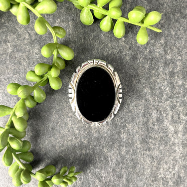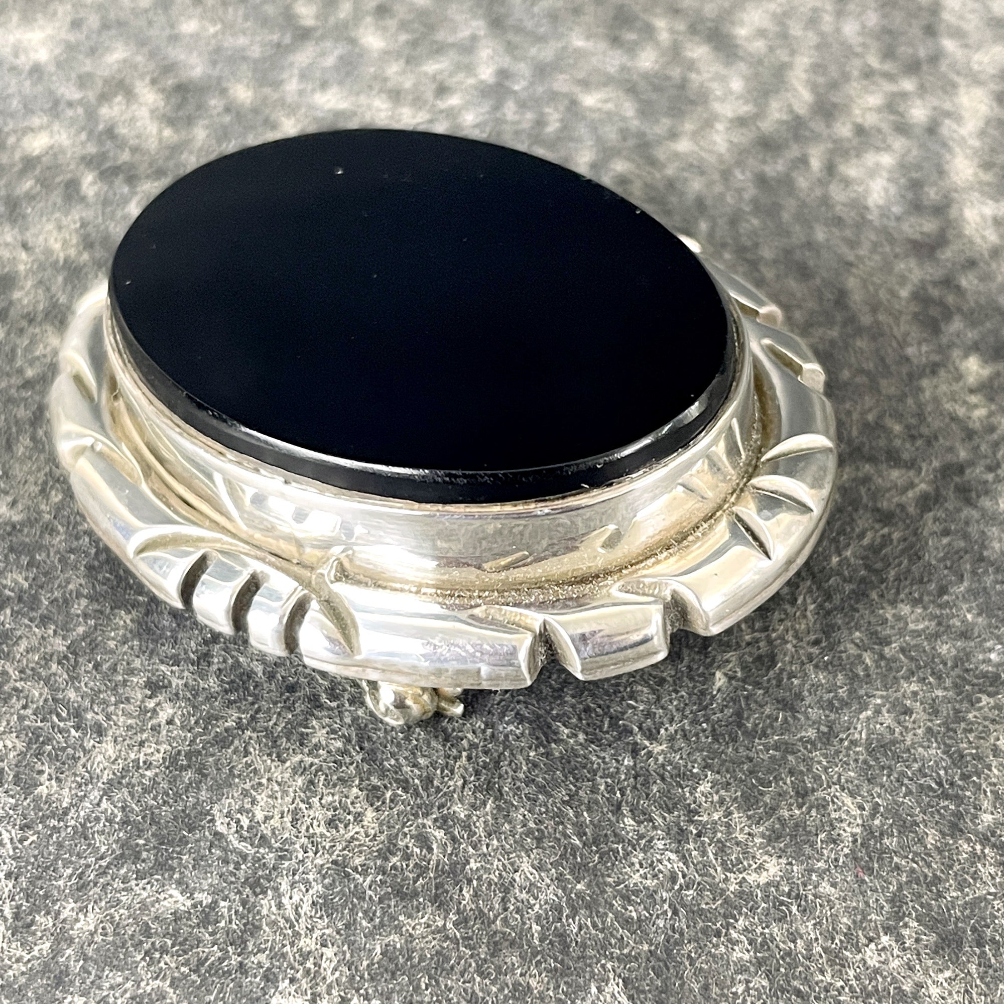 Mexican sterling silver onyx oval brooch pendant