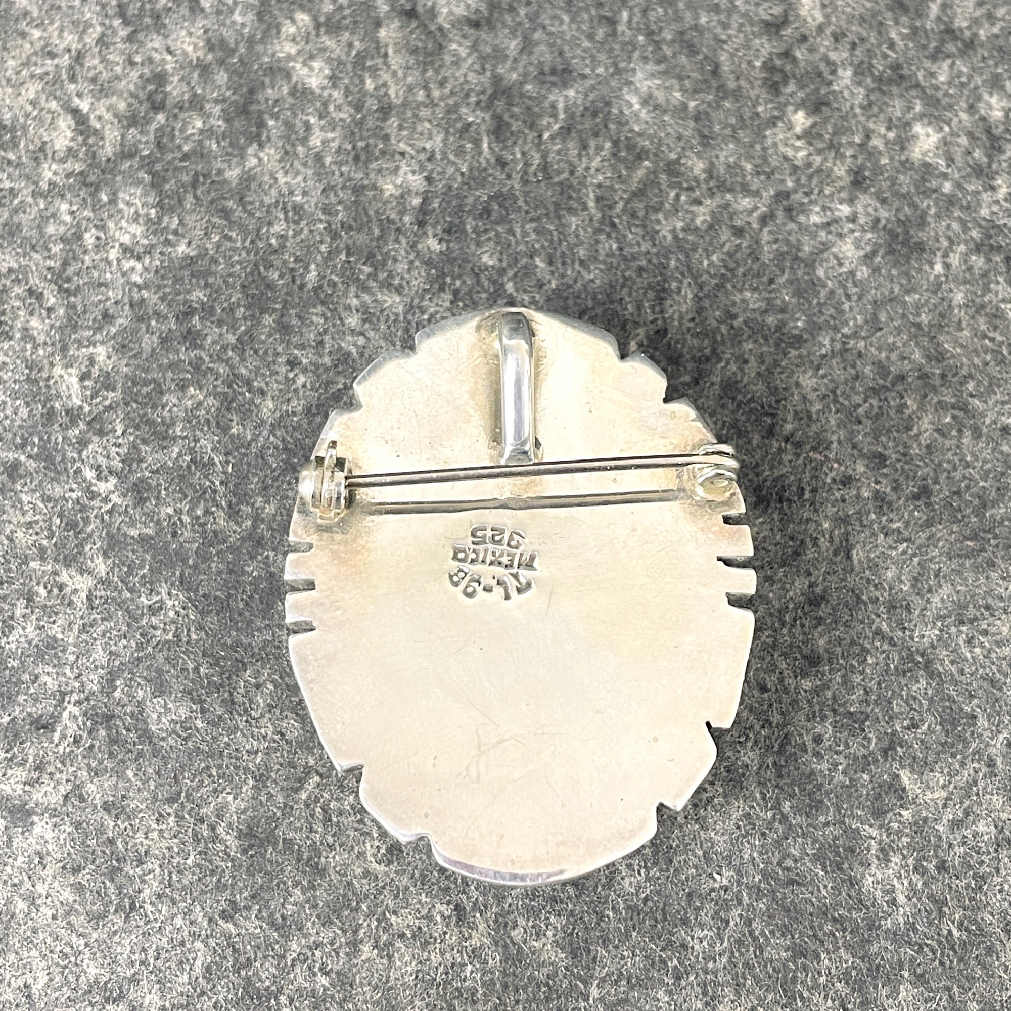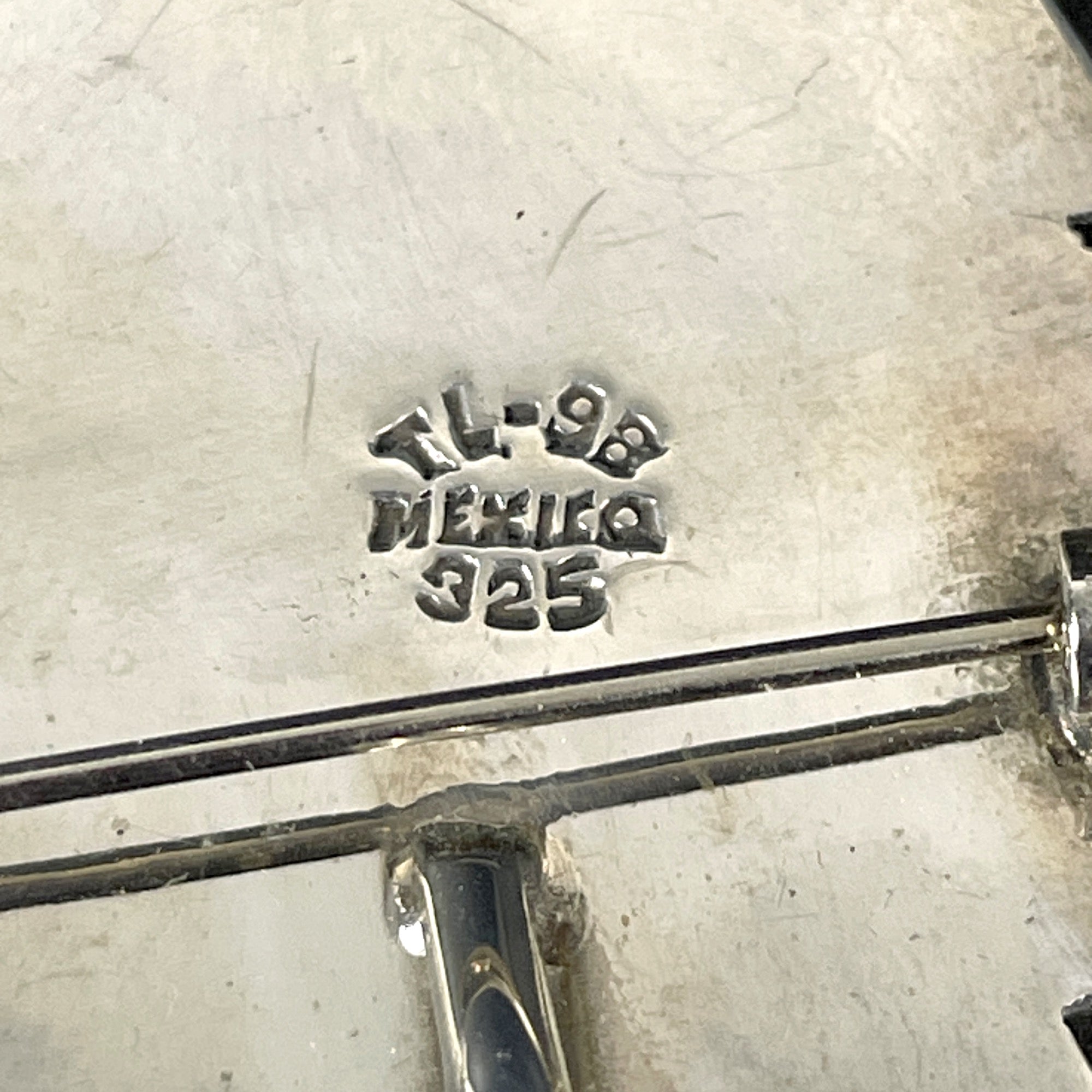 Beautiful oval onyx stone in a sterling setting which can be used as a pendant or brooch. Marked TL-98 Mexico 925. Wear it on a lapel or collar.