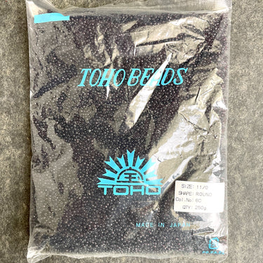 Destash lot of Toho 11/0 round seed beads, color 6C which is a dark amethyst, in original unopened 250 g package.