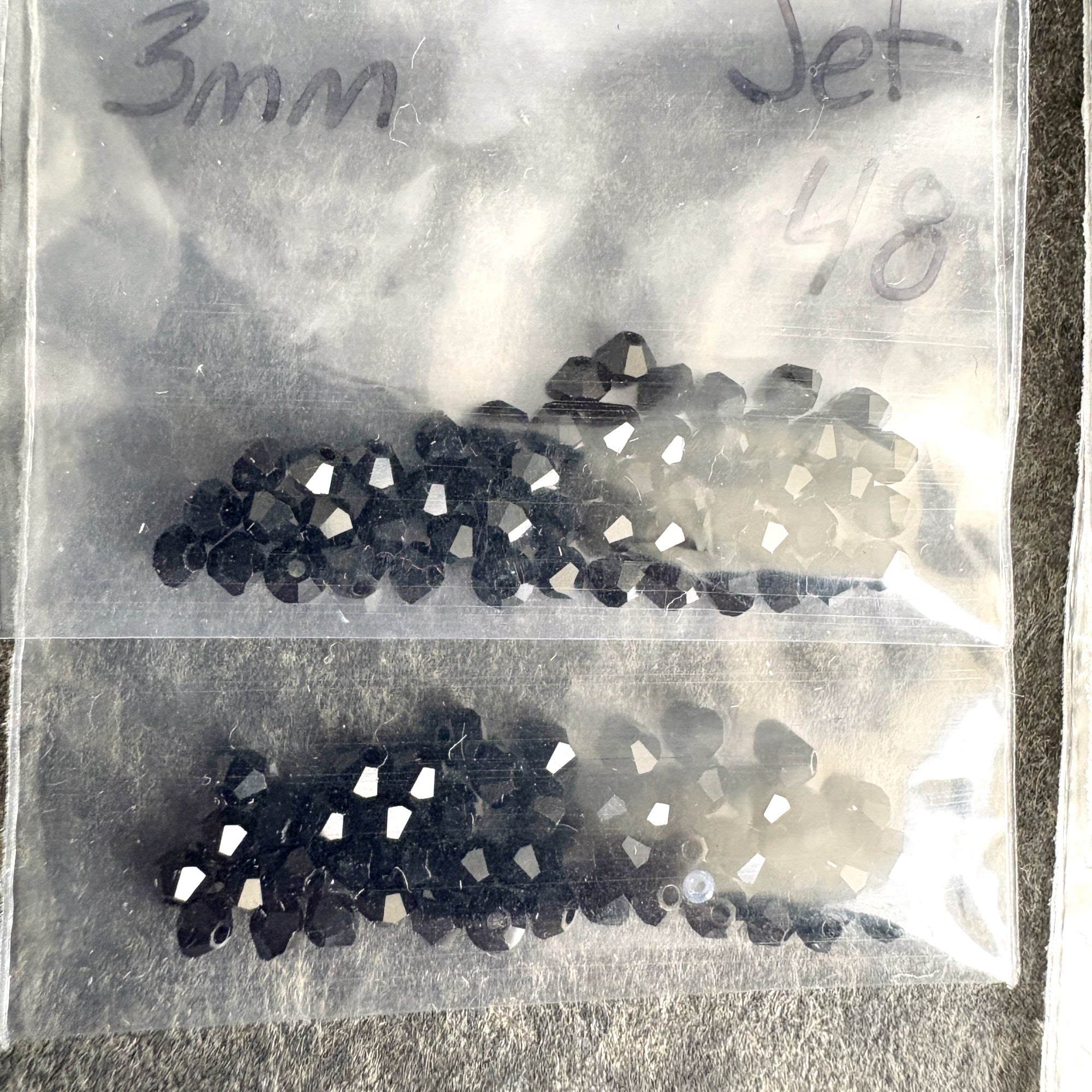 2 bags with 48/bag of jet 3mm bicone crystal beads