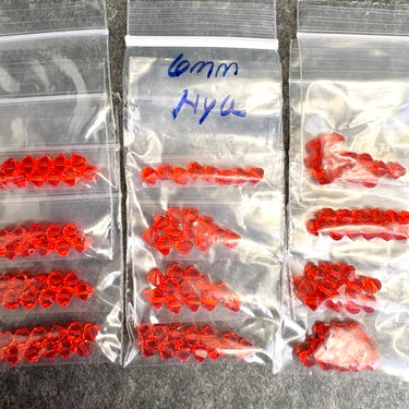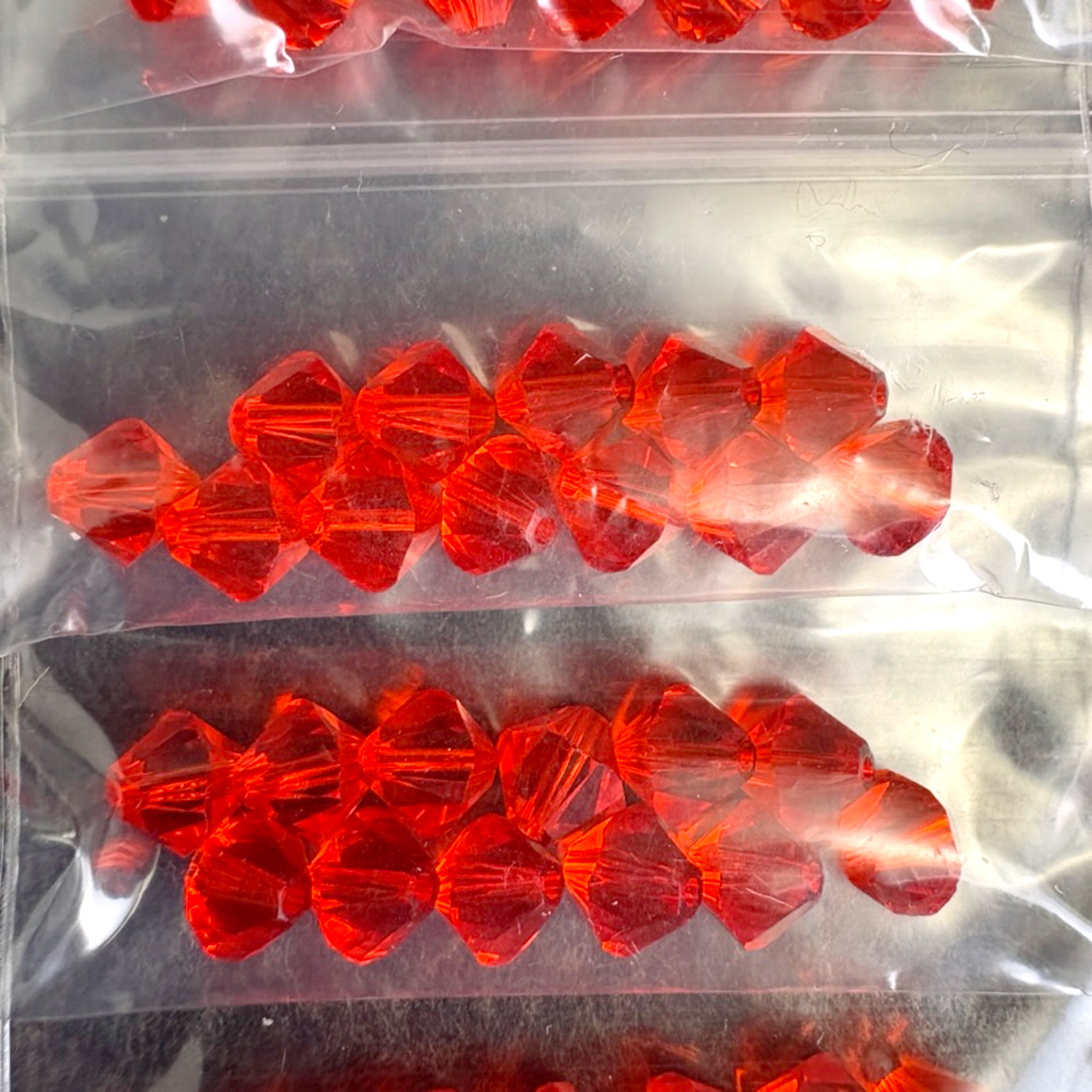 This listing is for 11 bags of 6mm bicone crystal beads, with 12 beads per bag plus an extra 8 beads) for a total of 140 beads.