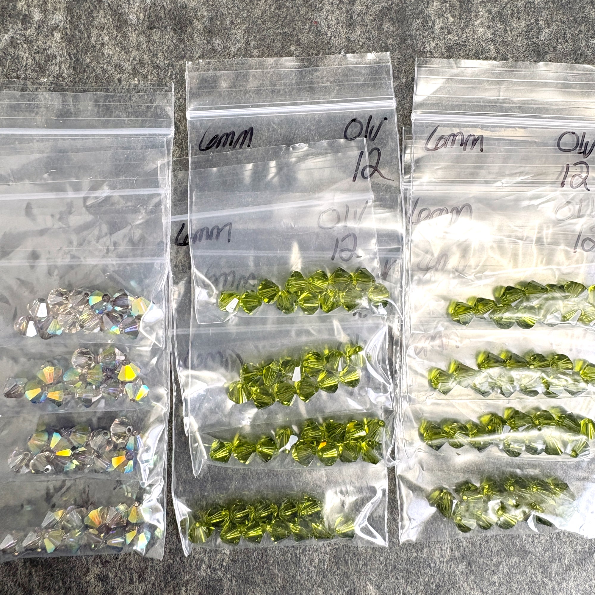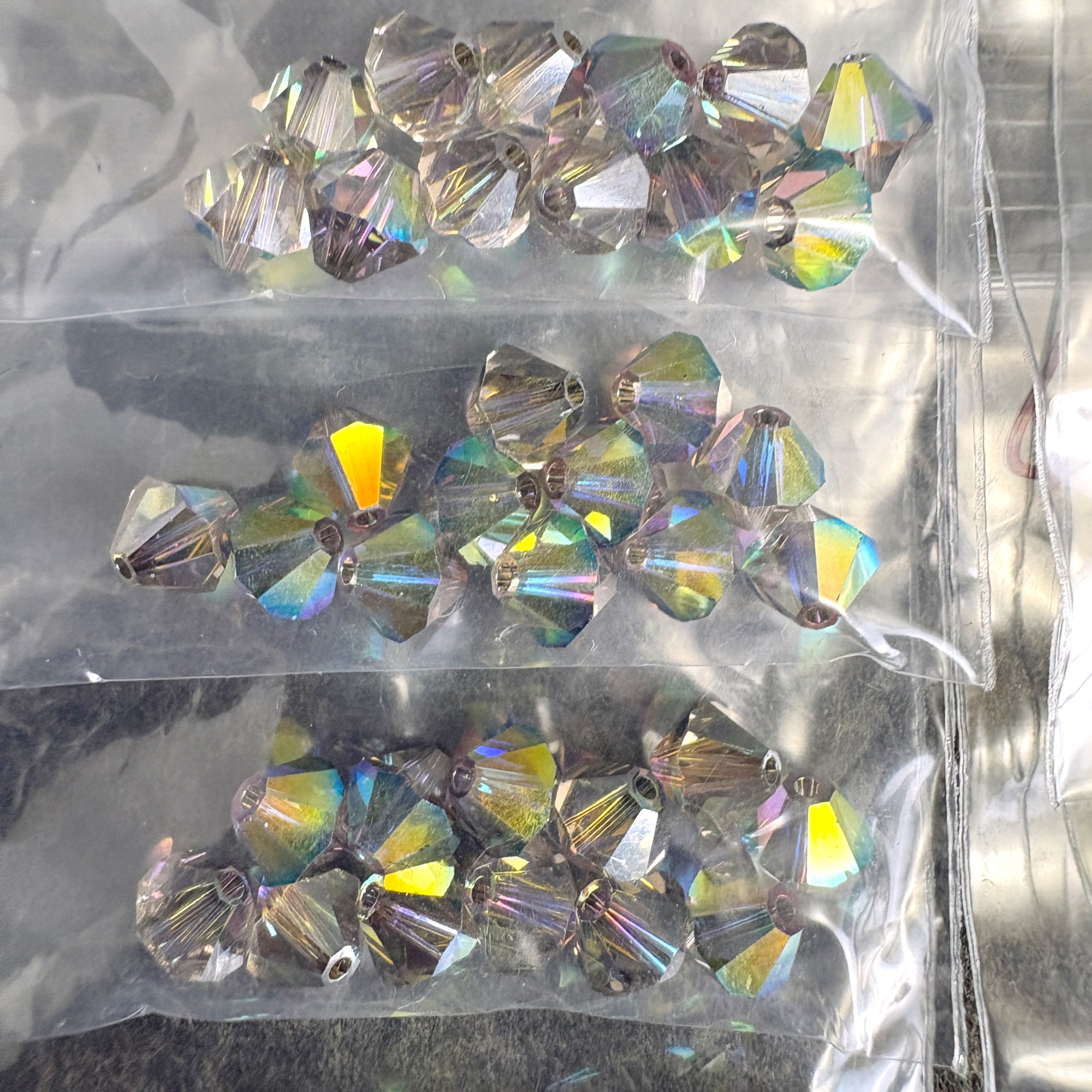 144 pcs 6mm crystal bicone beads - olivine, amber AB - Swarovski? destash