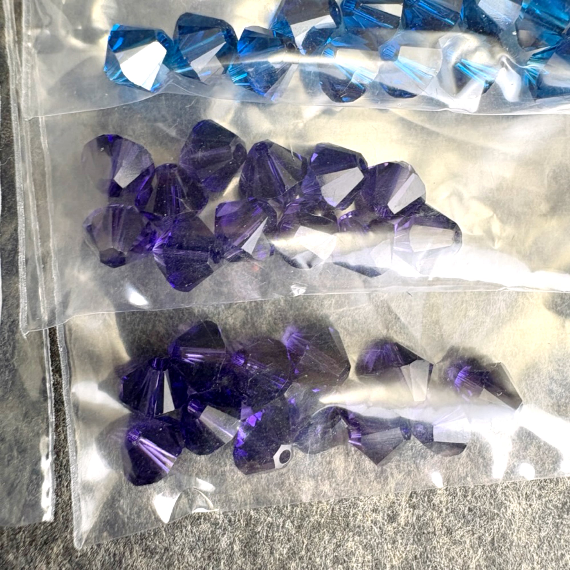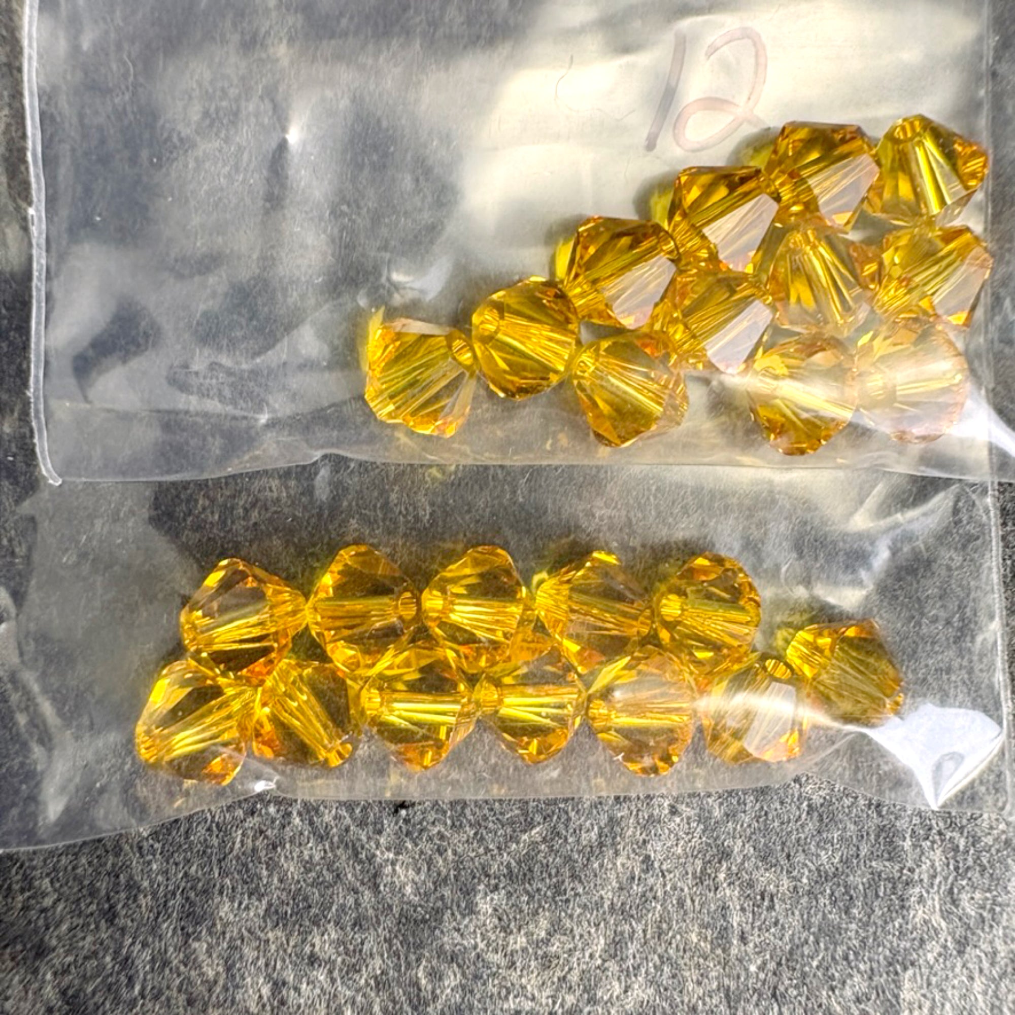 12 bags with 12 beads/bag of 6mm bicone crystal beads for a total of 144 beads.