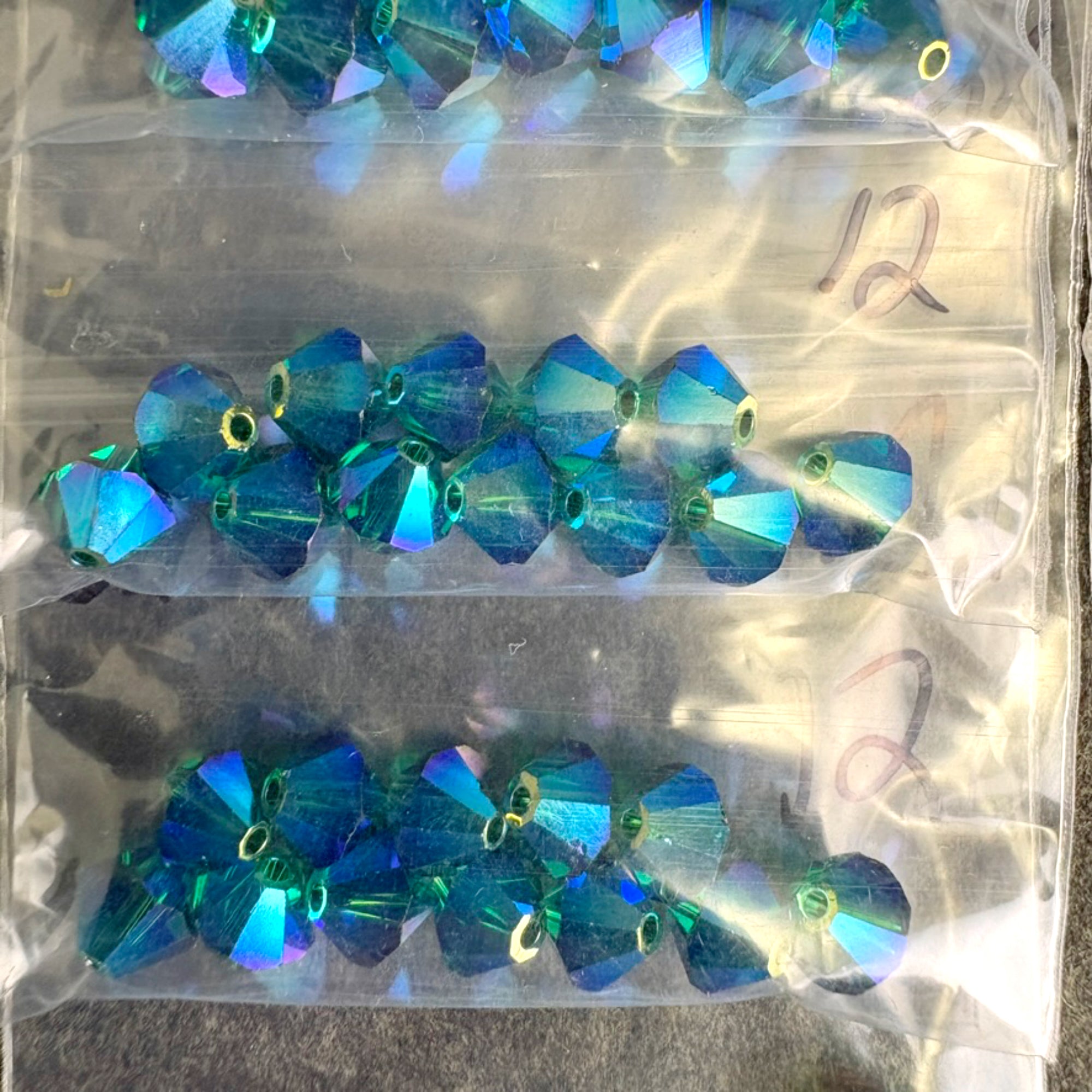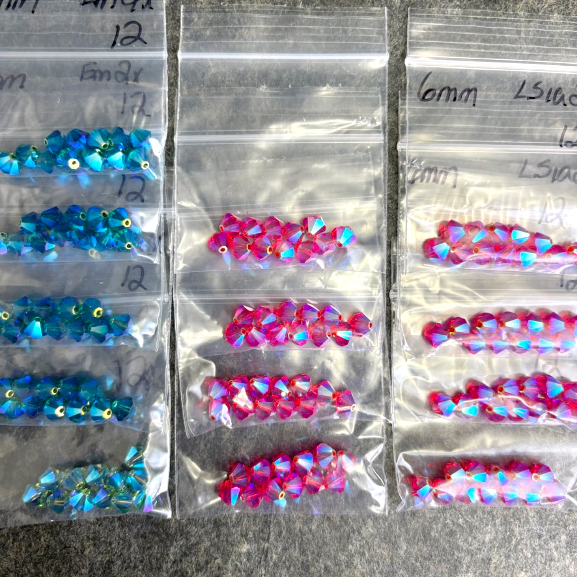 Lucky 13 bags with 12 beads/bag of 6mm bicone crystal beads for a total of 156 beads.
