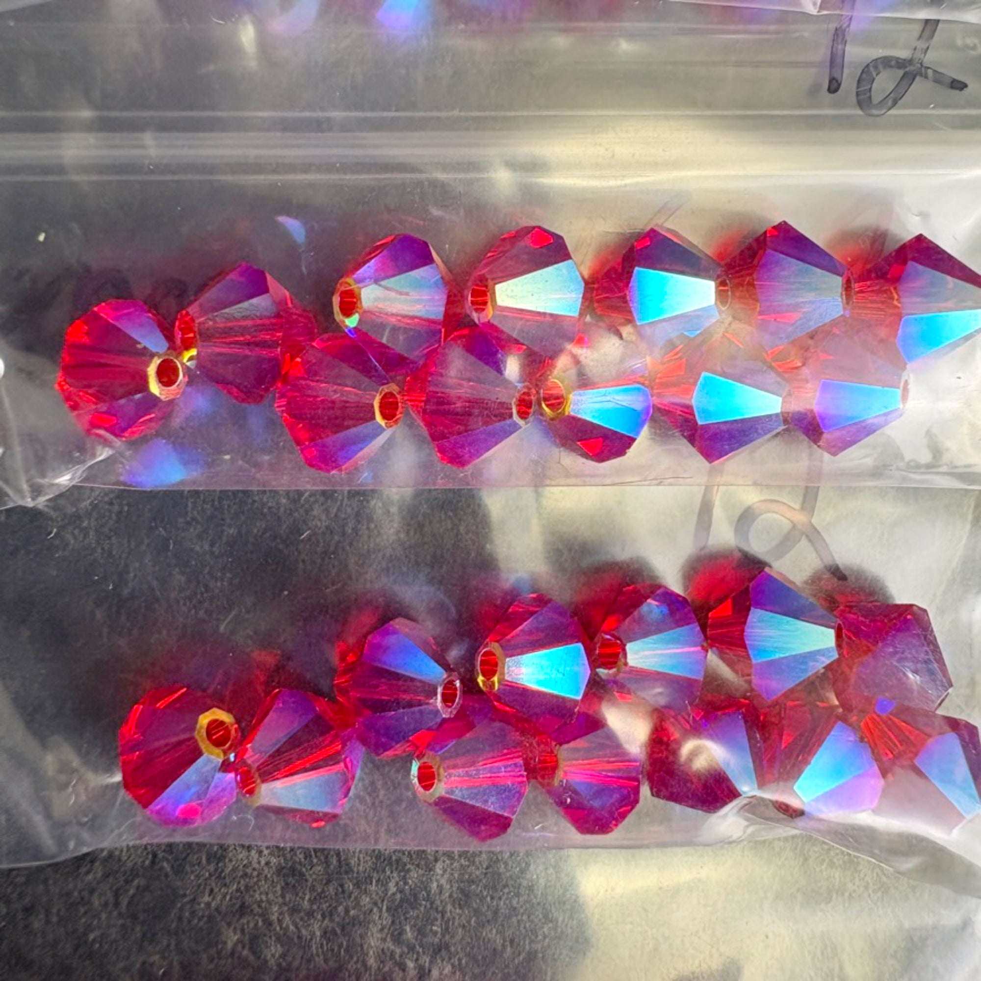 156pc 6mm bicone crystal beads – lt siam 2x, erinite 2x – Swarovski? destash