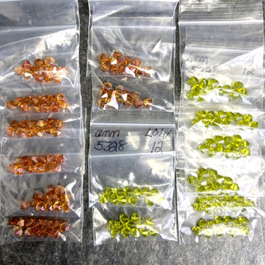 16 bags with 12 beads/bag of 6mm bicone crystal beads for a total of 192 beads.