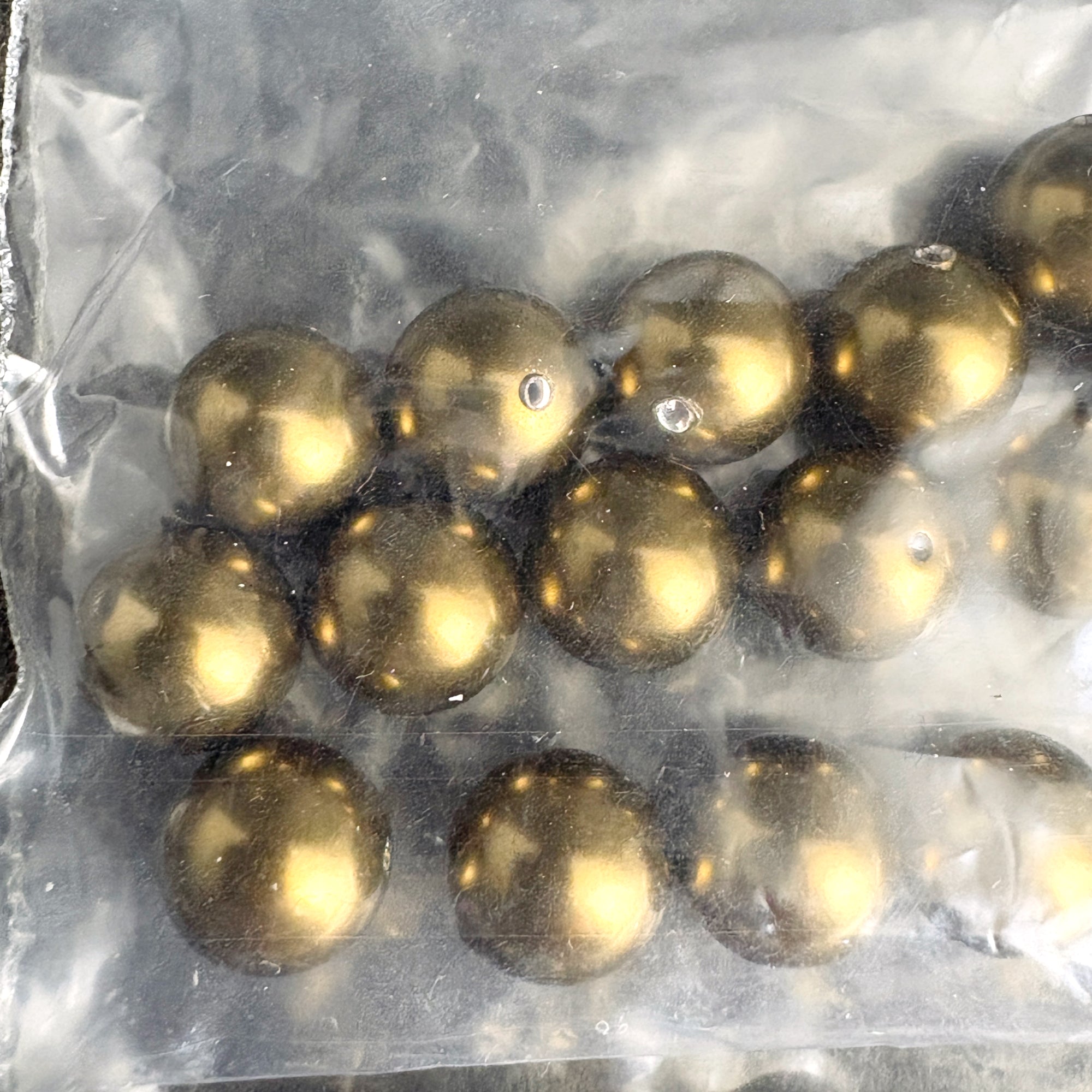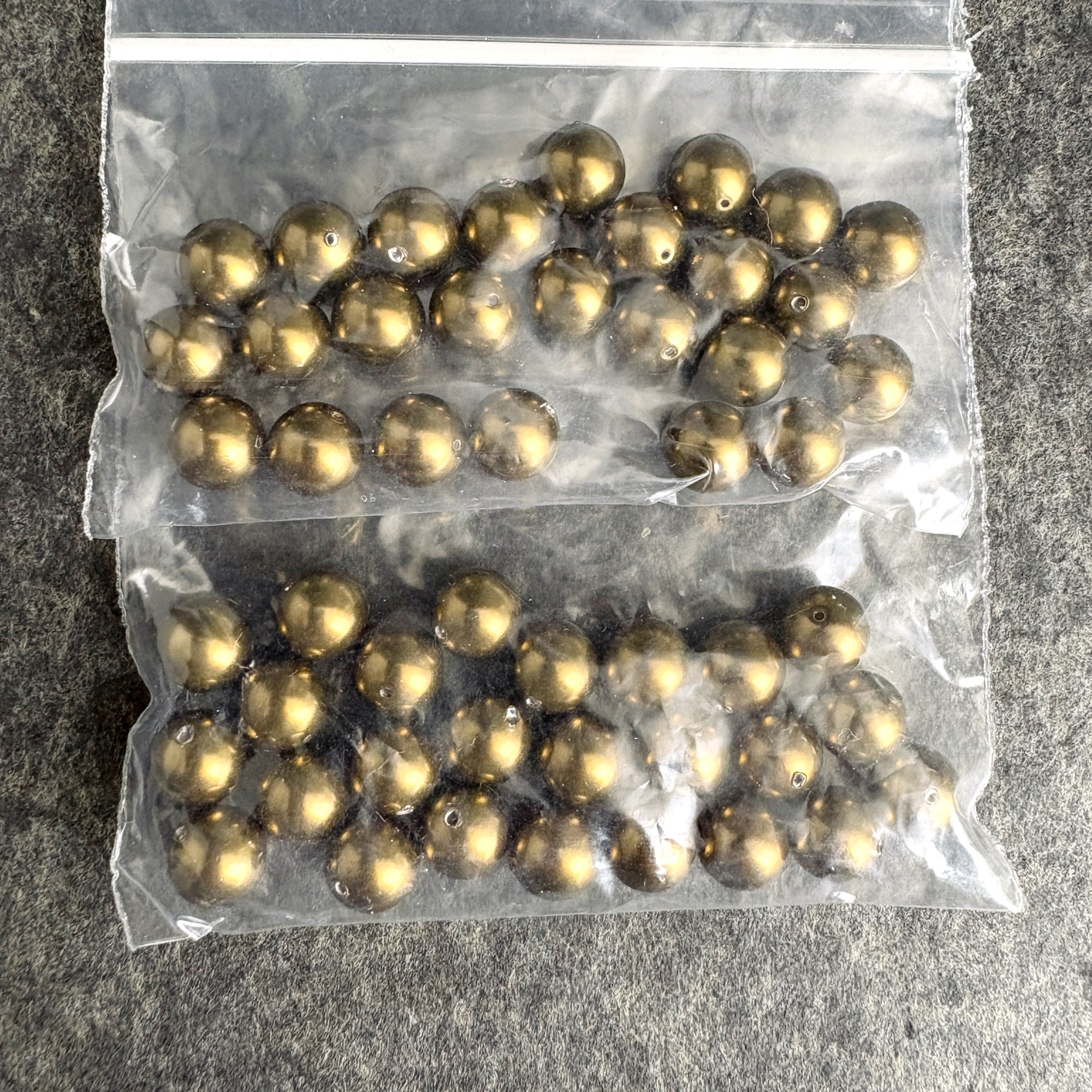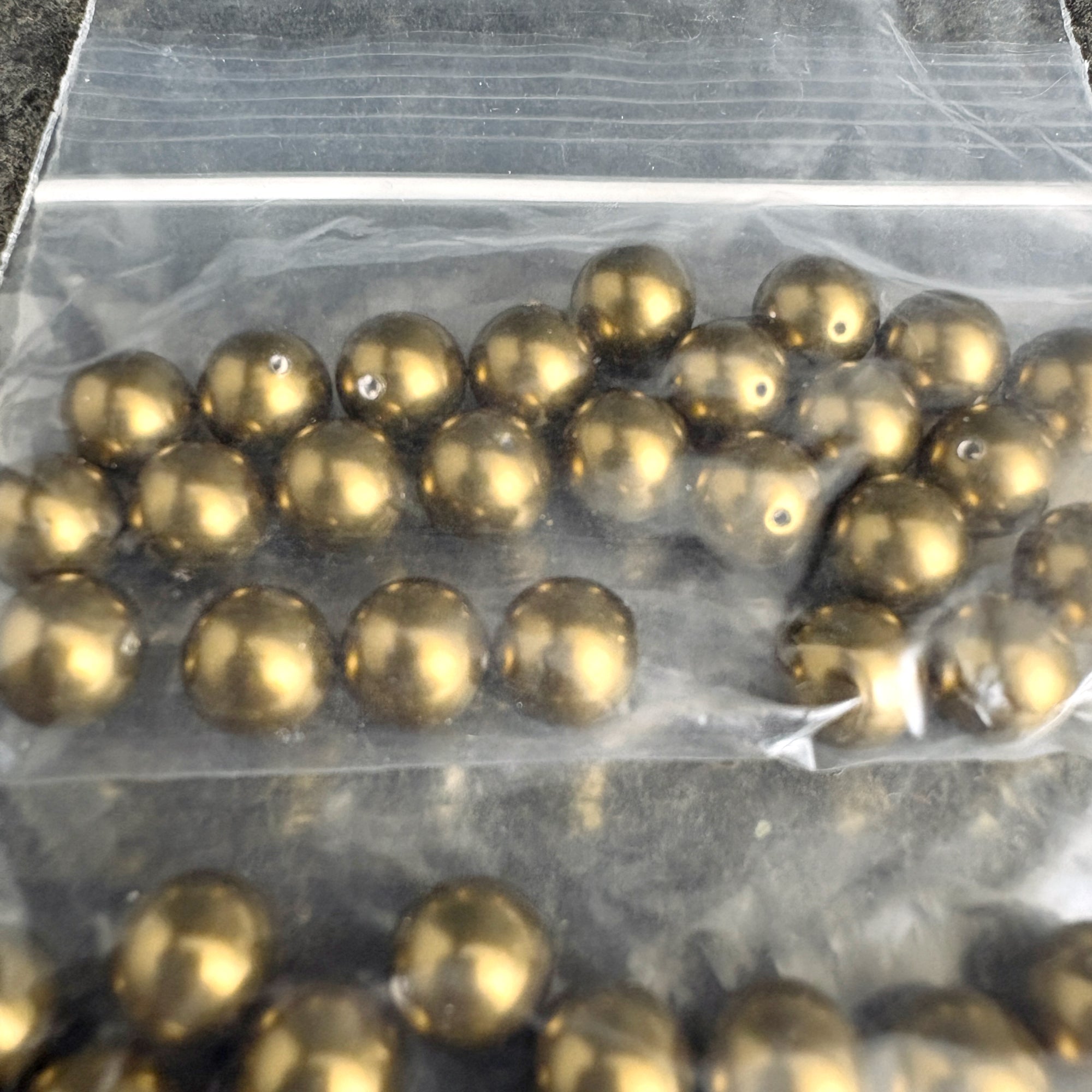 Two bags with 25/bag of 8mm round crystal pearls in antique brass (a deep, shiny dark gold) for a total of 50 beads. These beautiful crystal pearls are full-drilled and ready for your next jewelry or craft project.