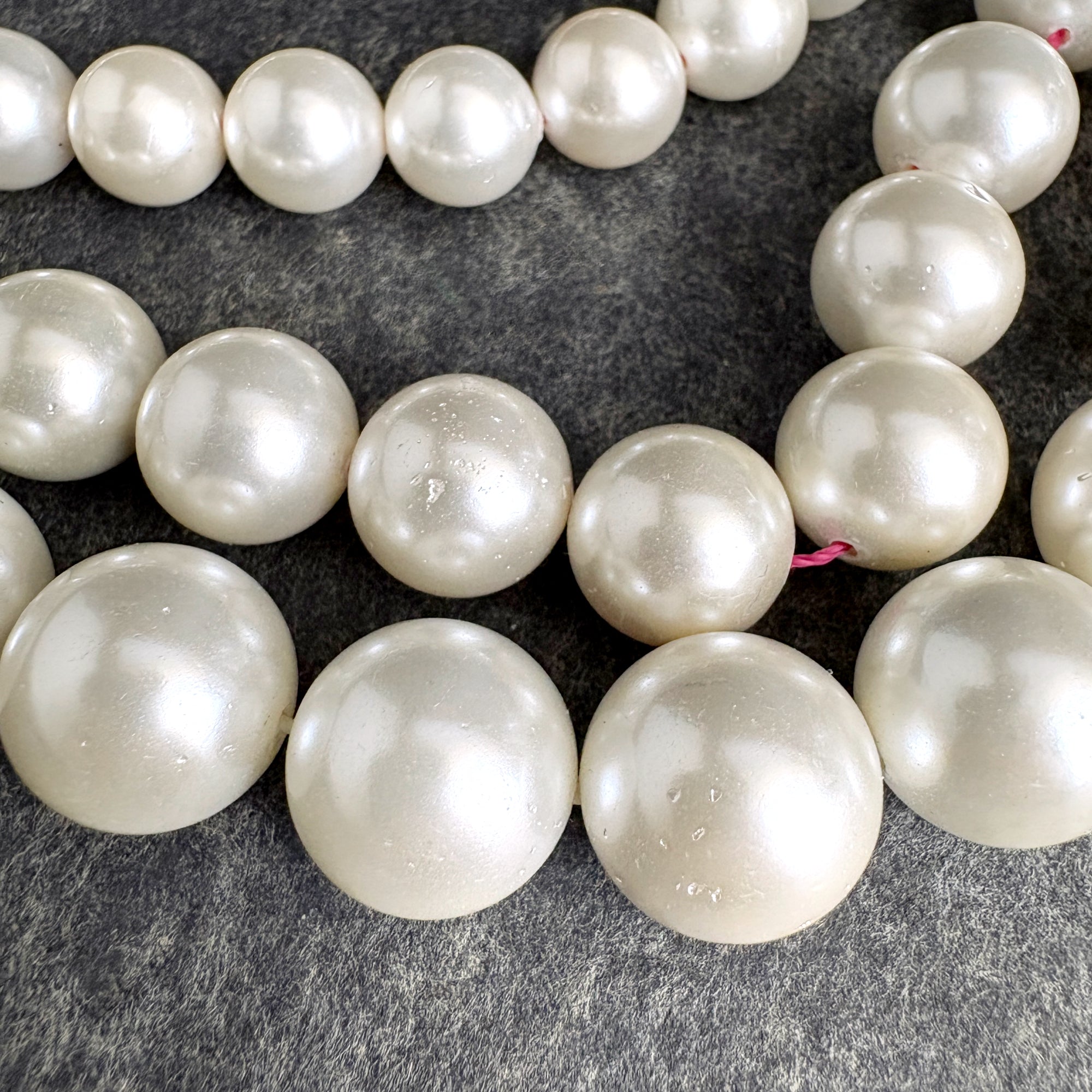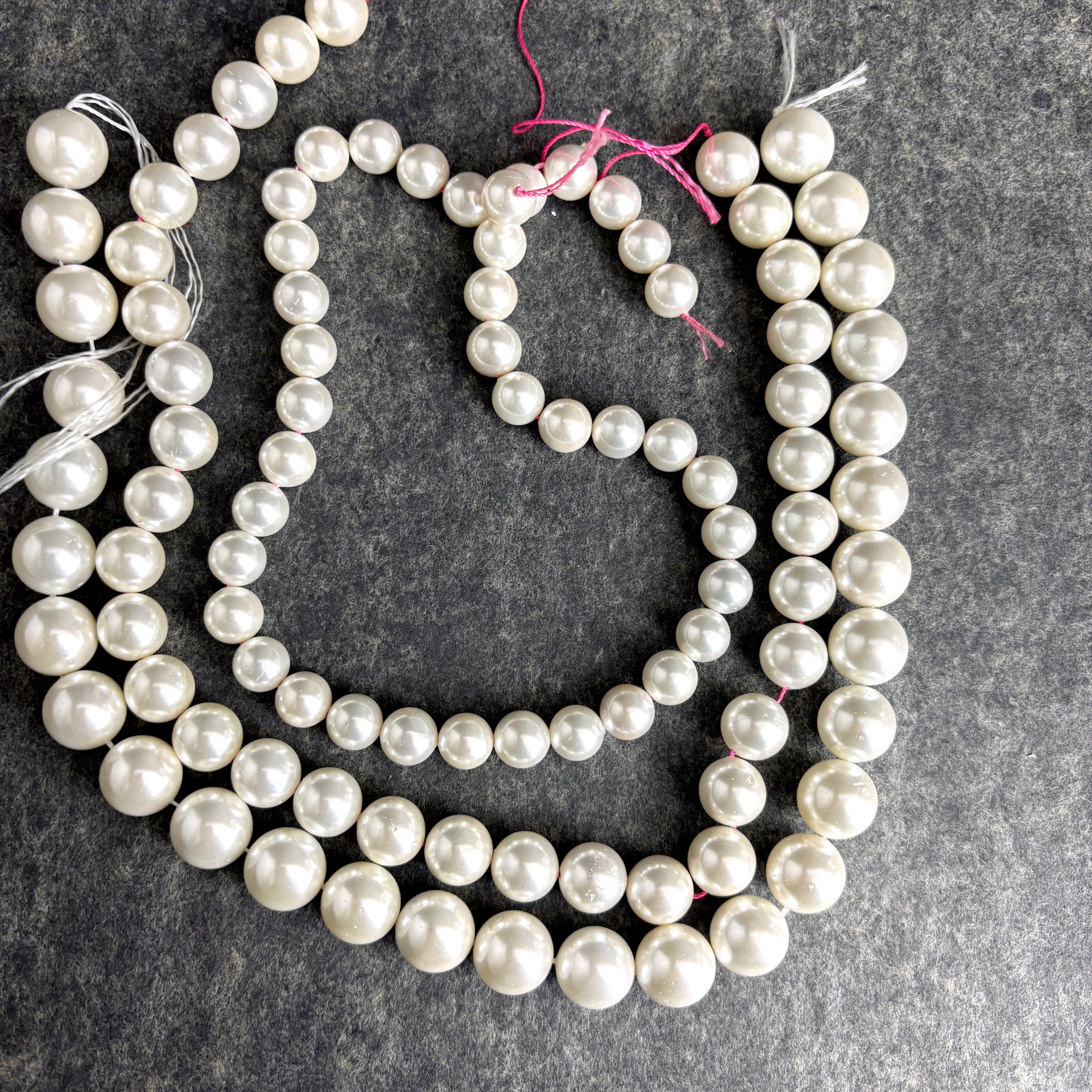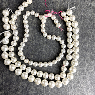 3 16" Strands round off-white glass pearlized beads 10-14mm - jewelry making/crafting