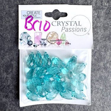 Genuine Swarovski briolette 13x6.5mm crystal beads crystal beads in light turquiose. In a sealed factory package of 24 beads from Fire Mountain Gems.