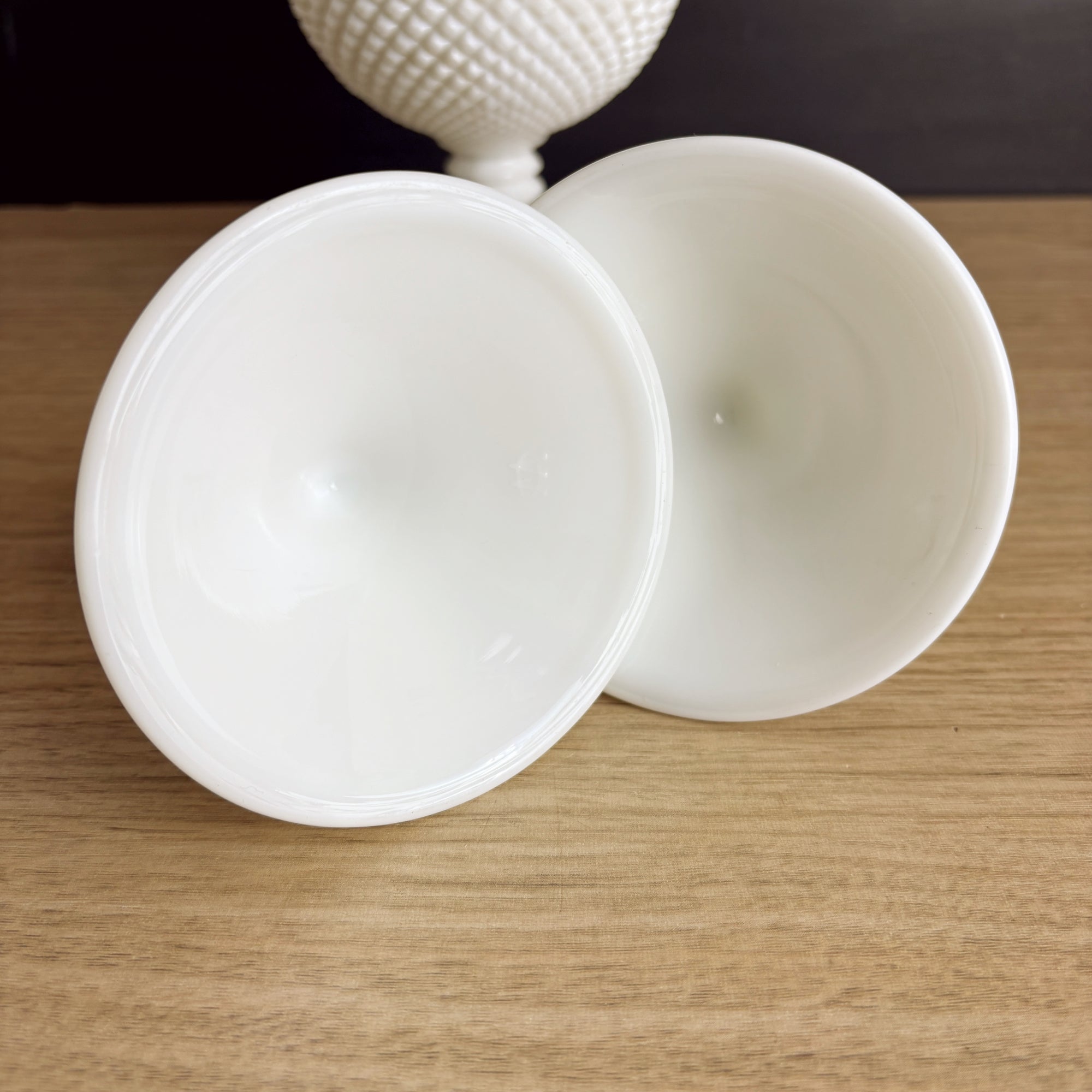 This is a vintage item. Previously loved and gently aged. Please review photos carefully to ensure it meets your expectations. We want you to love your milk glass.
