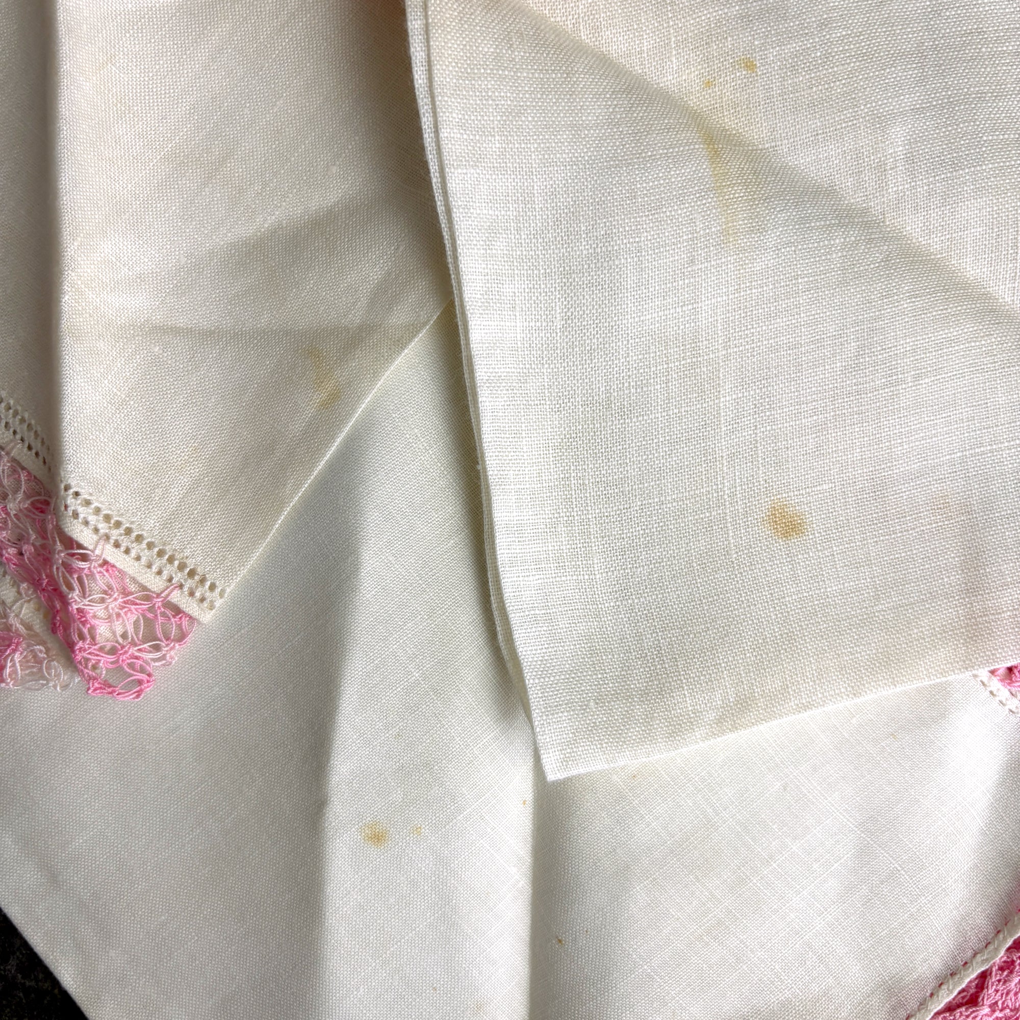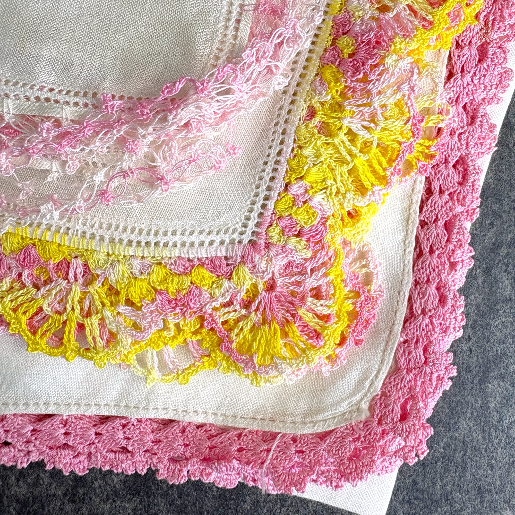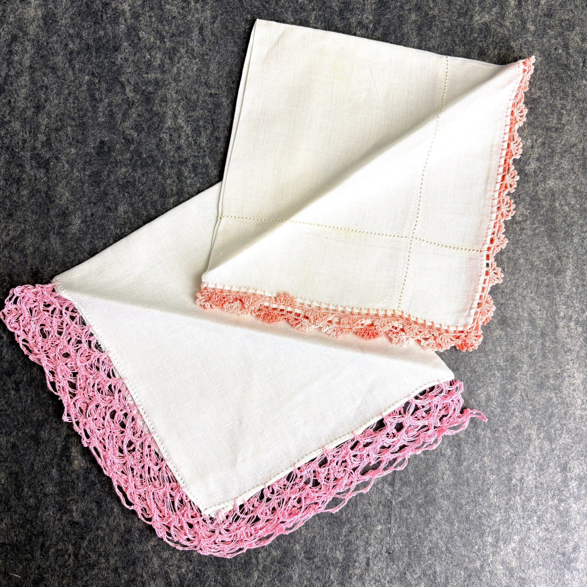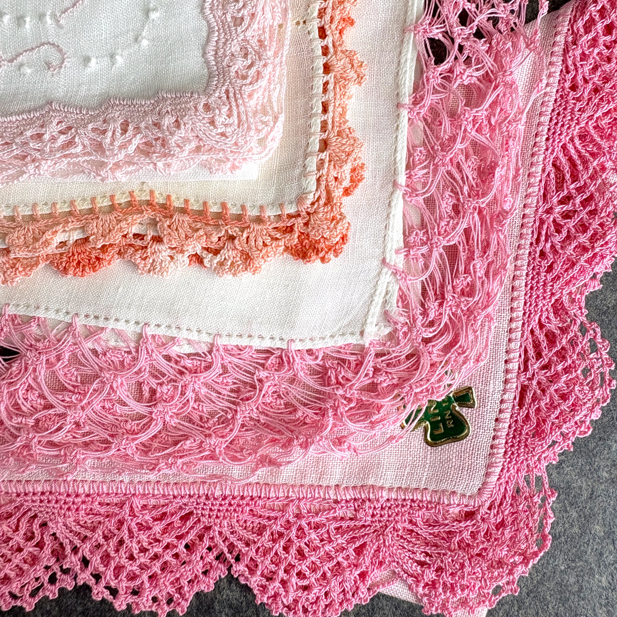 8 vintage linen embroidery and crochet hankies - shades of pink - 1950s vintage