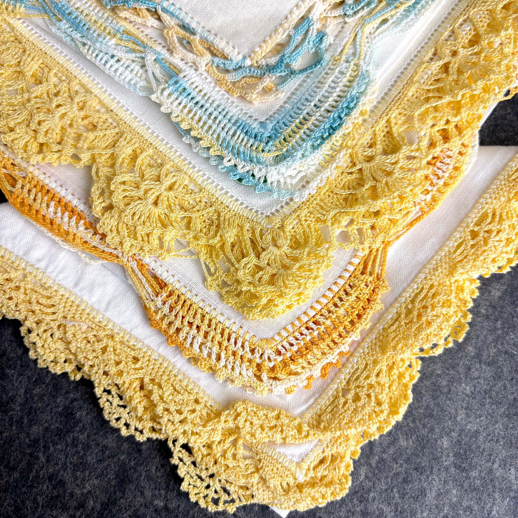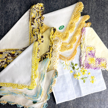 11 vintage linen crochet hankies - shades of yellow - 1950s vintage