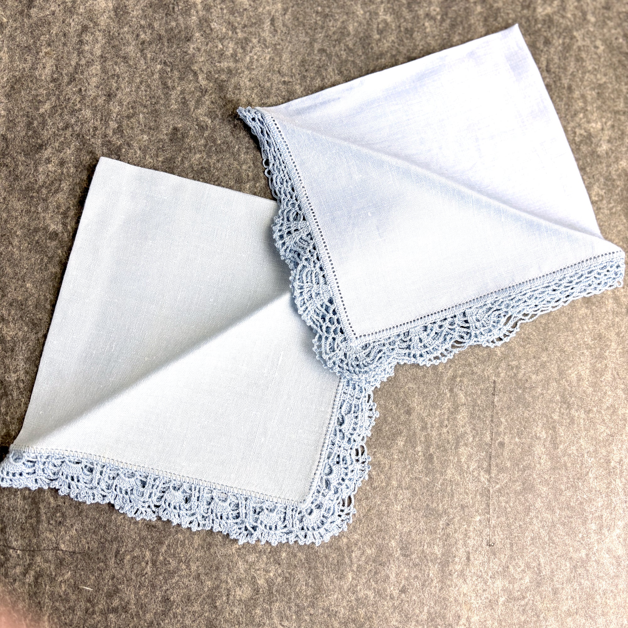 10 Vintage blue linen hankies – embroidered & crochet trim - wedding, shower, tea party favors