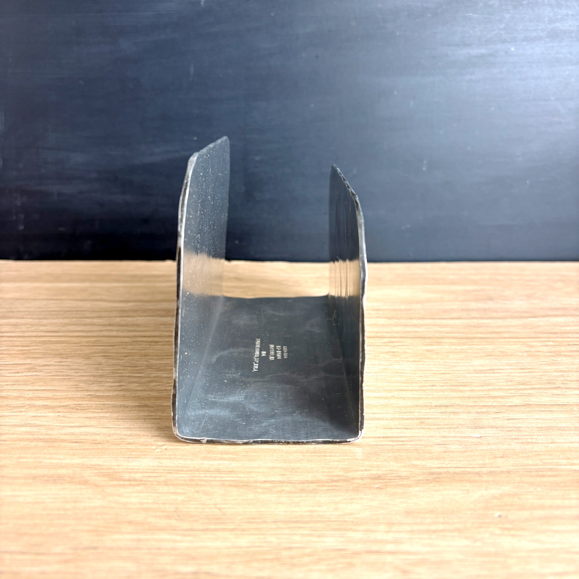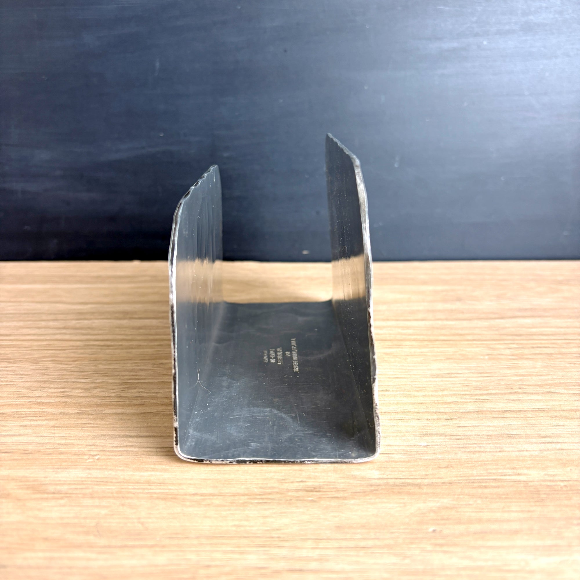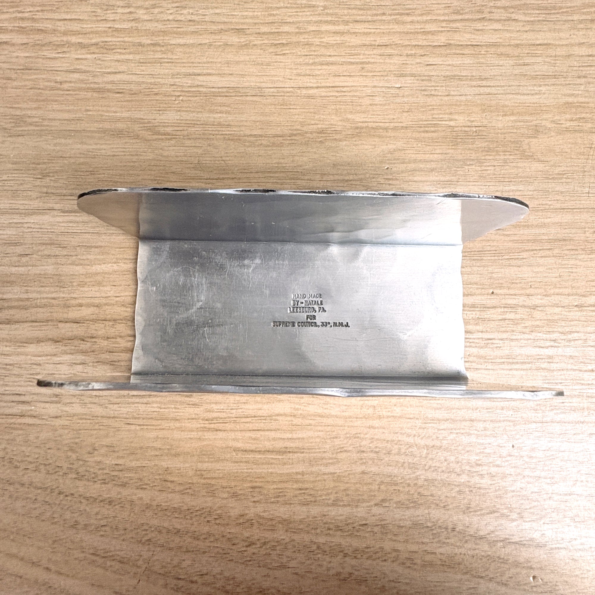 Hammered aluminum letter holder with the emblem of the Scottish Rite of Freemasonry, 33rd degree - a double headed eagle with a triangle containing the number 33 and the Latin motto "Deus Meumque Jus" on the banner below. Hand made by Natale, Leesburg, PA for the Supreme Council 33rd° N.M.J.
