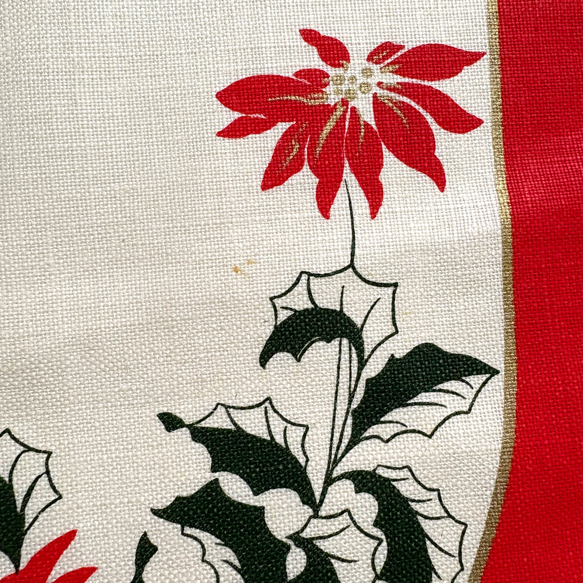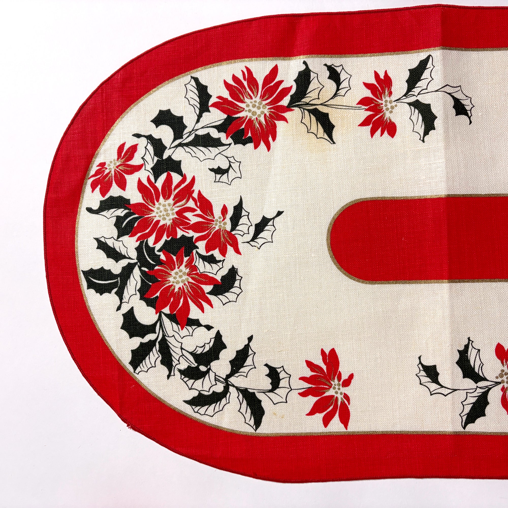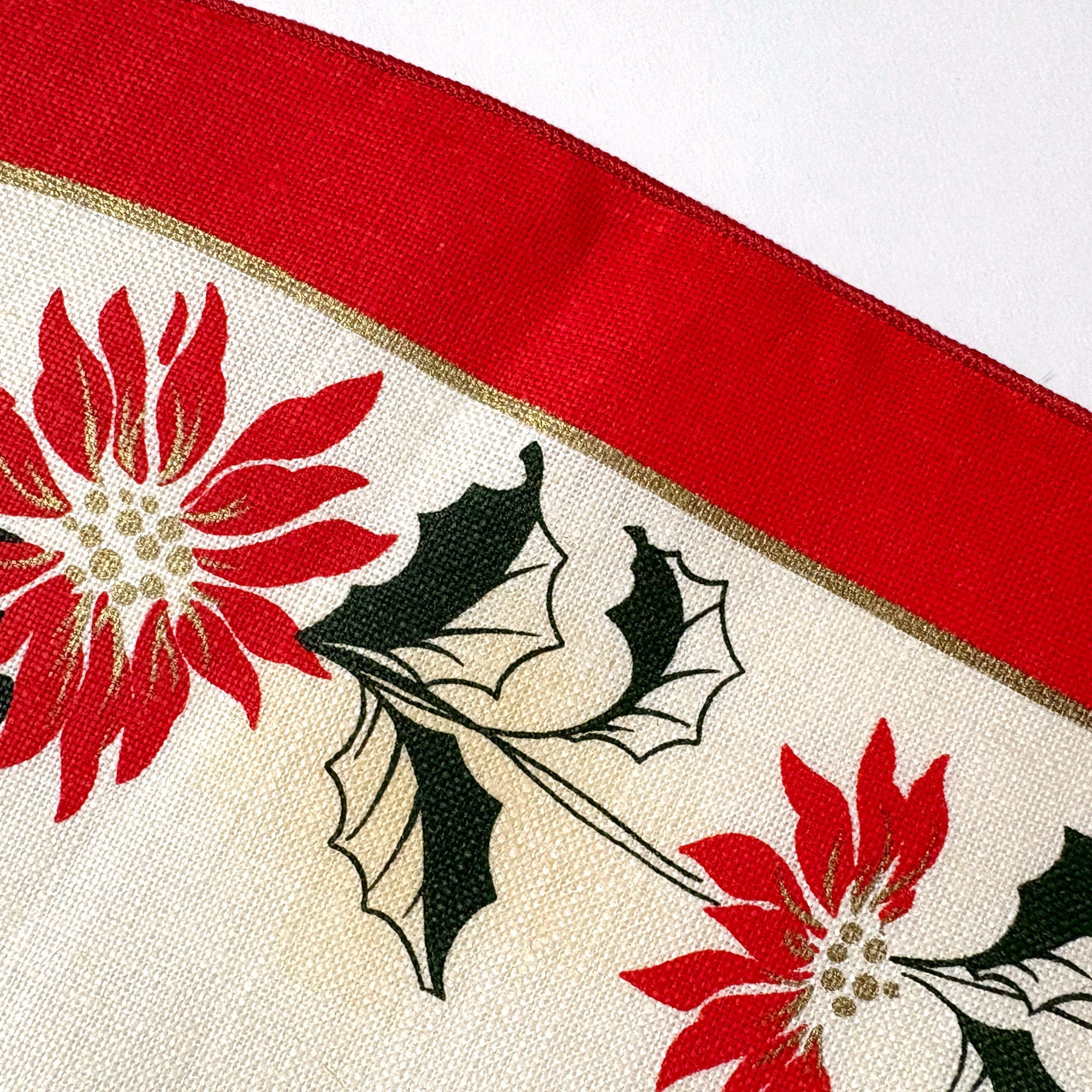 Italian linen Christmas table runner - poinsettia - 1970s vintage