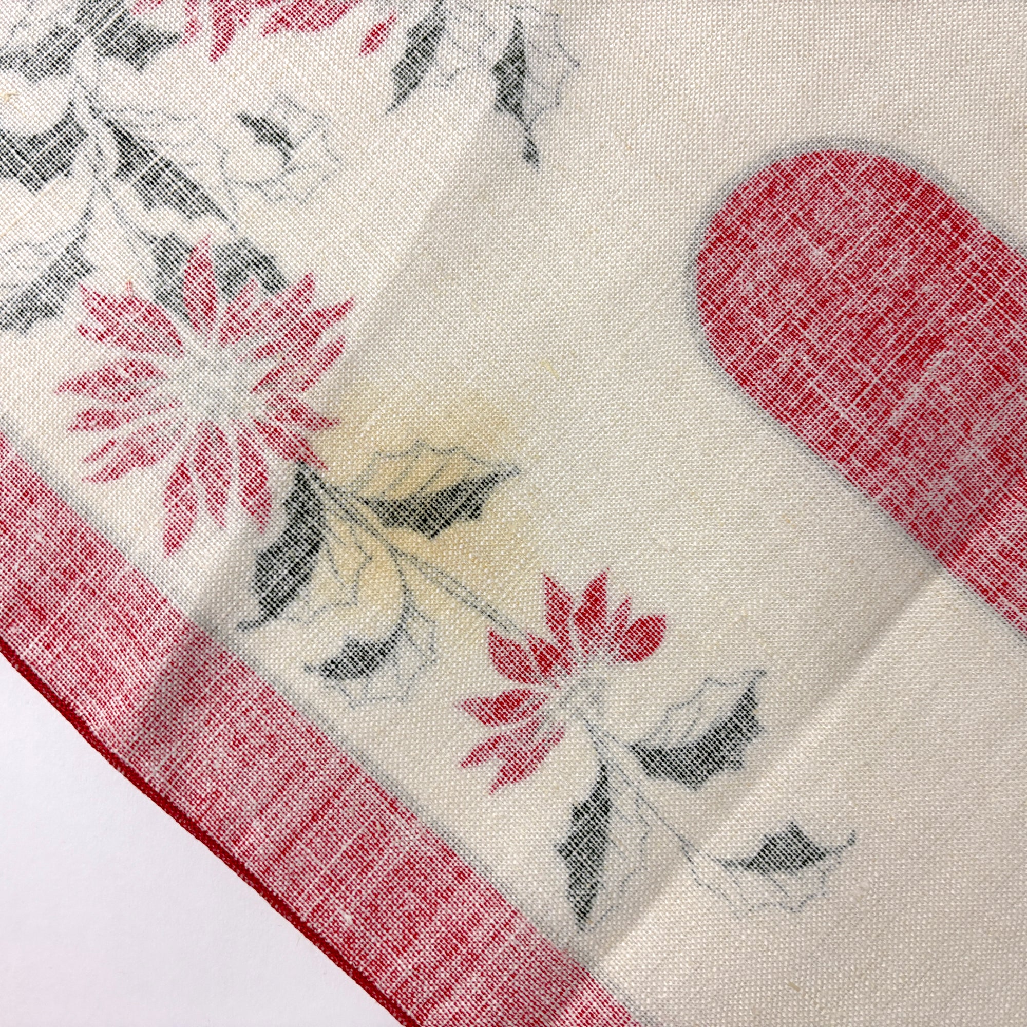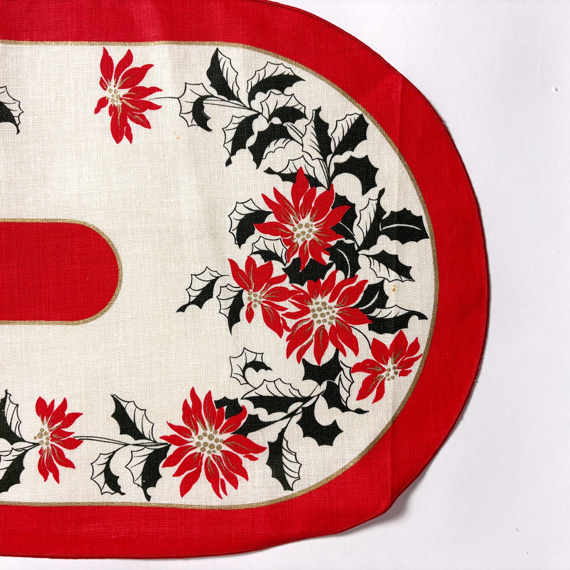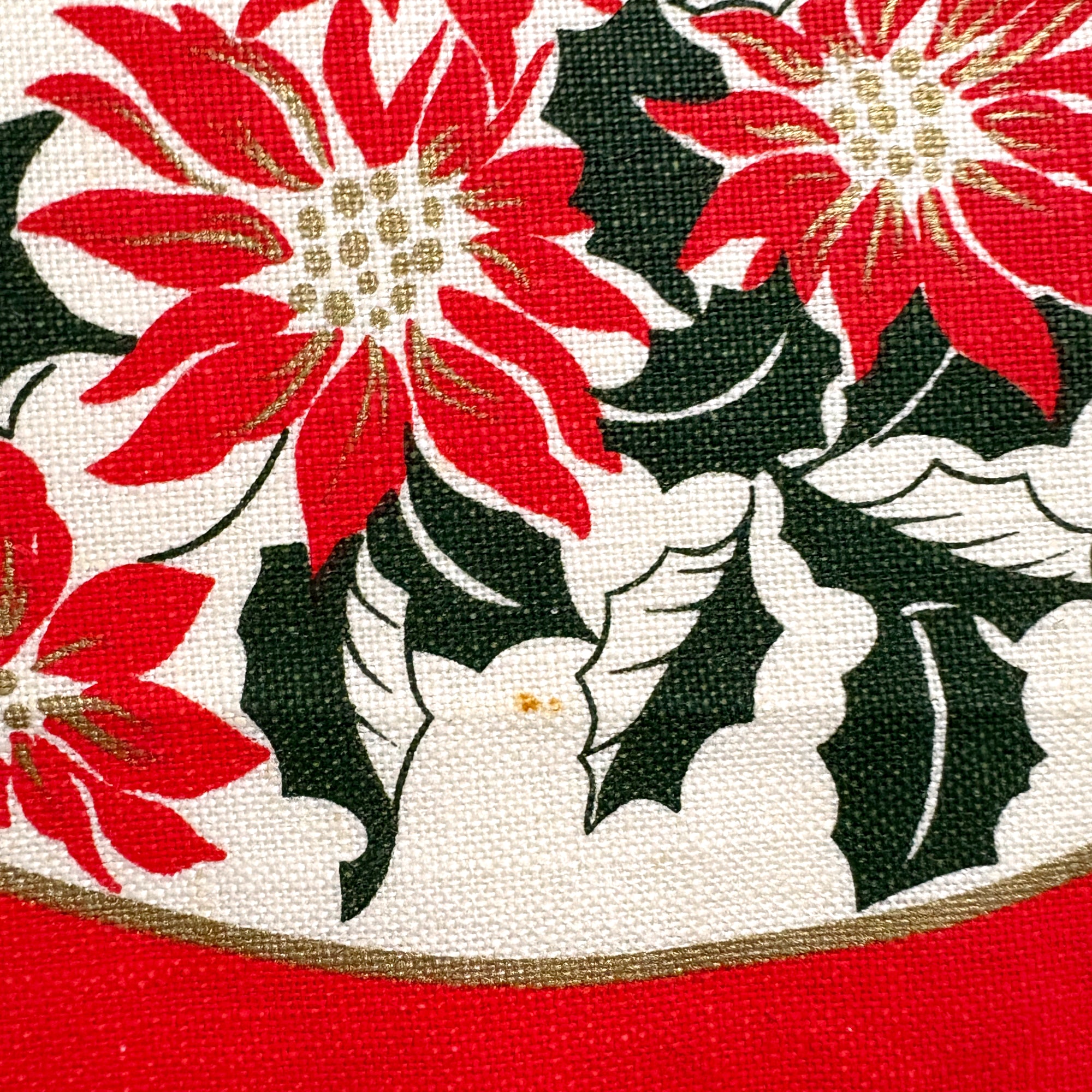 Italian linen Christmas table runner - poinsettia - 1970s vintage
