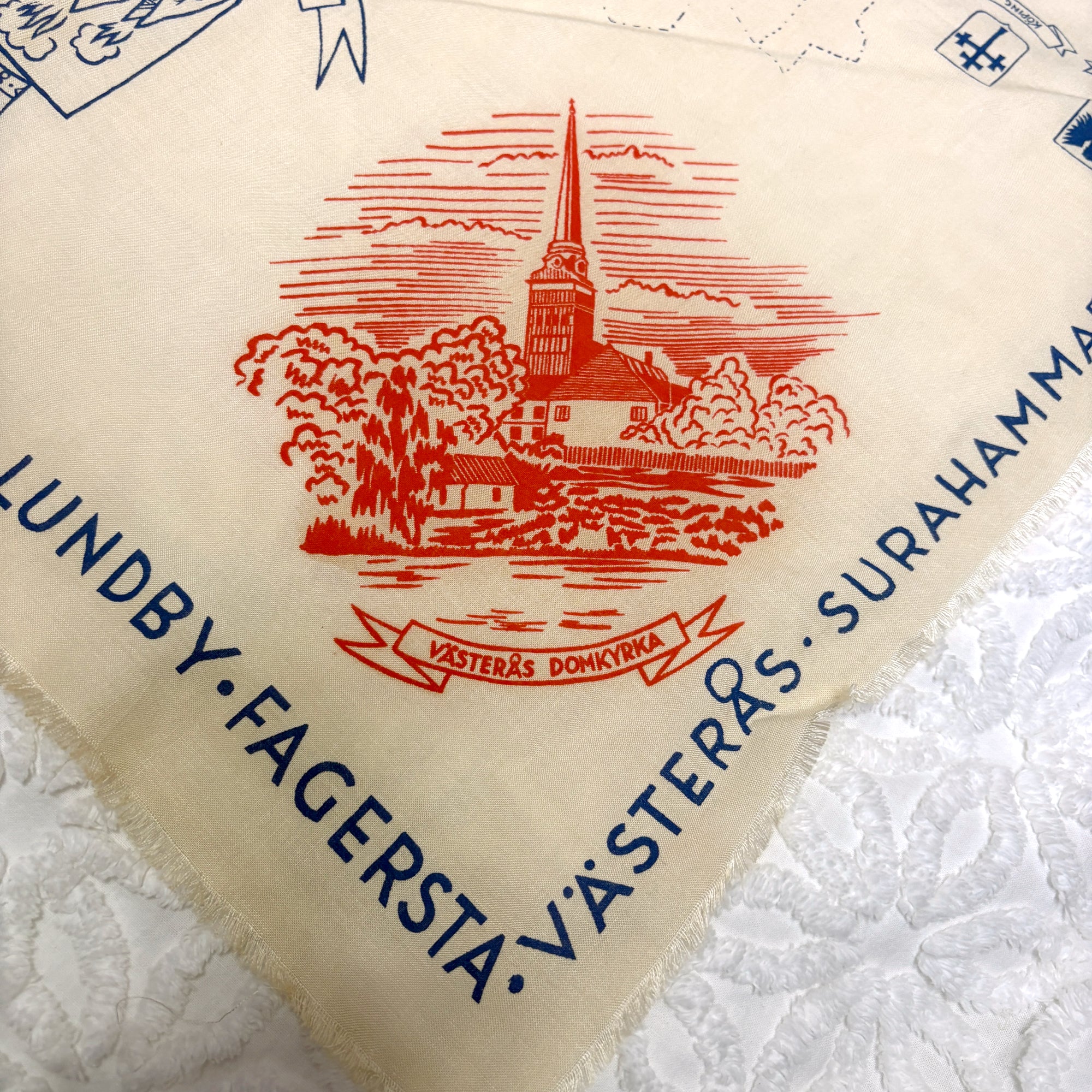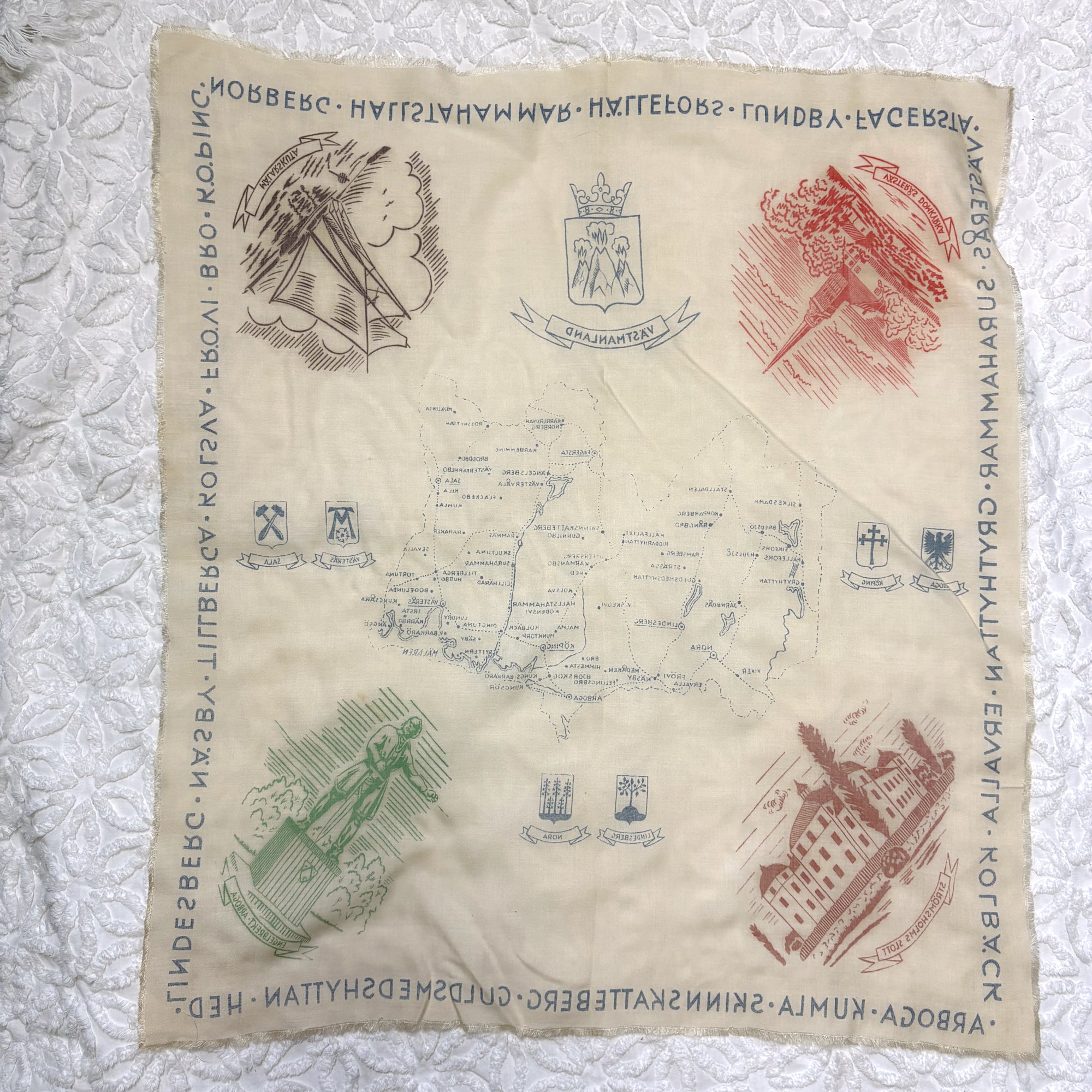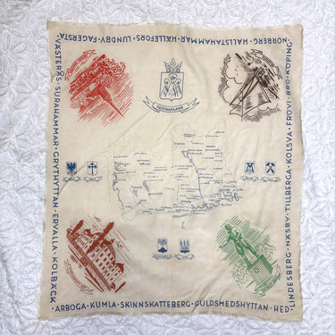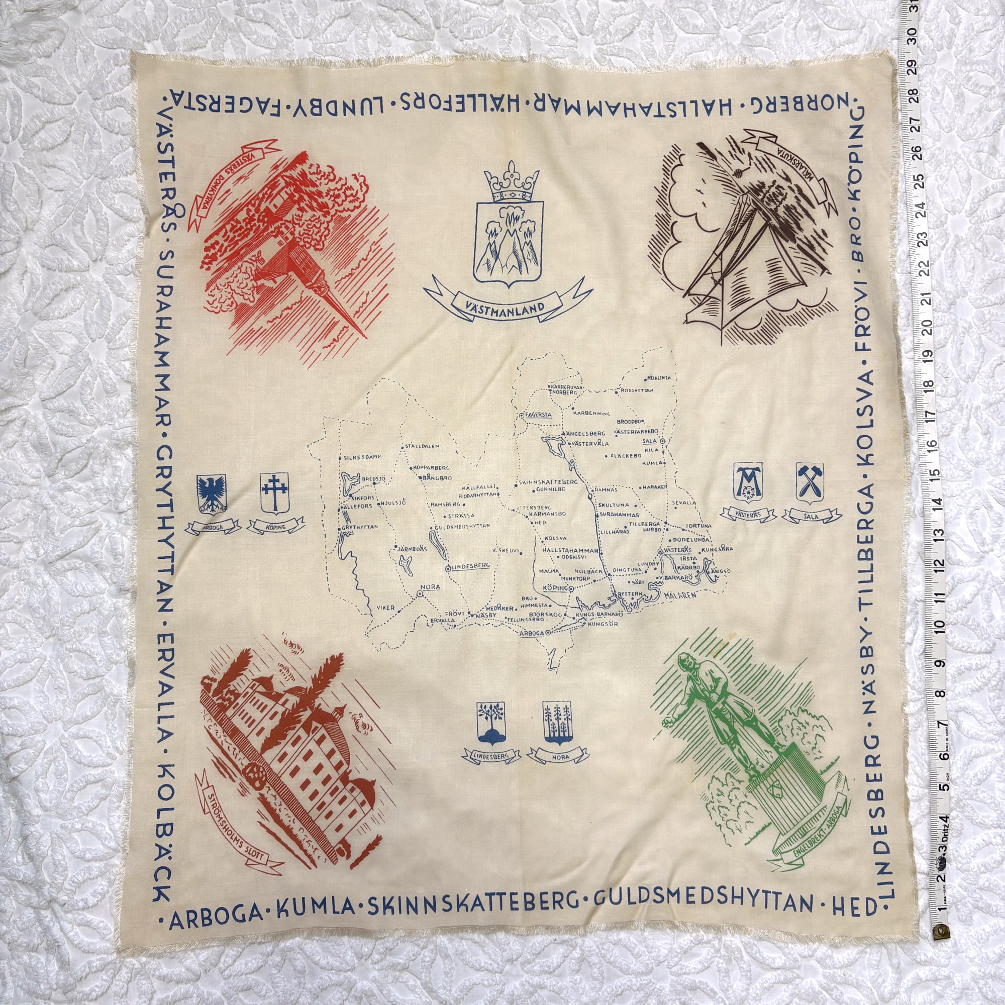 Västmanland, Sweden souvenir scarf or table square - vintage travel souvenir