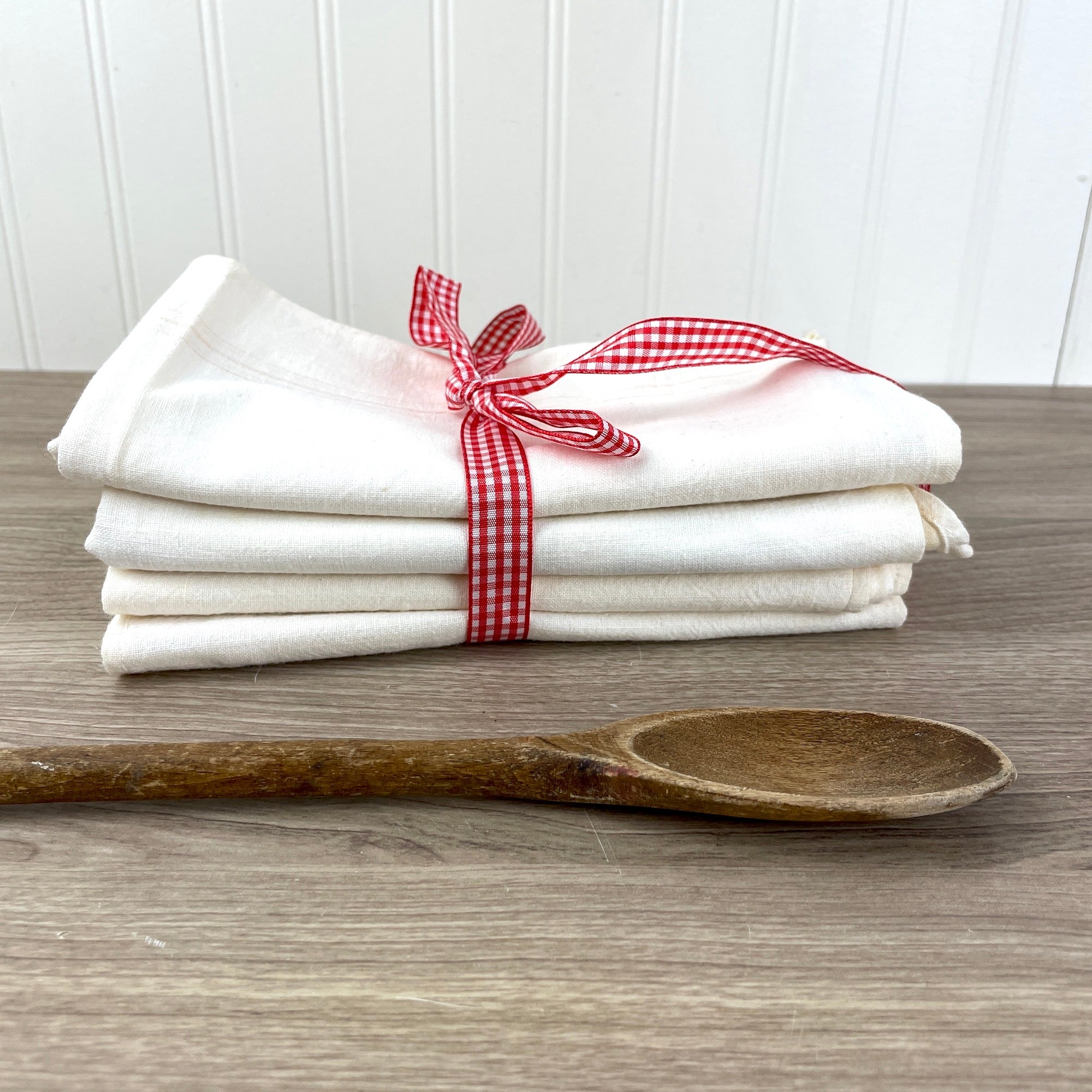 Sugar sack dish towels - set of 4 - 1940s vintage