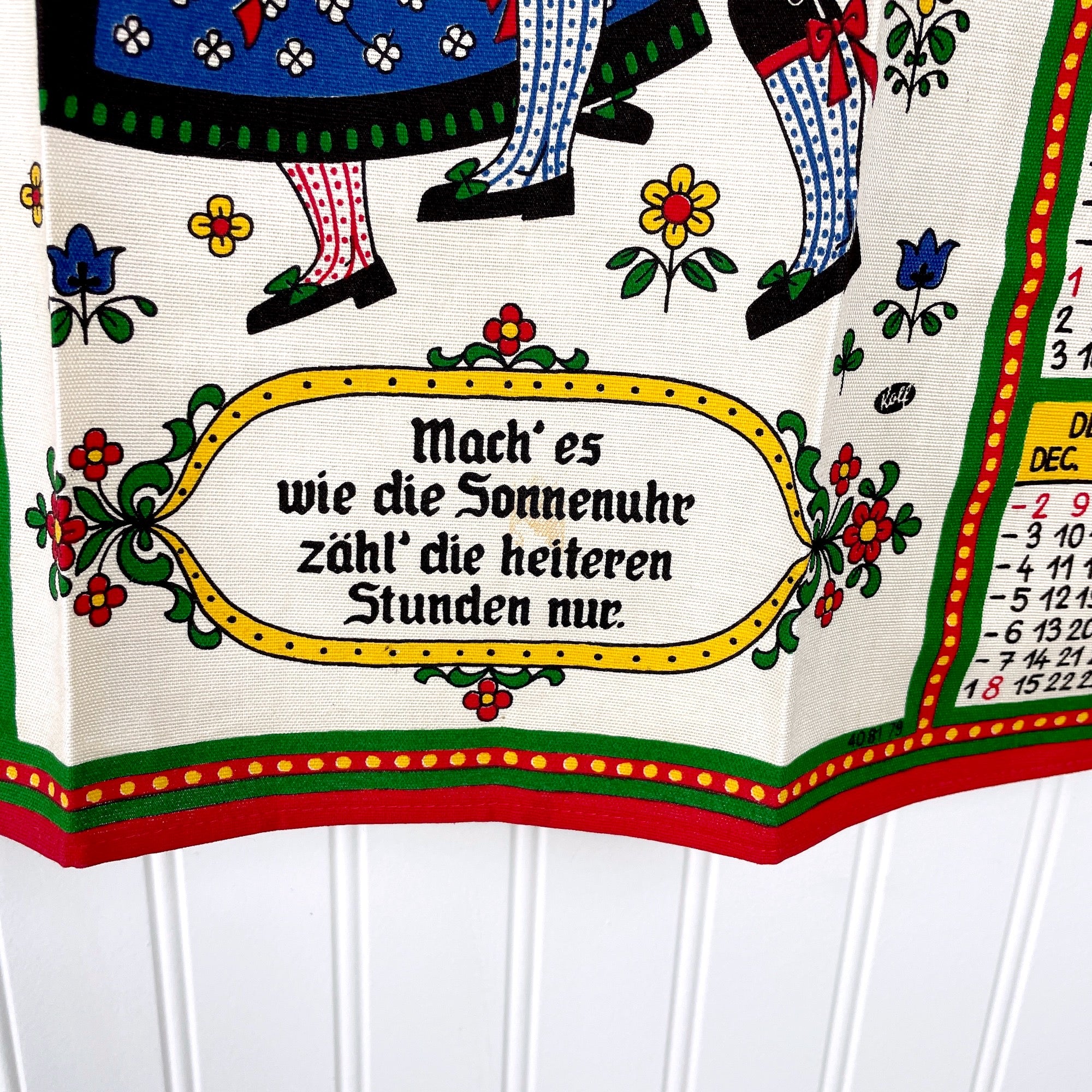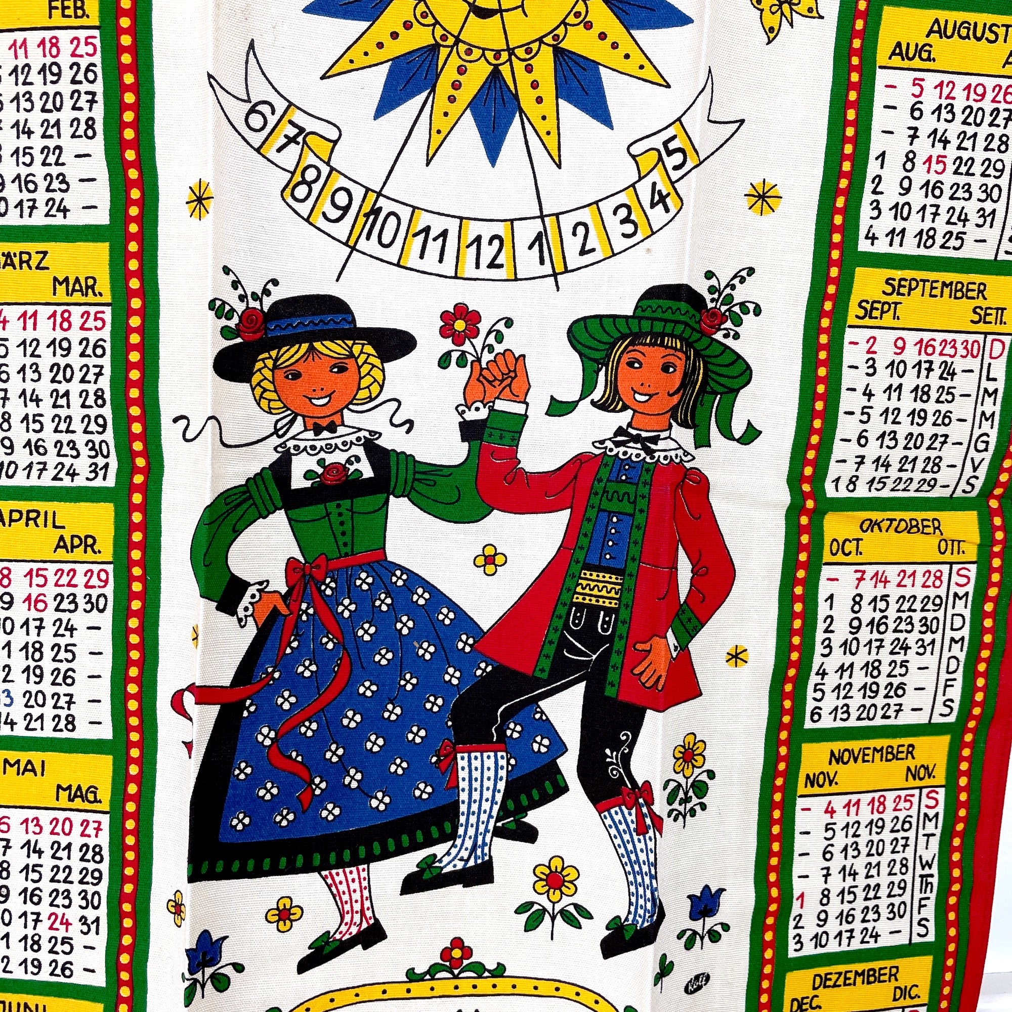 Kolf Austrian tea towel - 1979 calendar with sundial