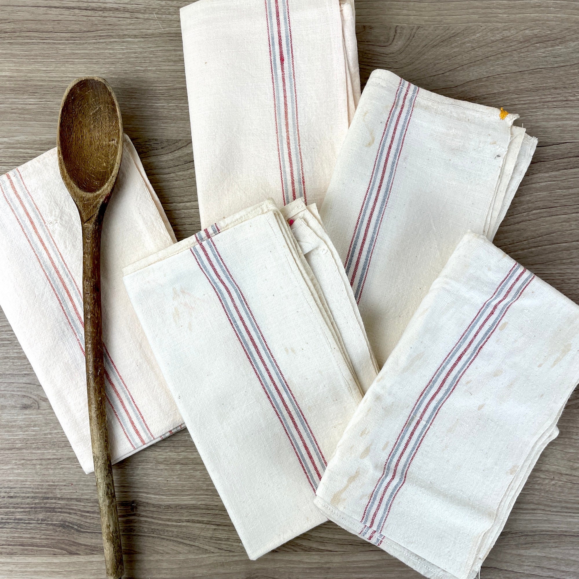 Sugar sack dish towels - set of 5 - 1940s vintage