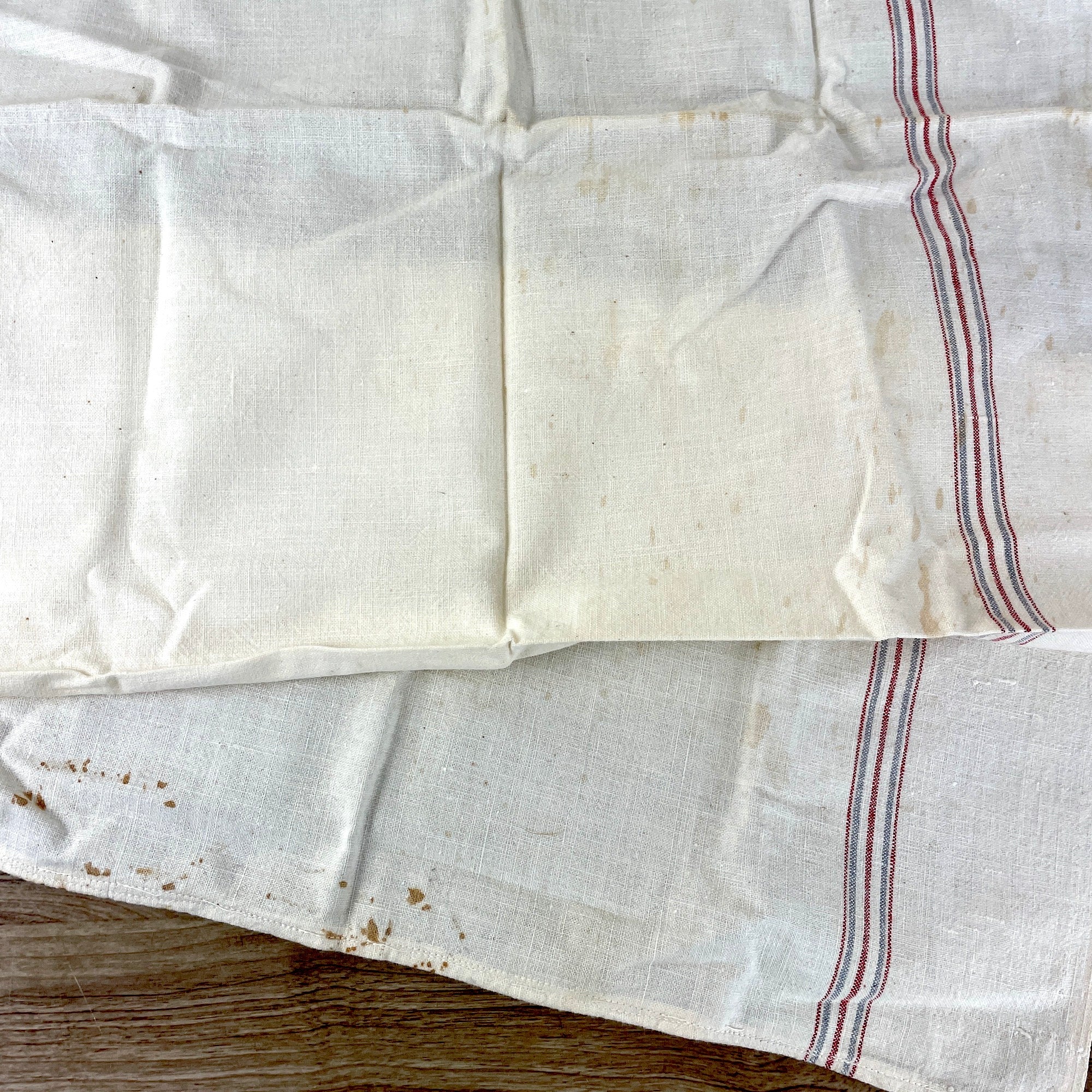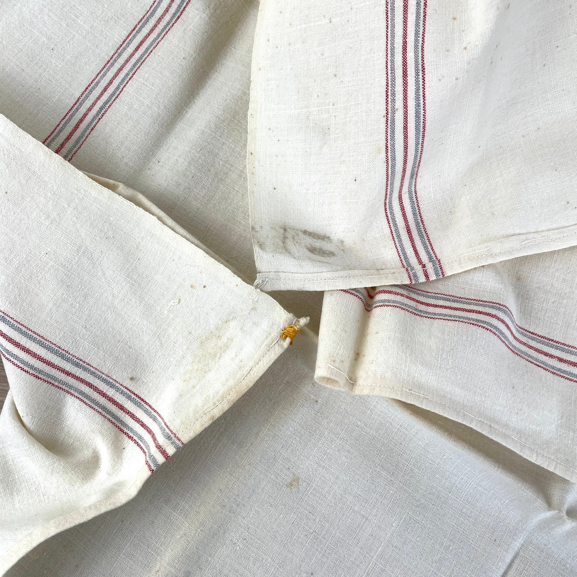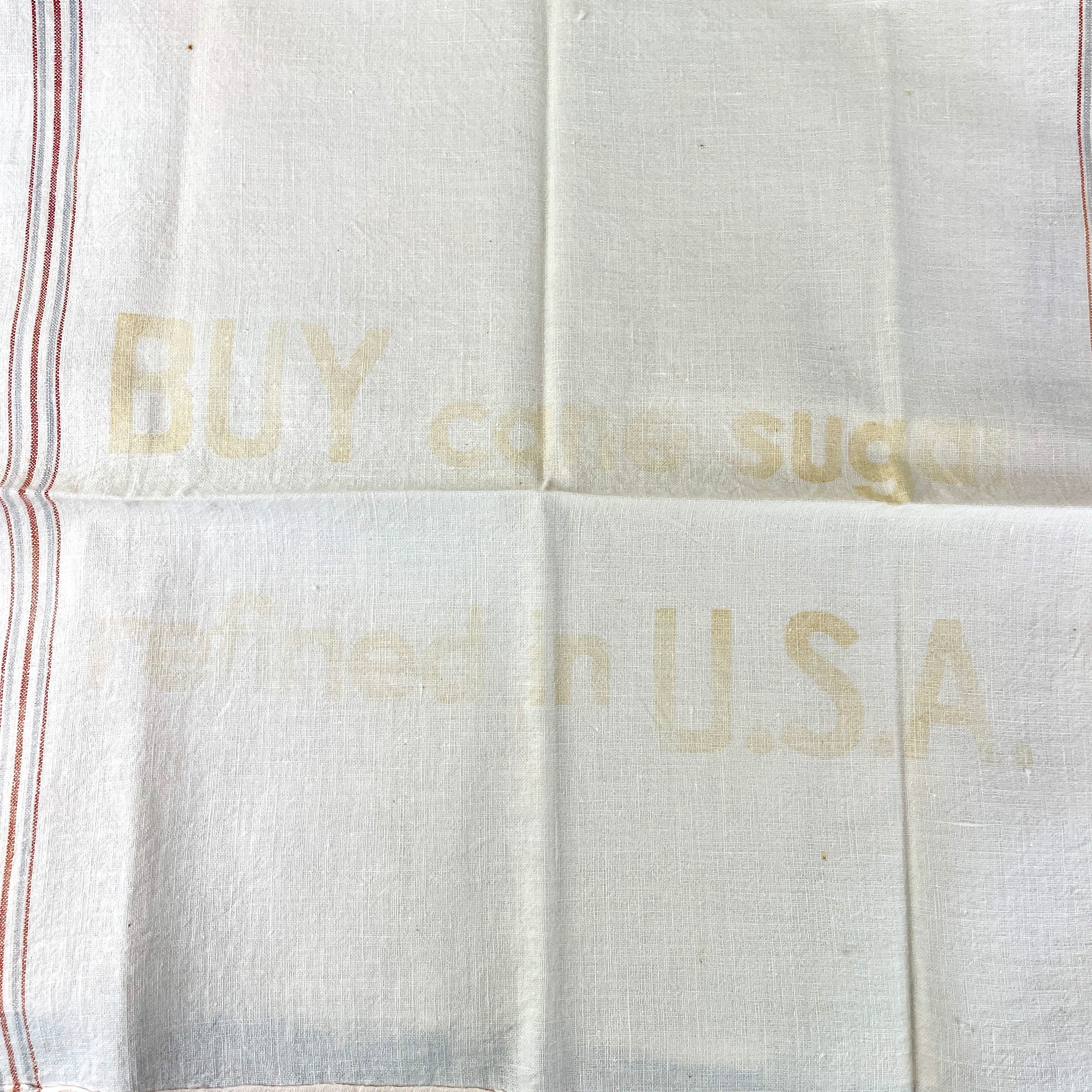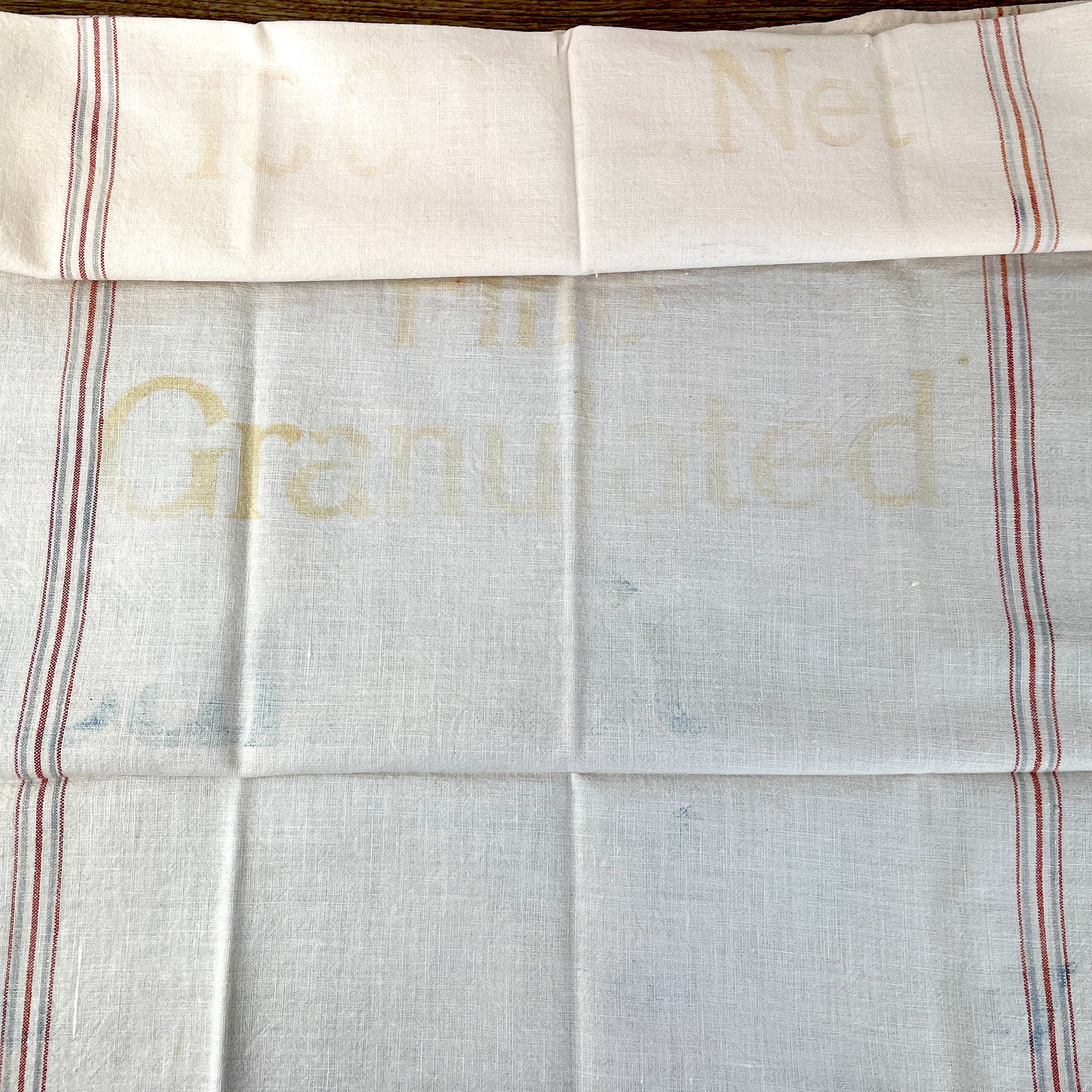 Set of 5 home sewn dish towels made from sugar sacks back in the 1940s. Some have faint images of the original printed sugar label. These were found in the linen drawer of the triple decker in Worcester, MA where they were sewn and used. Exactly as found.