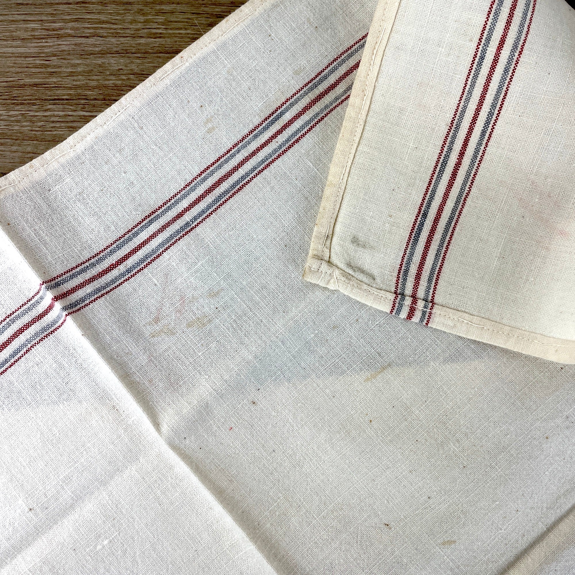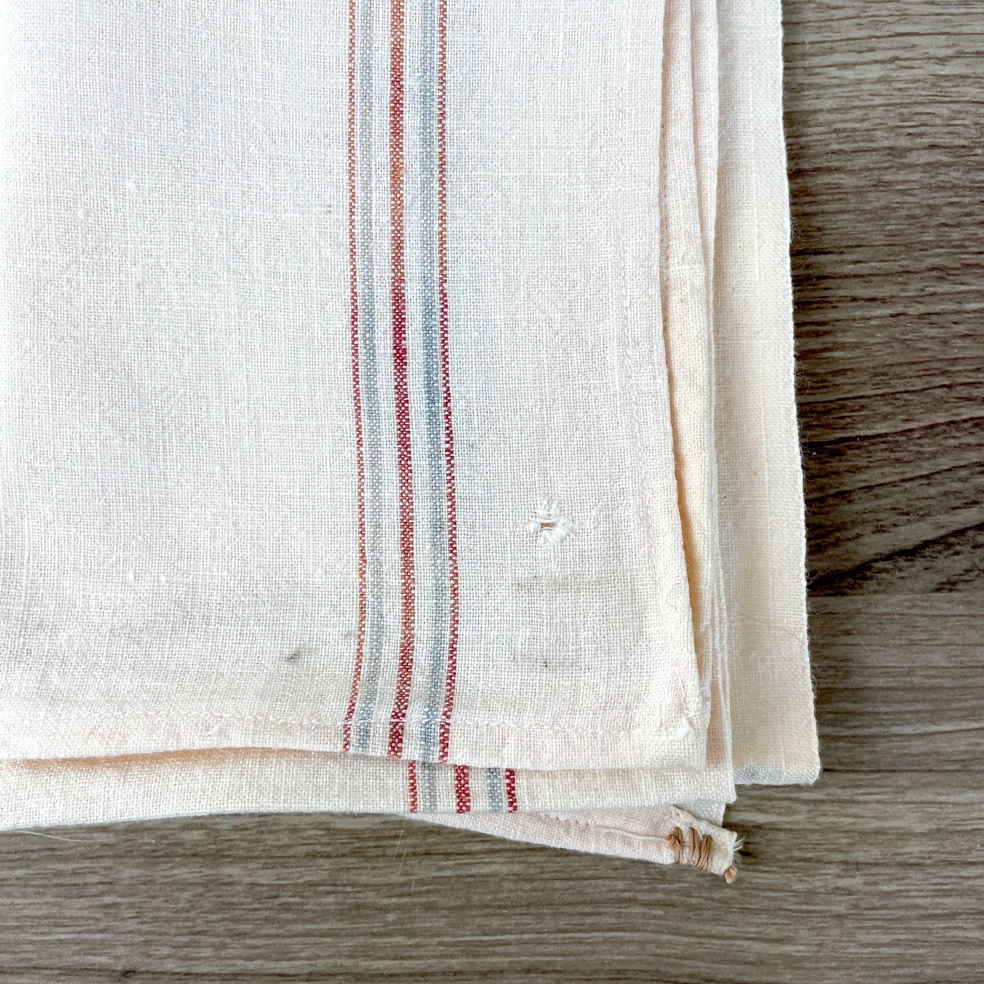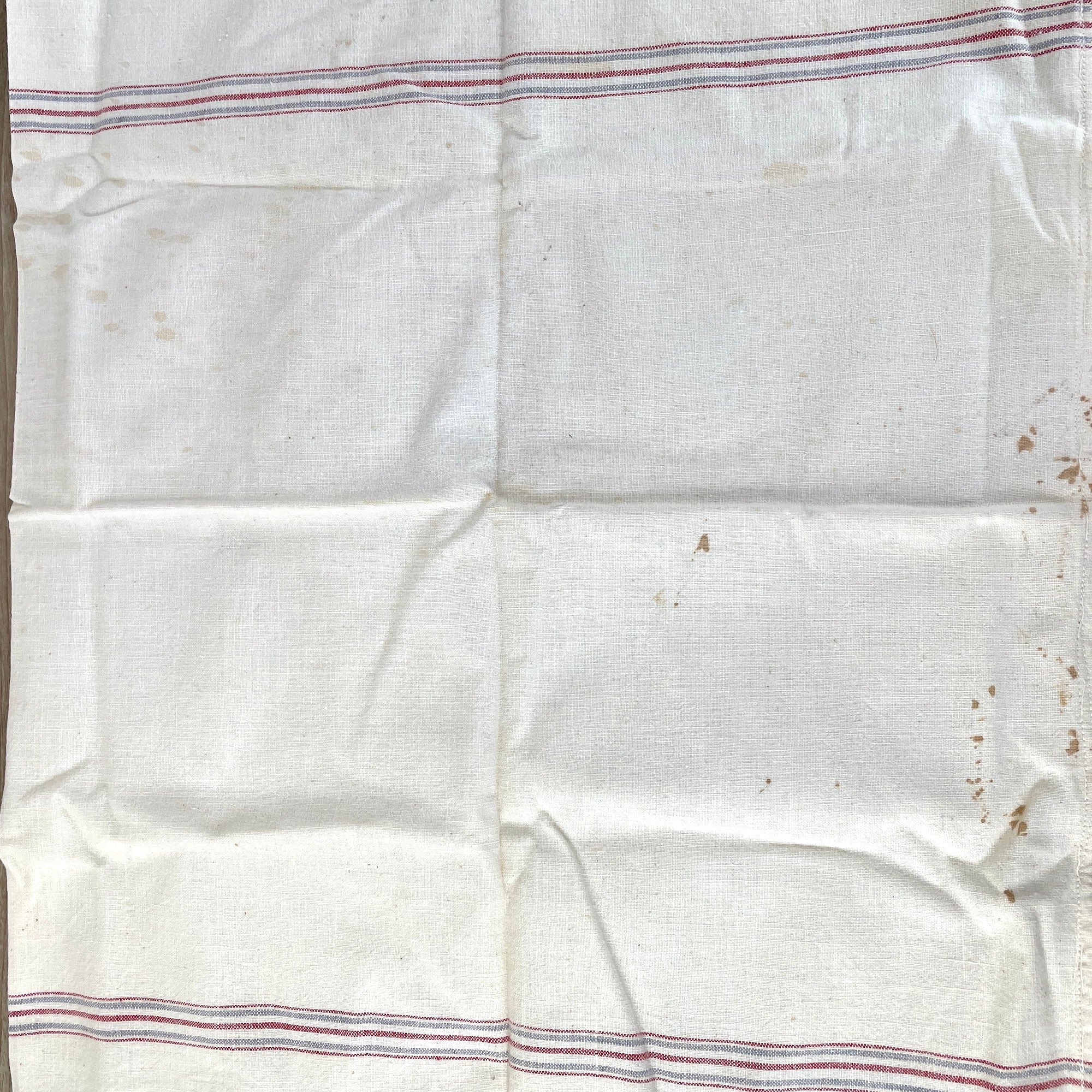 CONDITION Well used. The red and gray/blue have faded from laundering. Exactly as found, expect stains and wear. It's possible the stains would soak out, but we make no promises.