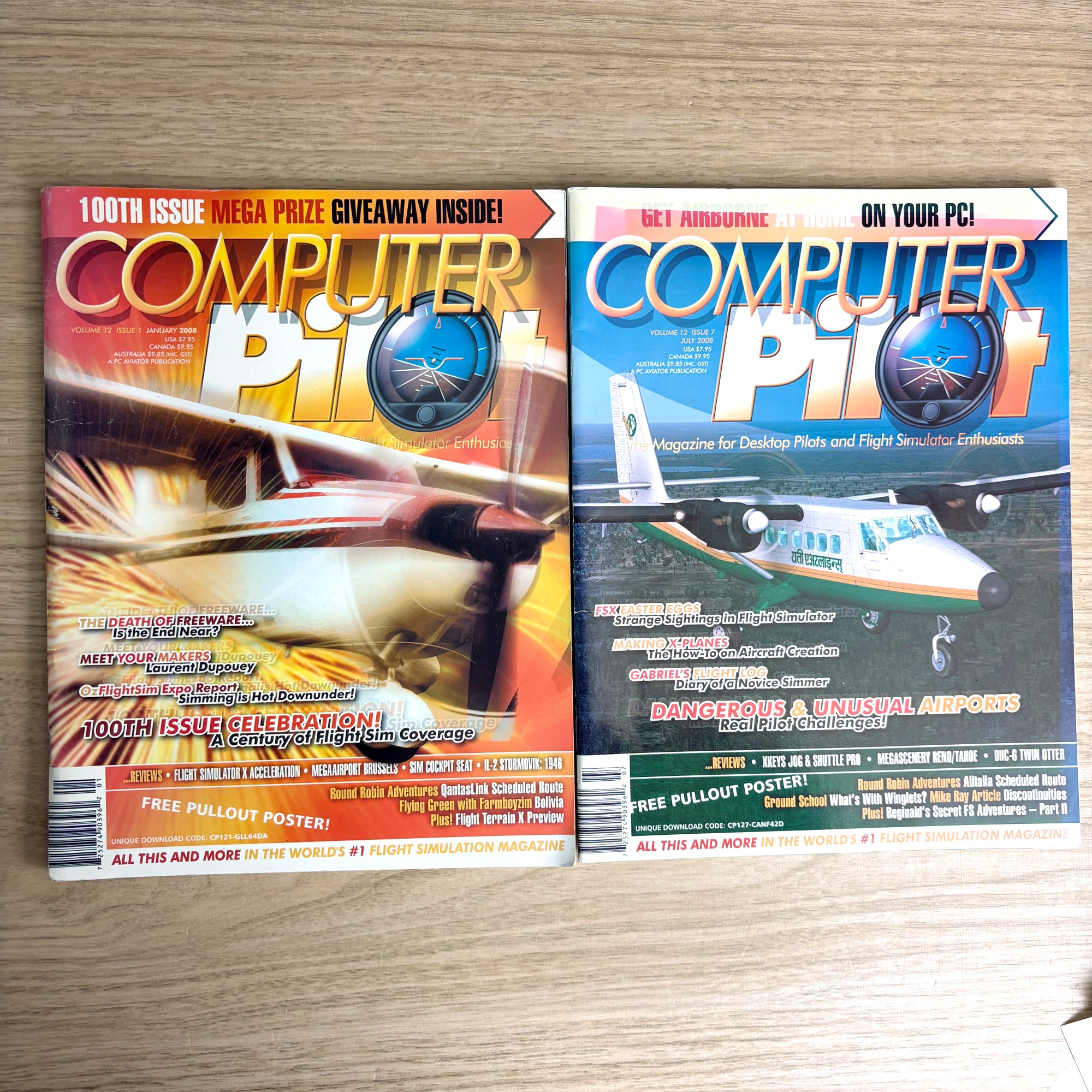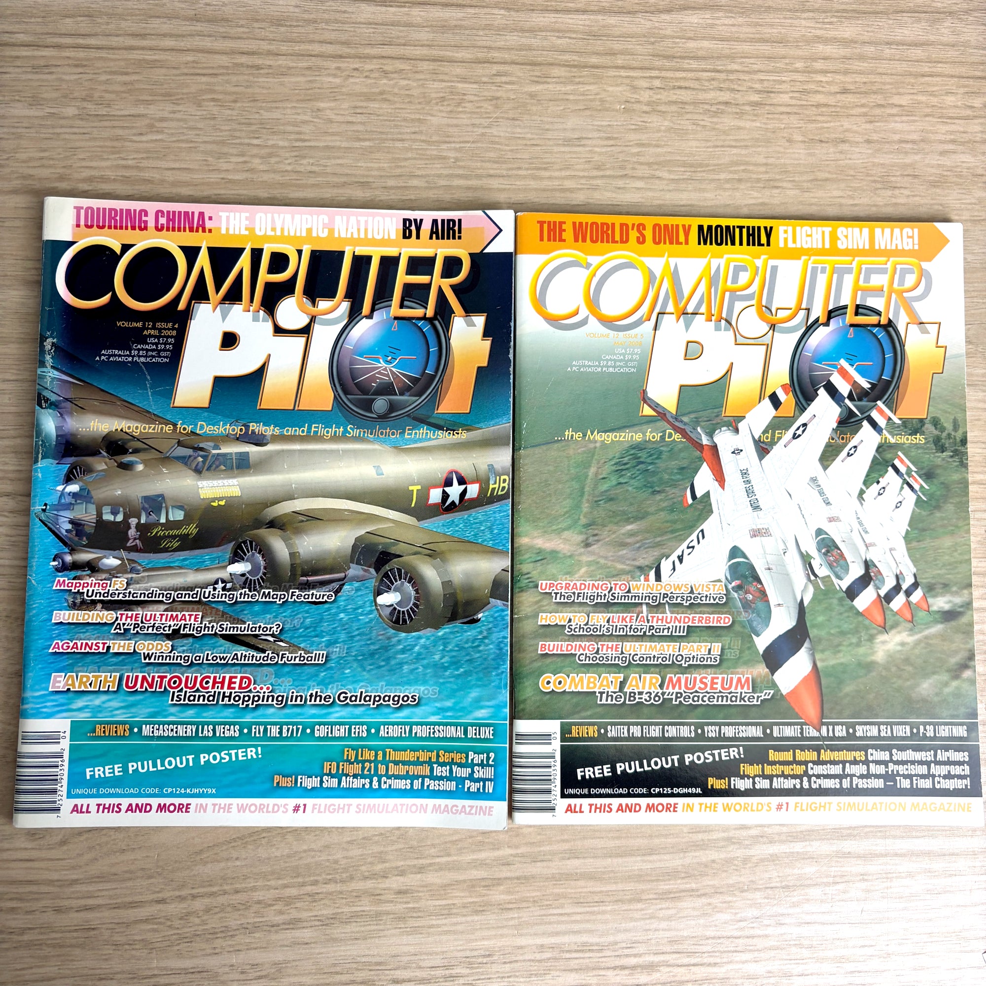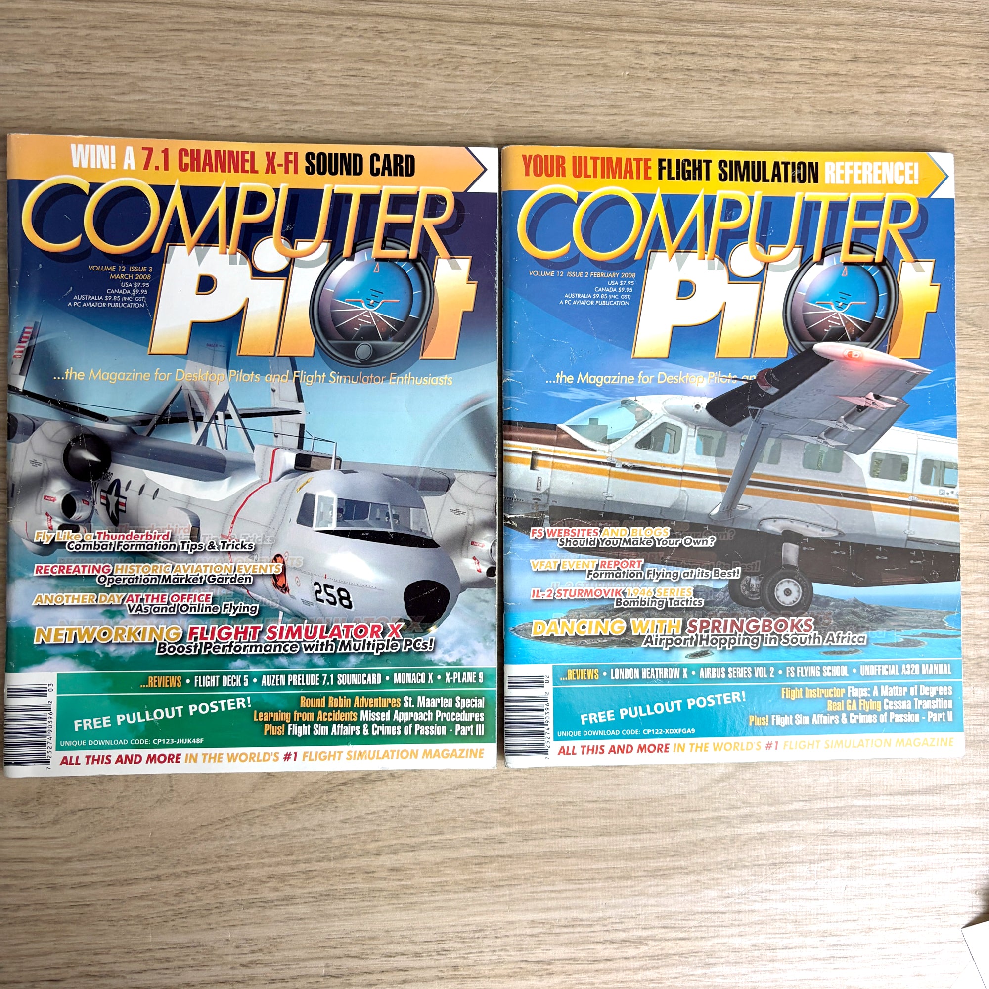 Nearly complete 2008 set of Computer Pilot Magazine, The Magazine for Desktop Pilots and Flight Simulator Enthusiasts. Published by PC Aviator – The Flight Simulation Company. This lot includes 11 of the 12 issues from Volume 12, 2008, the October issue is missing. Each issue is packed with flight sim reviews, tutorials, scenery and aircraft add-on coverage, and aviation simulation news.