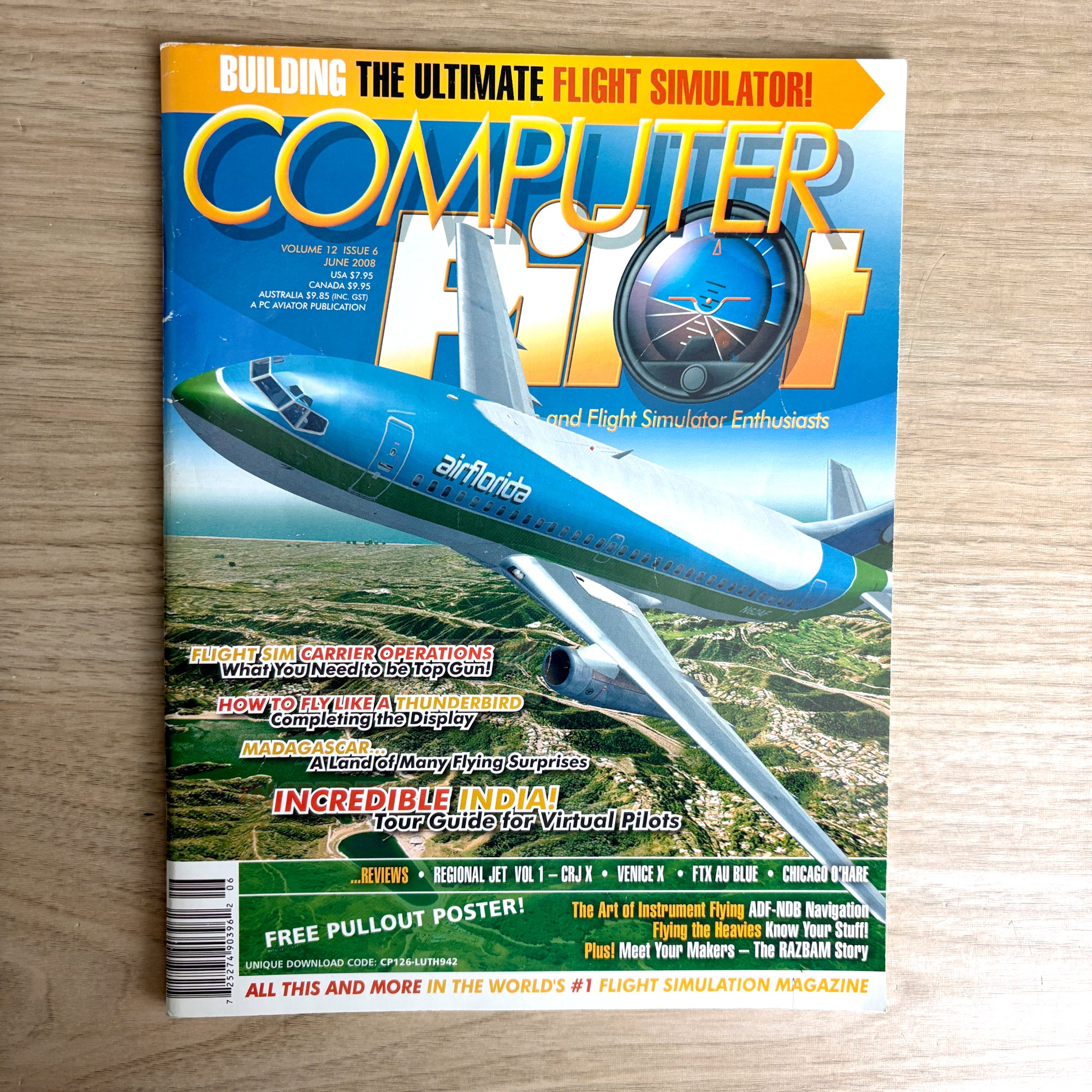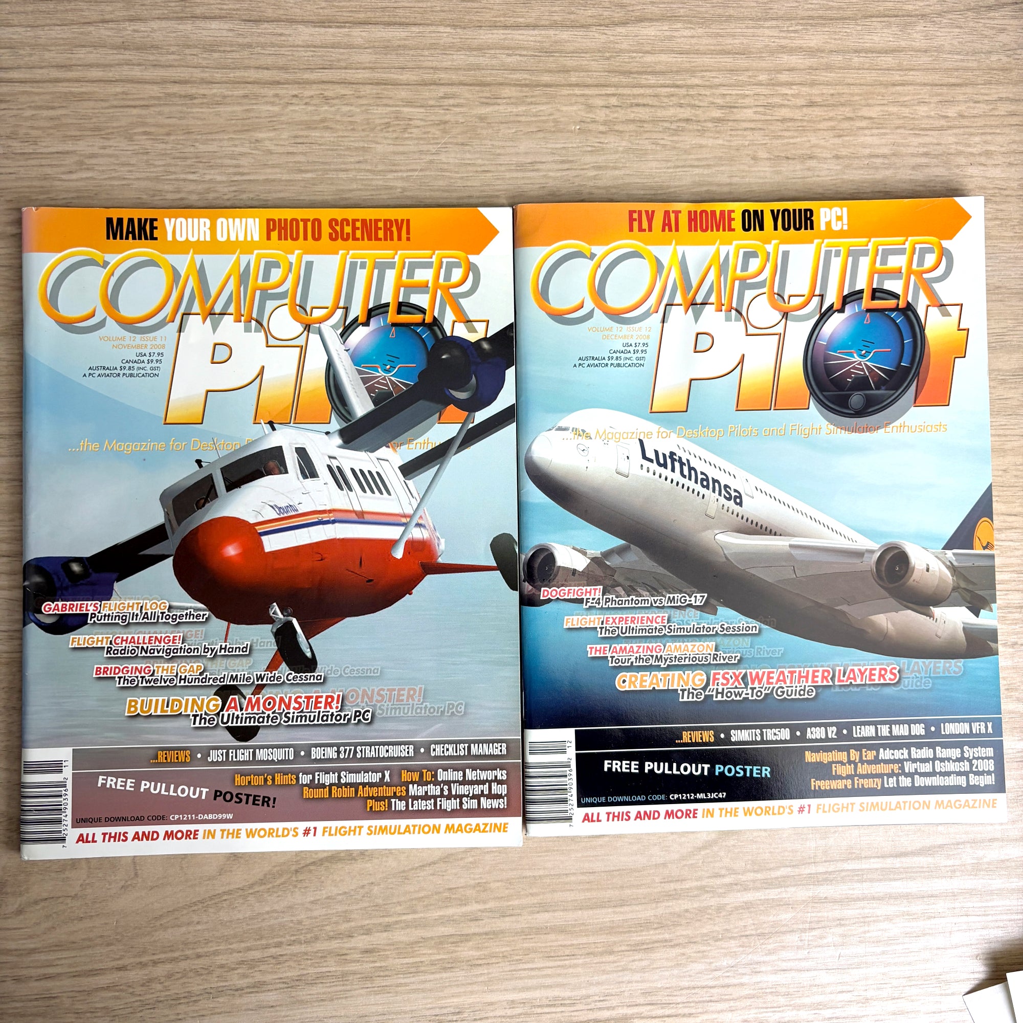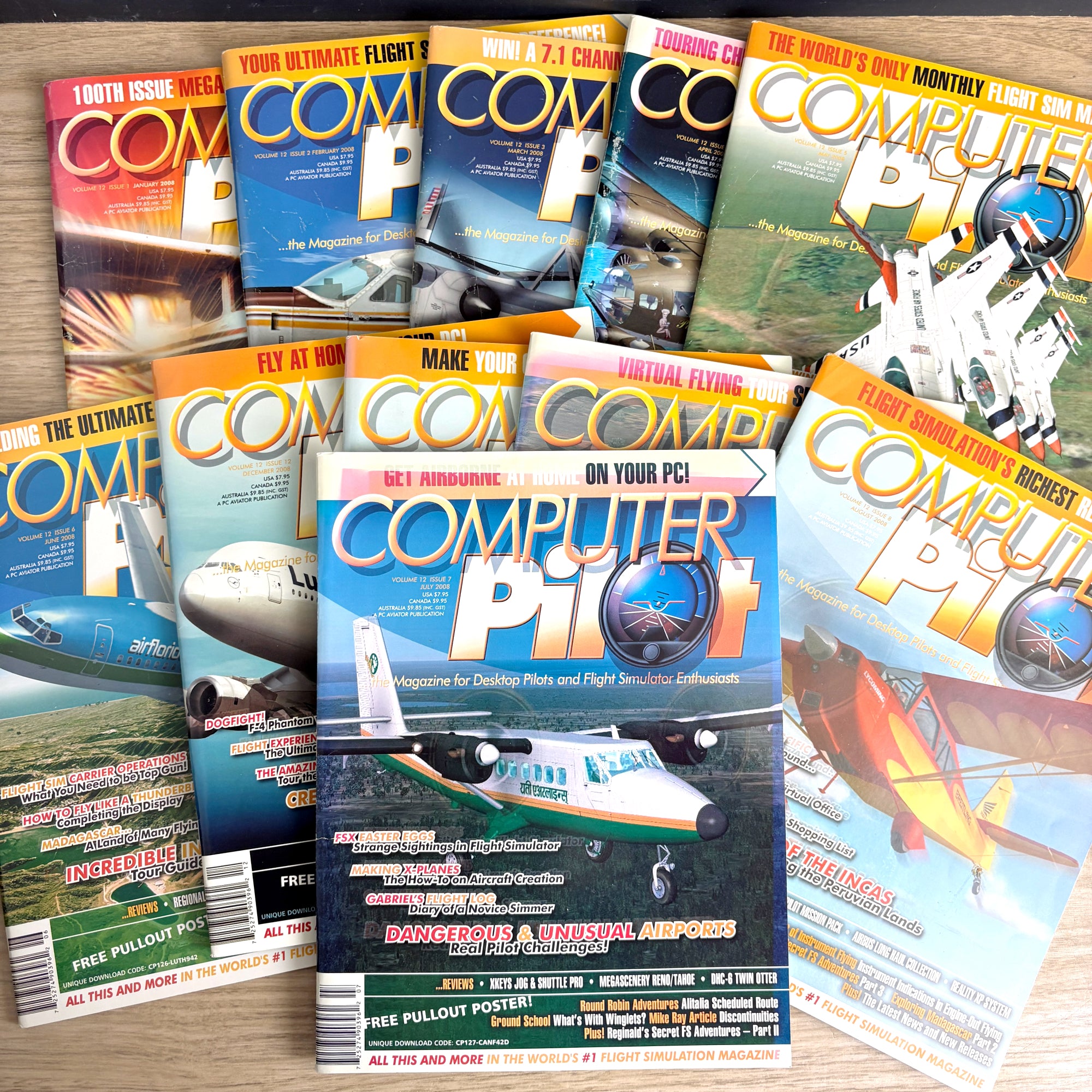 Nearly complete 2008 set of Computer Pilot Magazine, The Magazine for Desktop Pilots and Flight Simulator Enthusiasts. Published by PC Aviator – The Flight Simulation Company. This lot includes 11 of the 12 issues from Volume 12, 2008, the October issue is missing. Each issue is packed with flight sim reviews, tutorials, scenery and aircraft add-on coverage, and aviation simulation news.