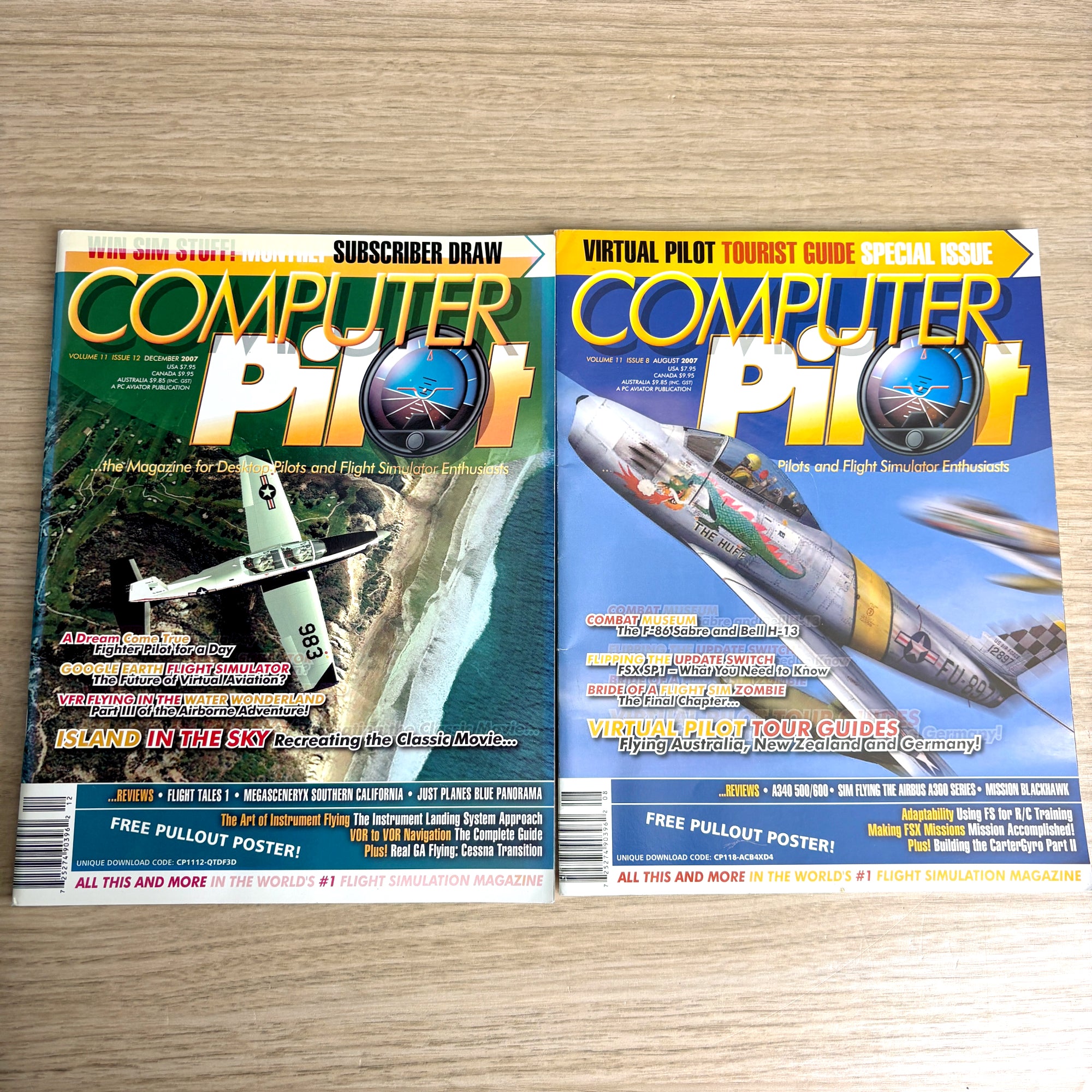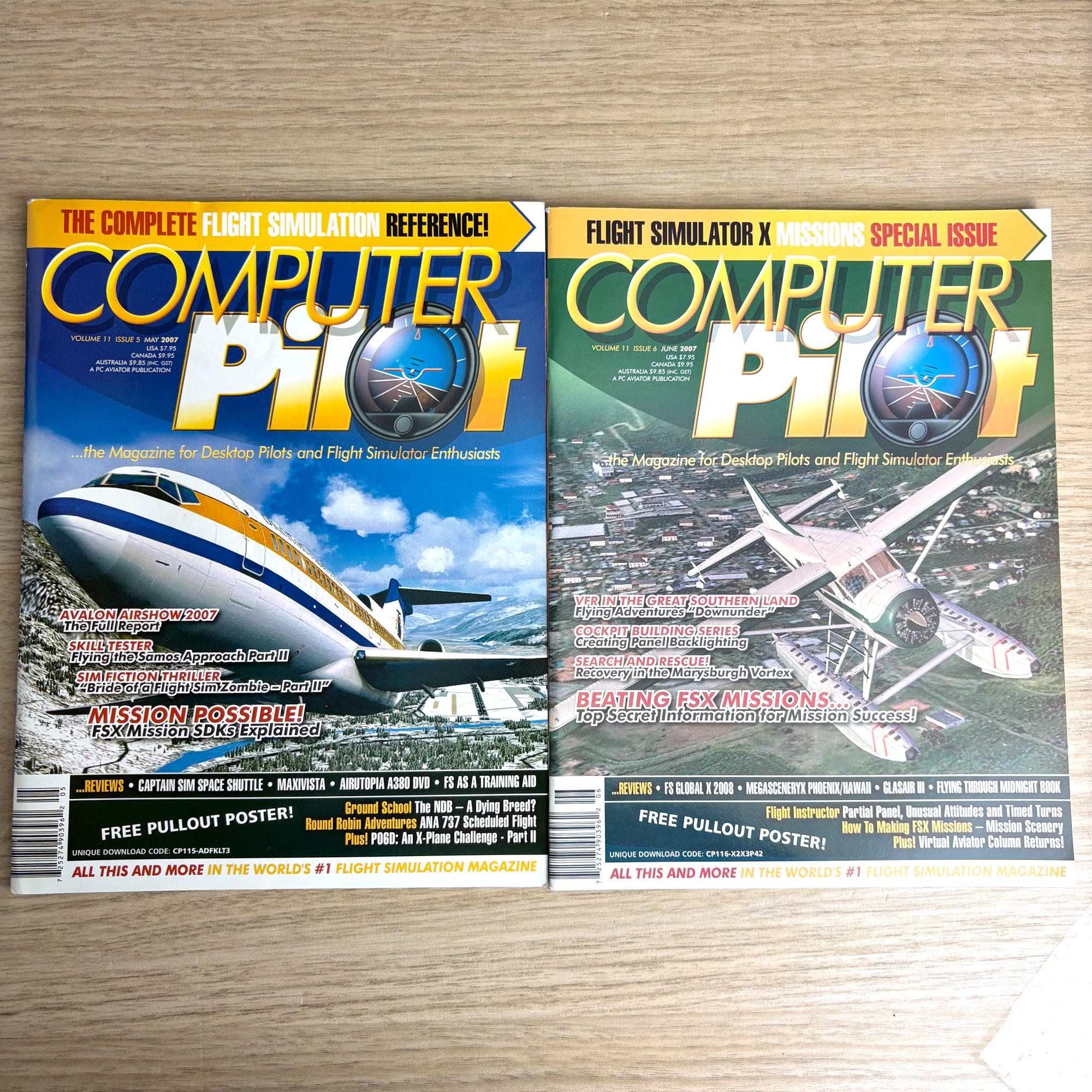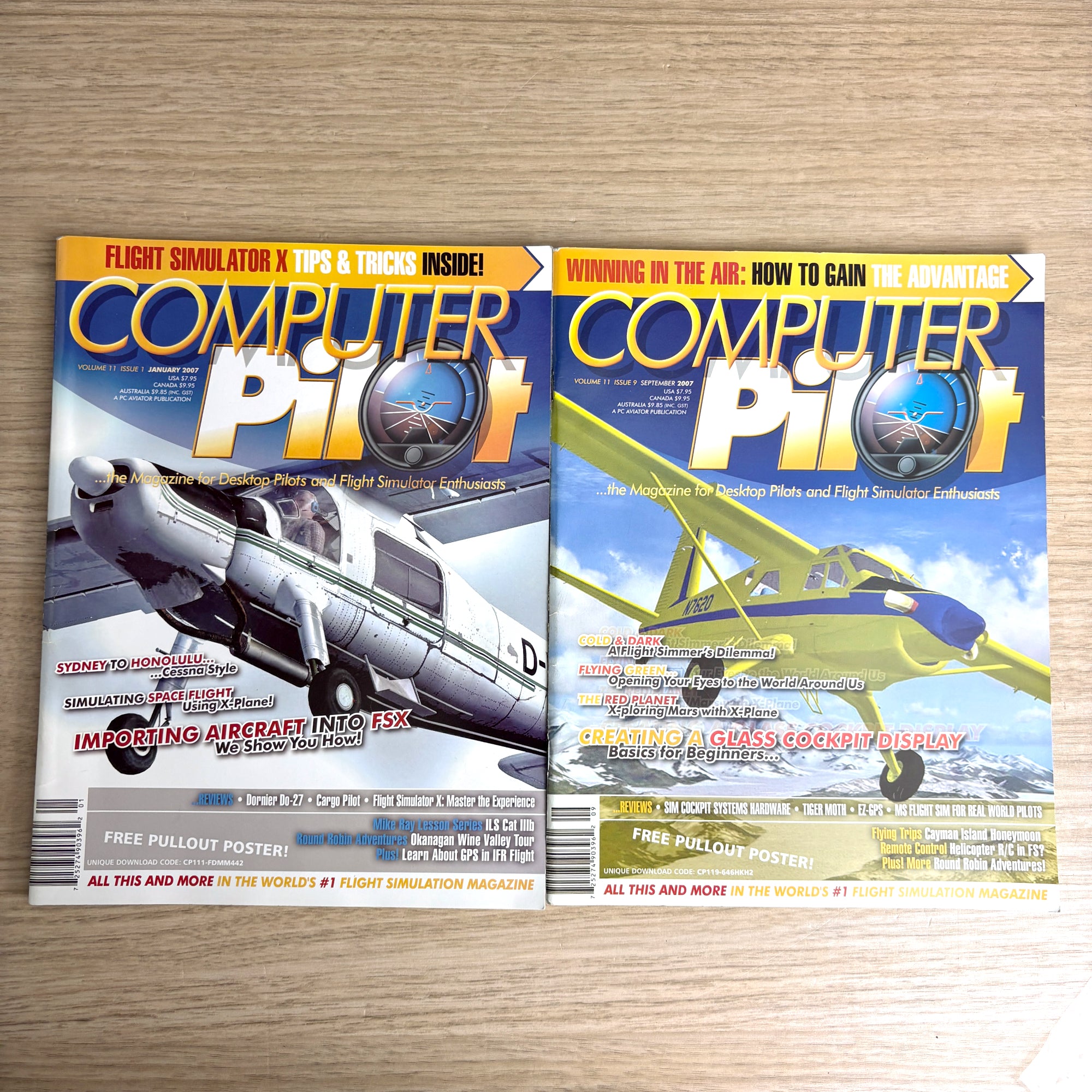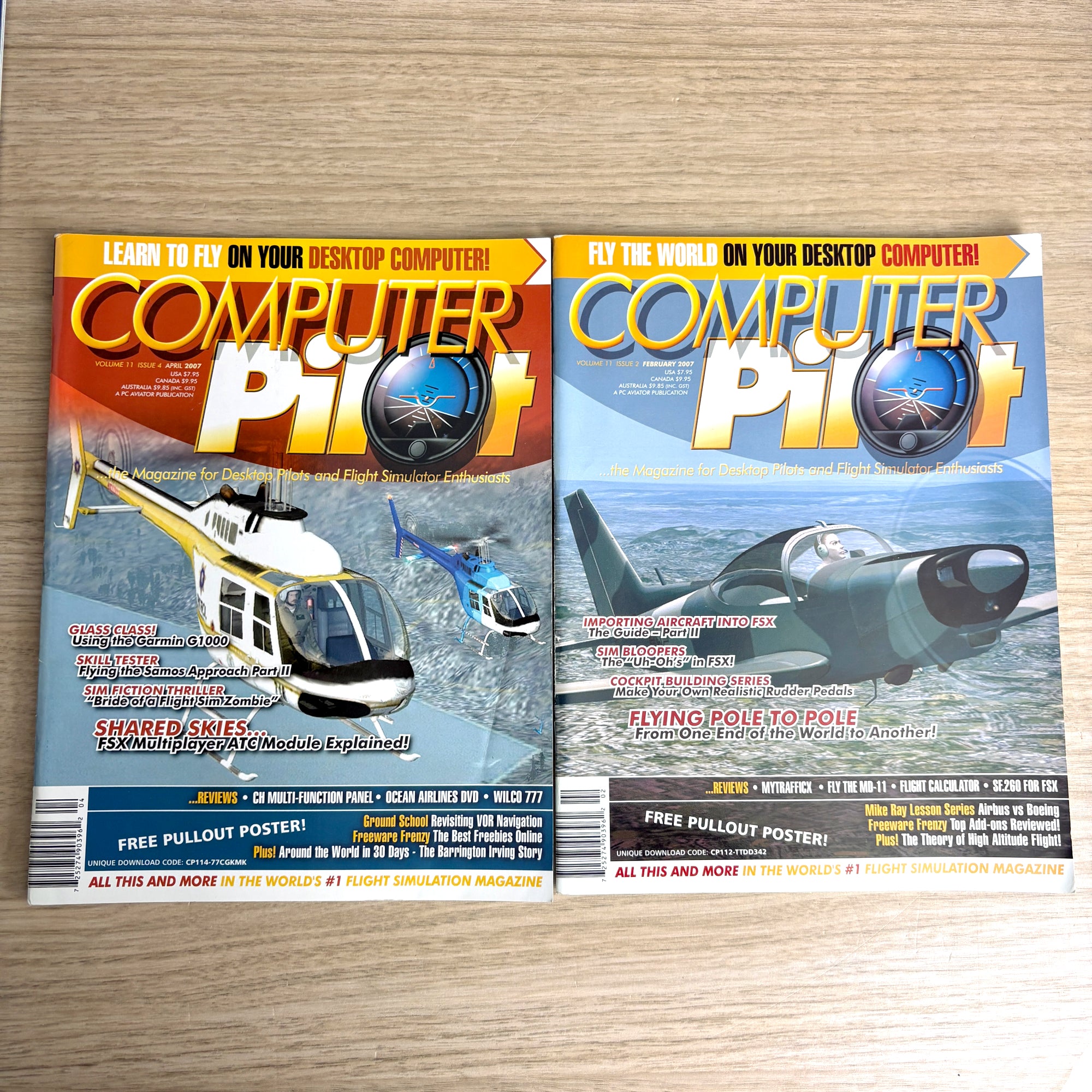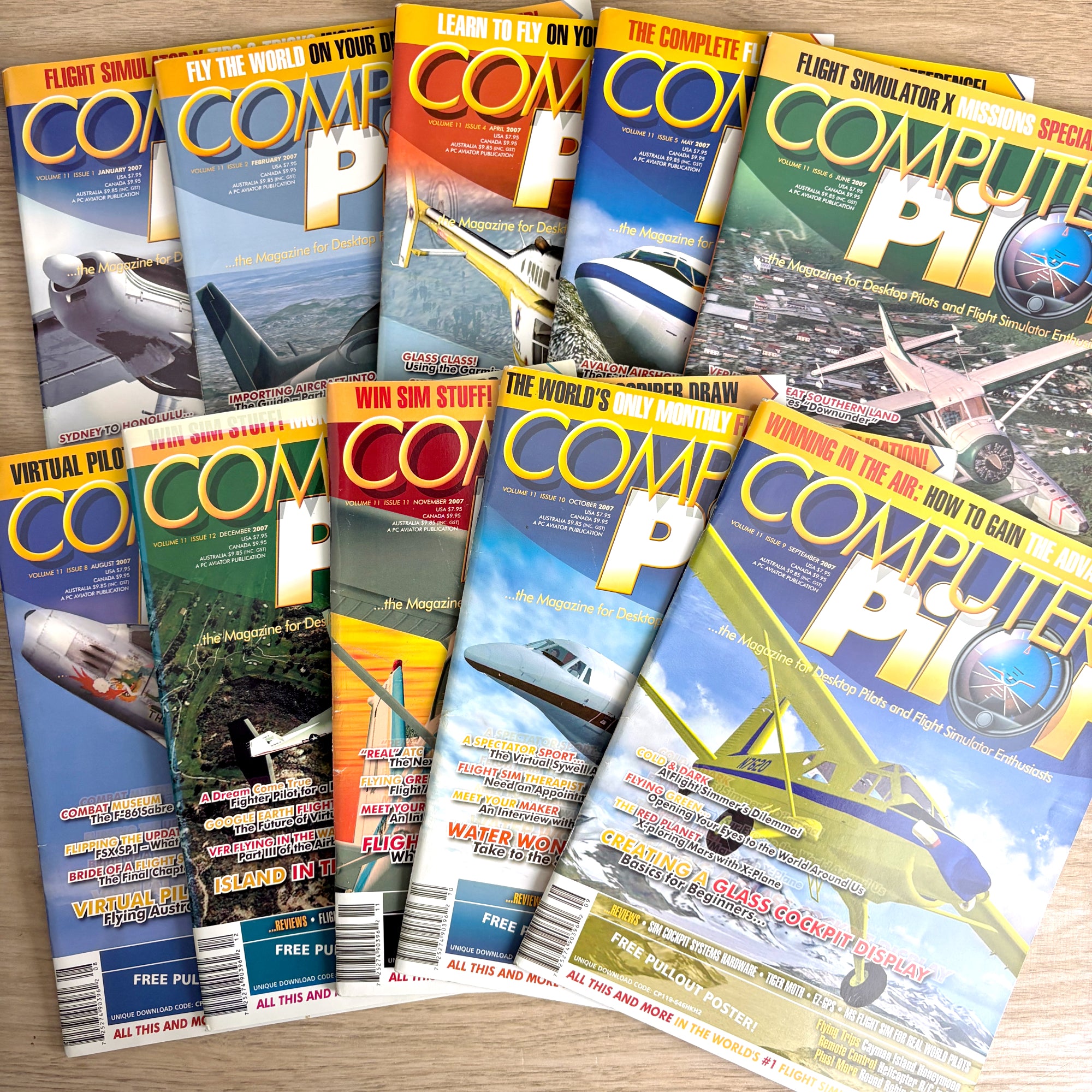 Nearly complete 2007 set of Computer Pilot Magazine, The Magazine for Desktop Pilots and Flight Simulator Enthusiasts. Published by PC Aviator – The Flight Simulation Company. This lot includes 10 of the 12 issues from Volume 11, 2007, the March and July issues are missing. Each issue is packed with flight sim reviews, tutorials, scenery and aircraft add-on coverage, and aviation simulation news.