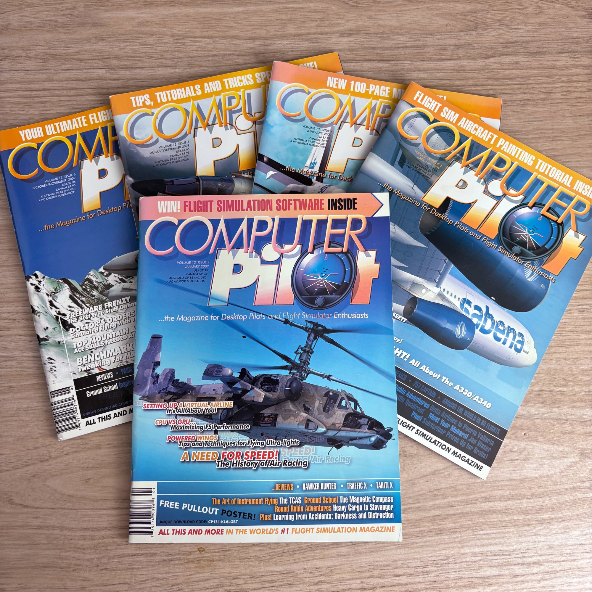 Nearly complete 2009 set of Computer Pilot Magazine, The Magazine for Desktop Pilots and Flight Simulator Enthusiasts. Published by PC Aviator – The Flight Simulation Company.