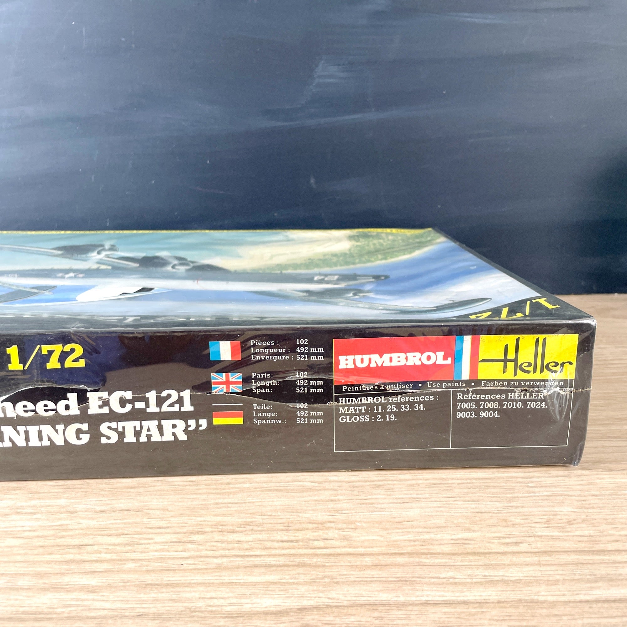 Complete vintage Heller Lockheed EC-121 "Warning Star" U.S. Navy 1/72 scale model kit No. 311, made in France. Box is in its original sealed plastic packaging.